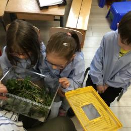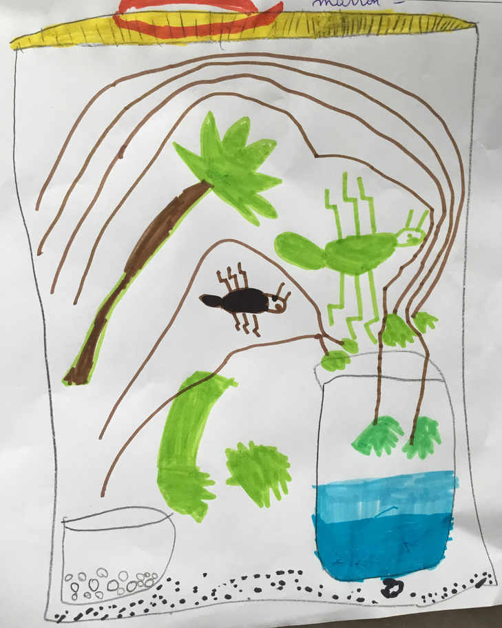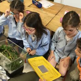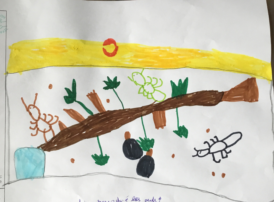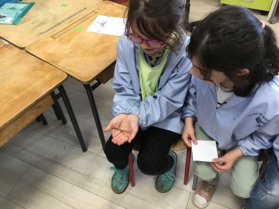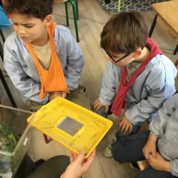 Les élèves ont pu observer l'intérieur de la boîte (un vivarium, ou terrarium) puis expliquer tout ce qu'ils avaient constatés. Ils ont ensuite dessiné la boîte et son contenu, faisant preuve d'un bel esprit d'observation.