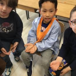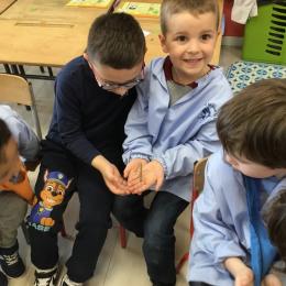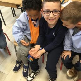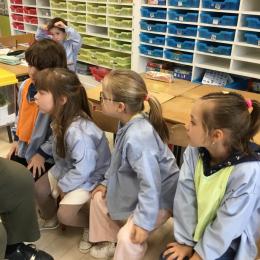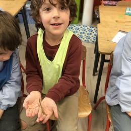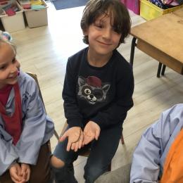 Lors de la dernière séance (il y en aura encore après le pont de l'ascension durant lequel ils sont rentrés chez maîtresse pour ne pas rester seuls en classe), les élèves qui le désiraient ont pu en avoir un dans les mains et se rendre compte que ça ne faisait que des chatouilles!