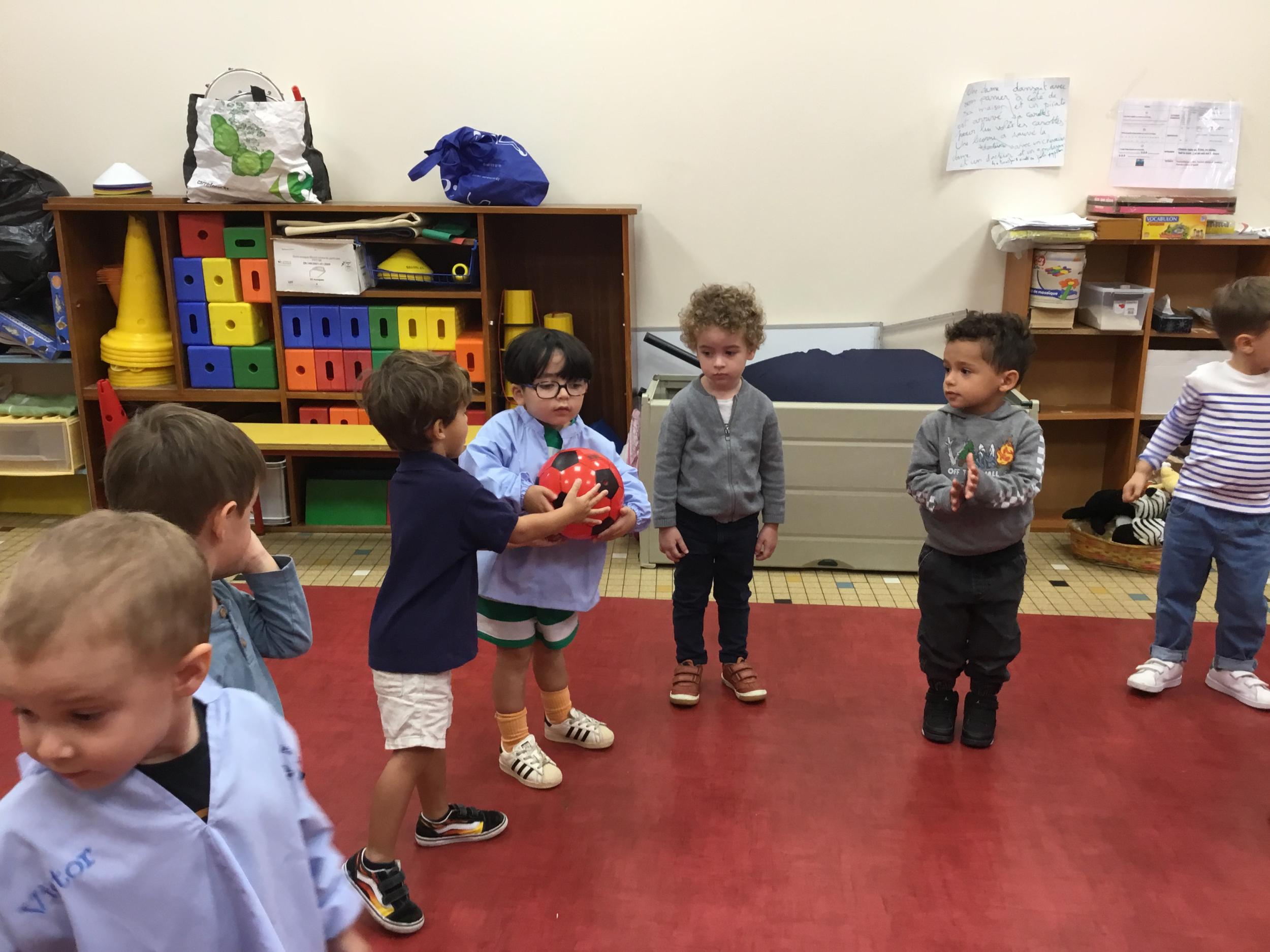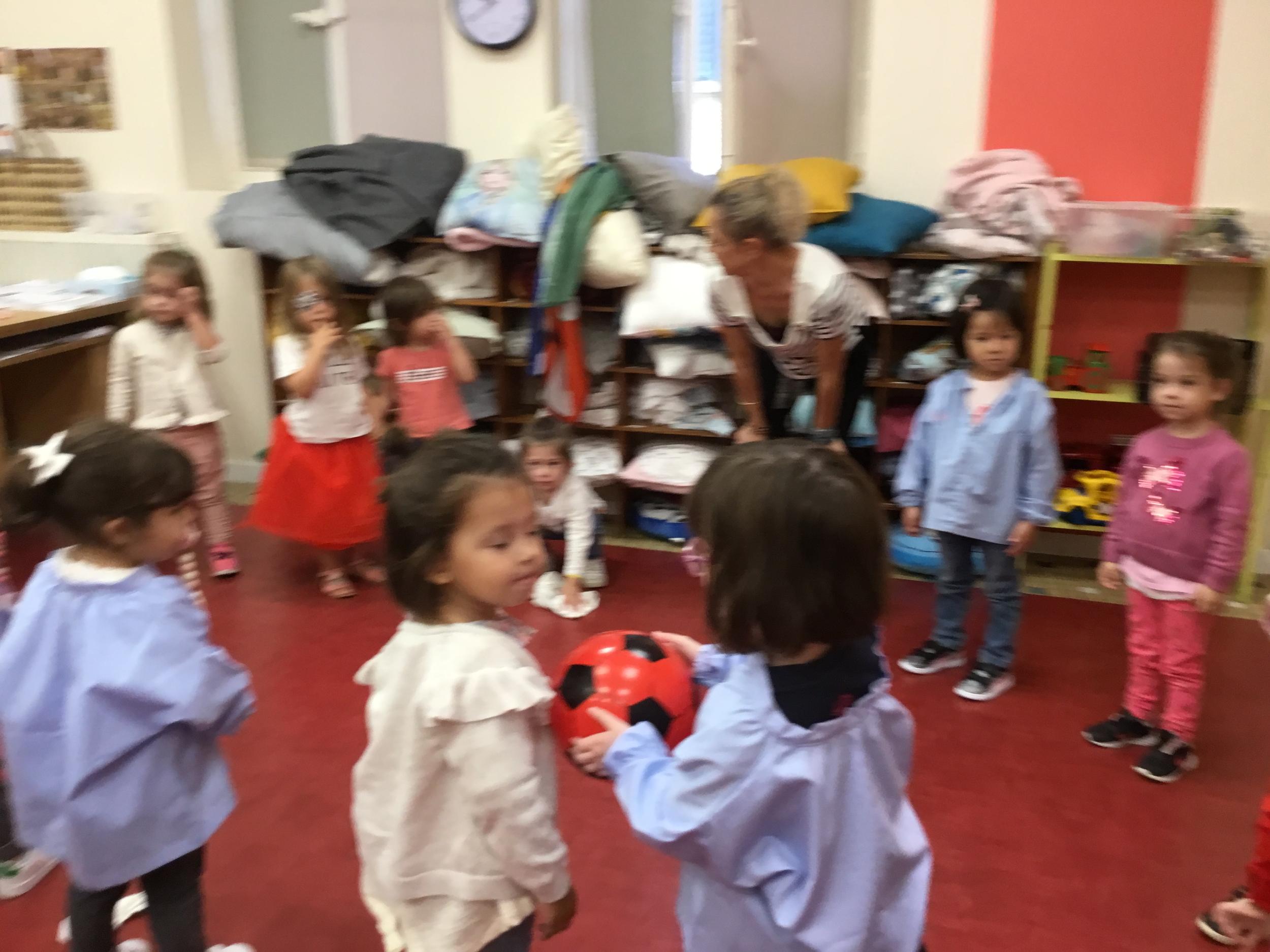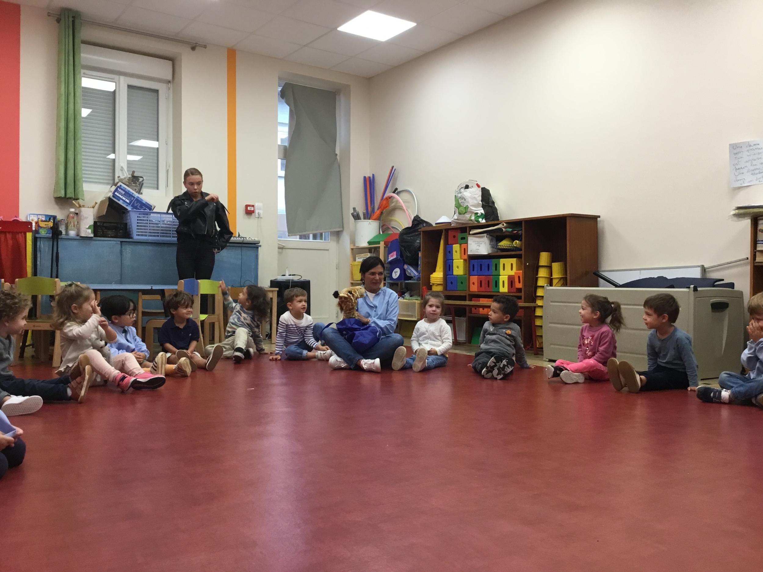 Chaque enfant a pris Gigi dans ses bras pour lui dire son prénom, puis Gigi est passée de bras en bras , en étant bien attentif à regarder son voisin en lui donnant la peluche.