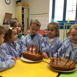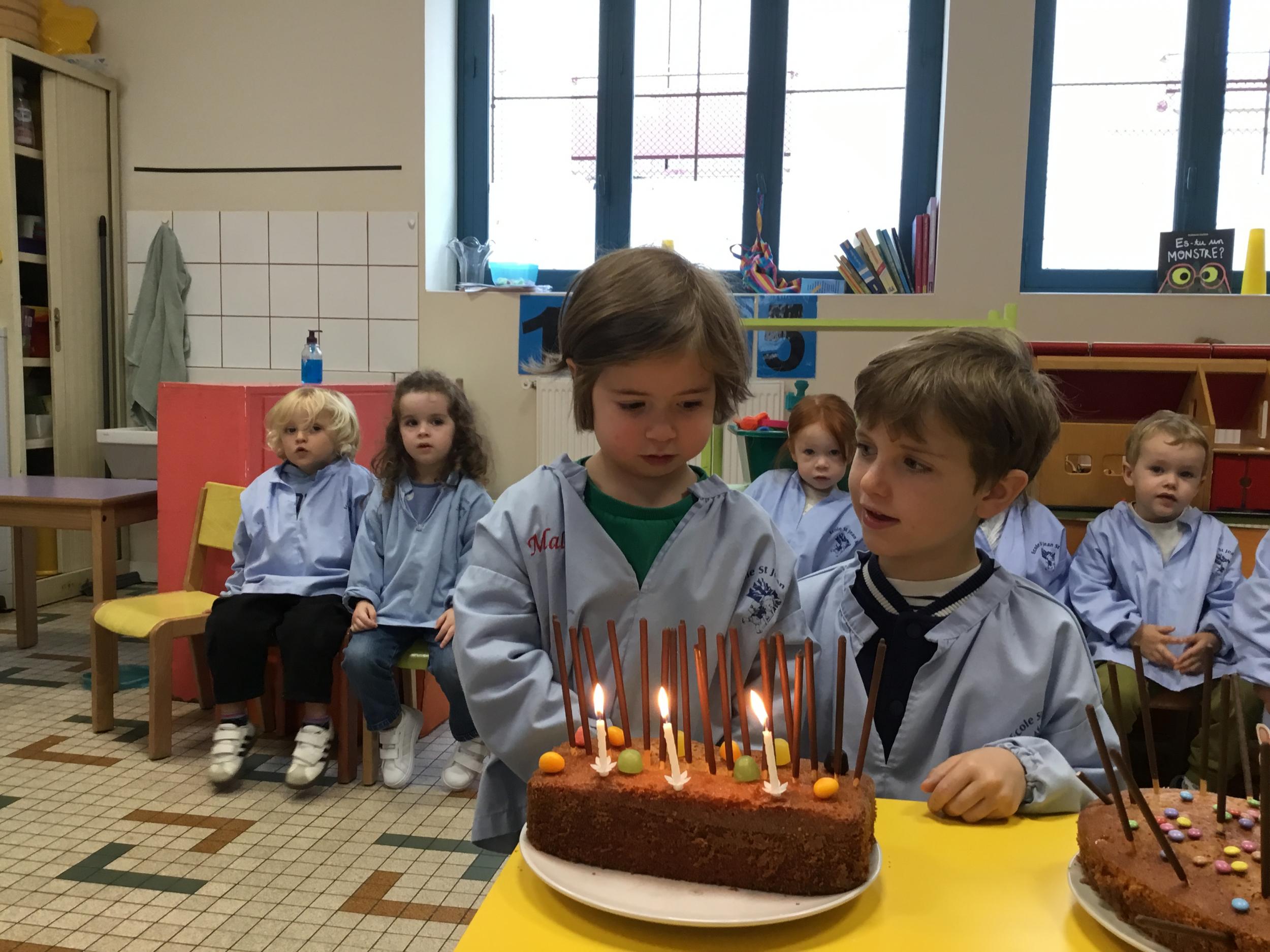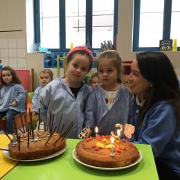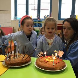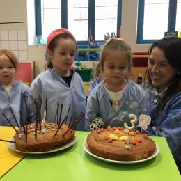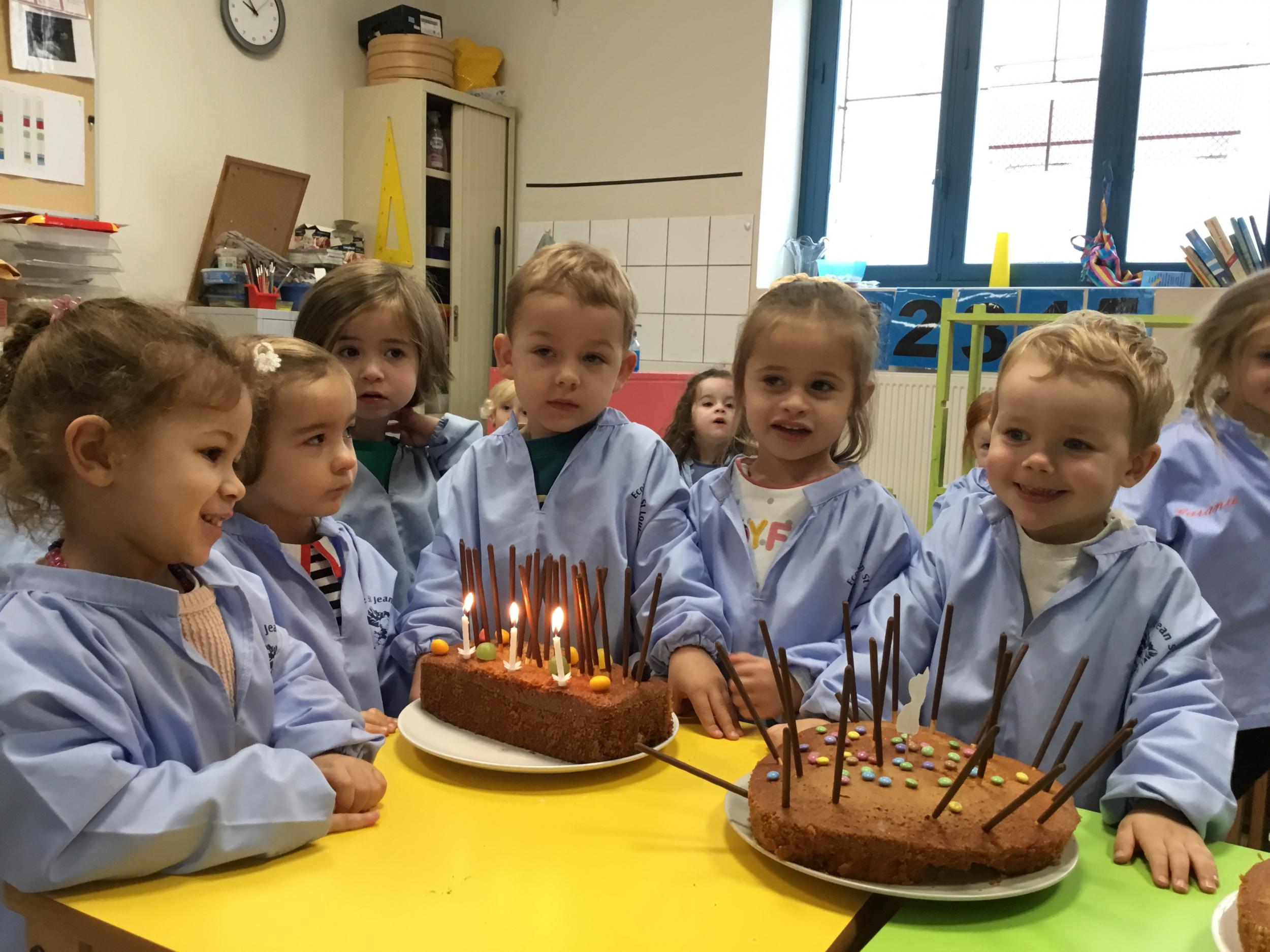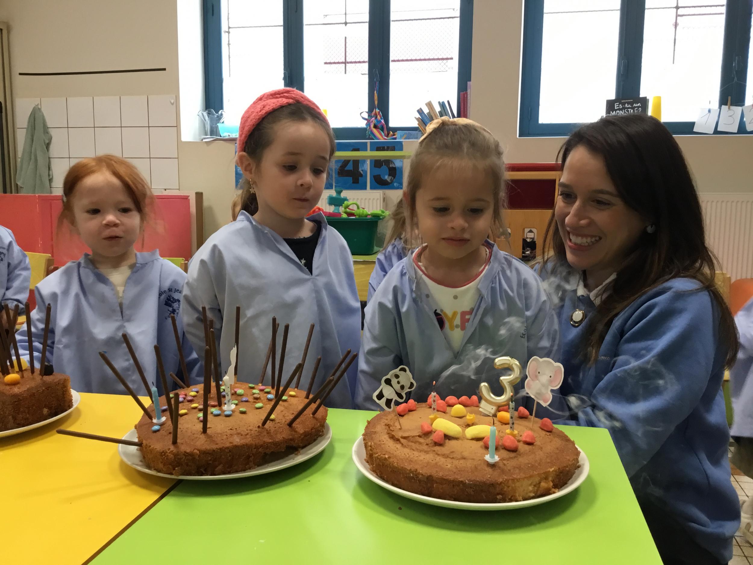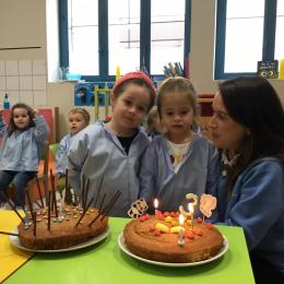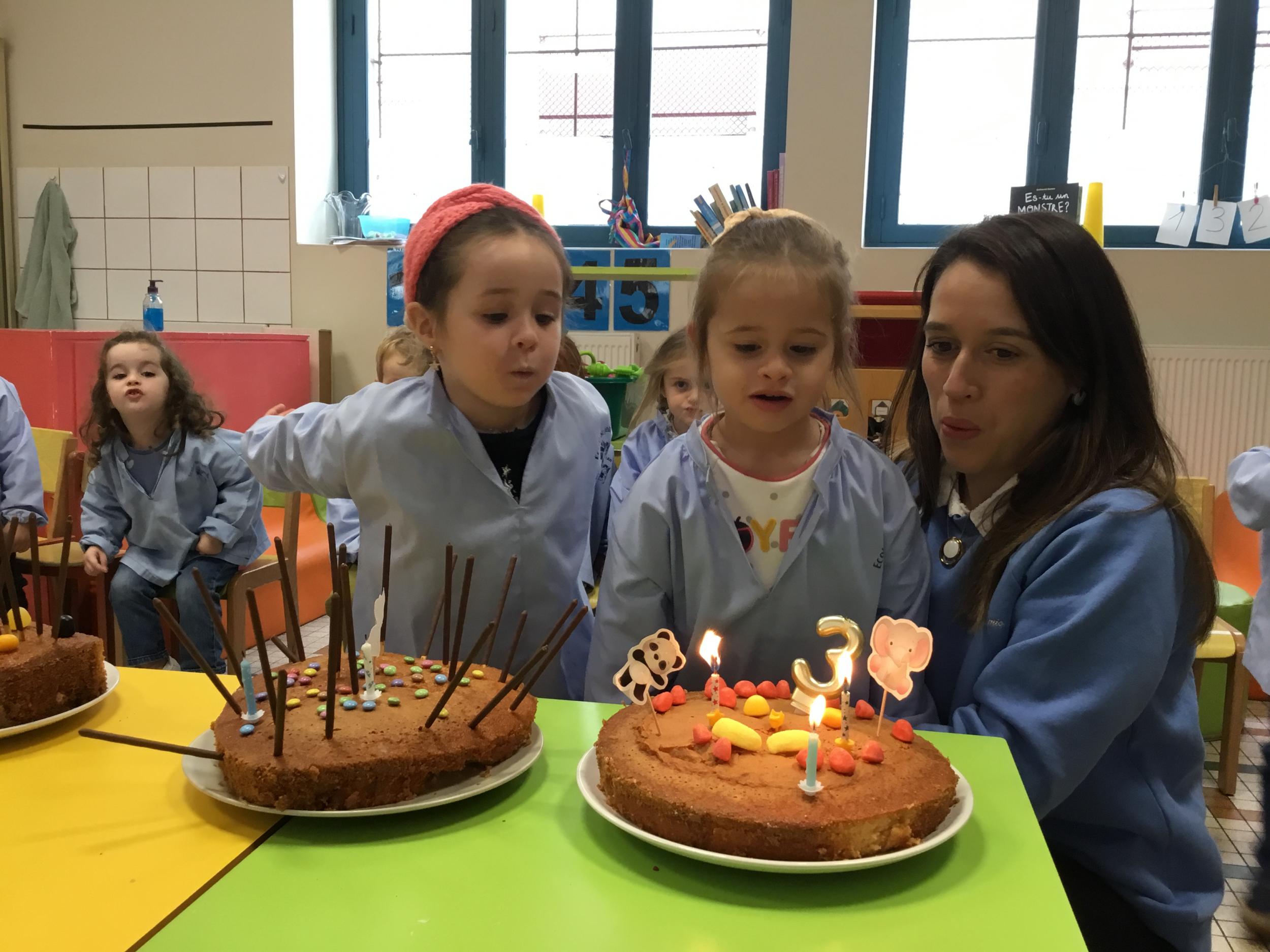 Tous les mois nous fêtons les anniversaires . Nous faisons des gâteaux le jeudi et un vendredi / mois, nous invitons les parents des enfants qui fêtent leur anniversaire pour chanter ensemble et faire la fête.