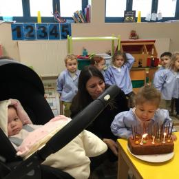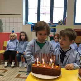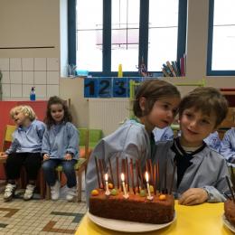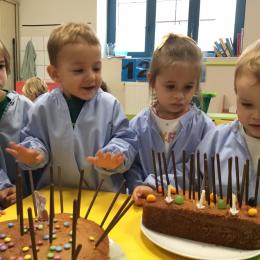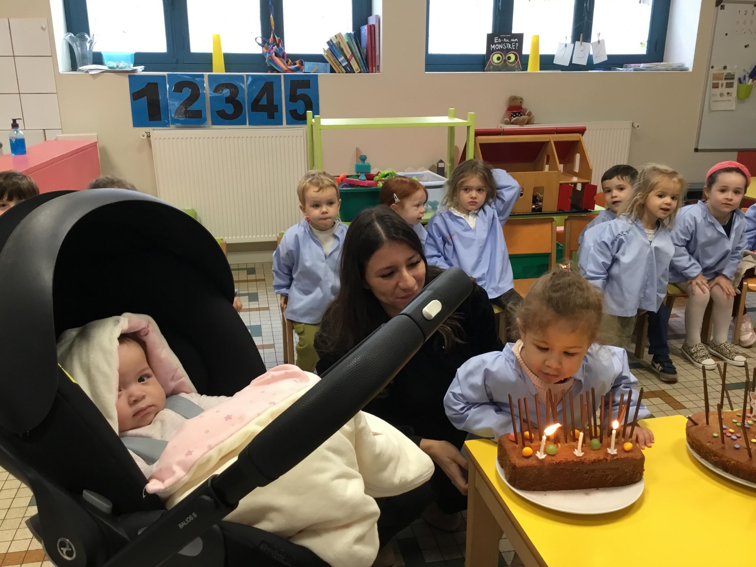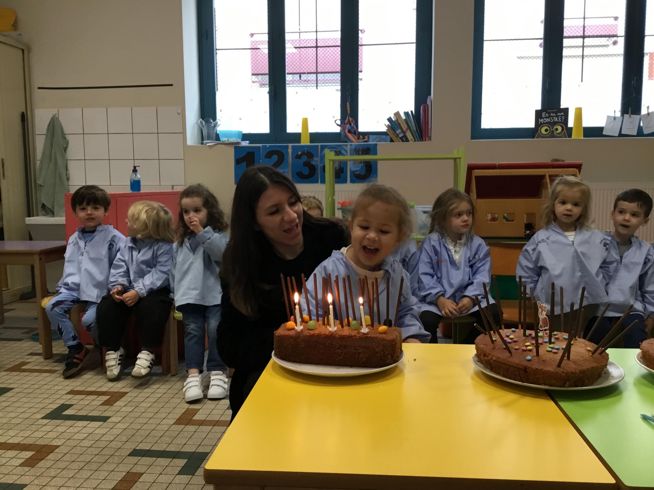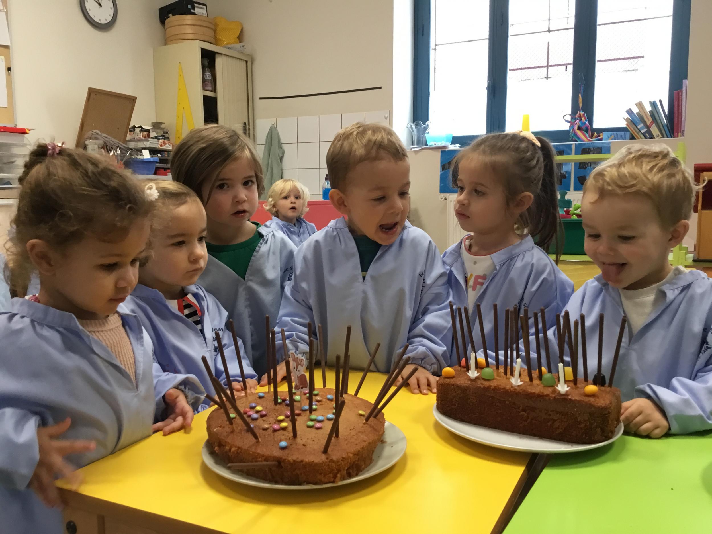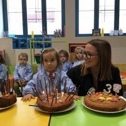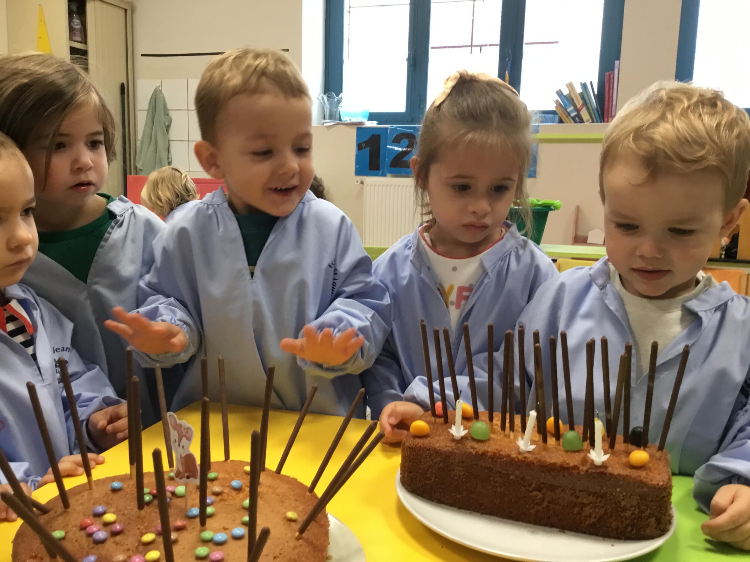 Tous les mois nous fêtons les anniversaires . Nous faisons des gâteaux le jeudi et un vendredi / mois, nous invitons les parents des enfants qui fêtent leur anniversaire pour chanter ensemble et faire la fête.