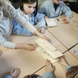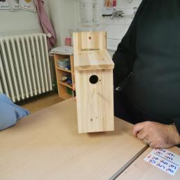 Dans un deuxième temps, après la récréation, nous avons participé à trois ateliers : un où nous avons observé des nids et des plumes d'oiseaux avec Eric, un où nous avons fabriqué un nichoir sous les explications d'Alexandre et enfin un où nous avons joué à un jeu de memory sur les oiseaux avec Julie.