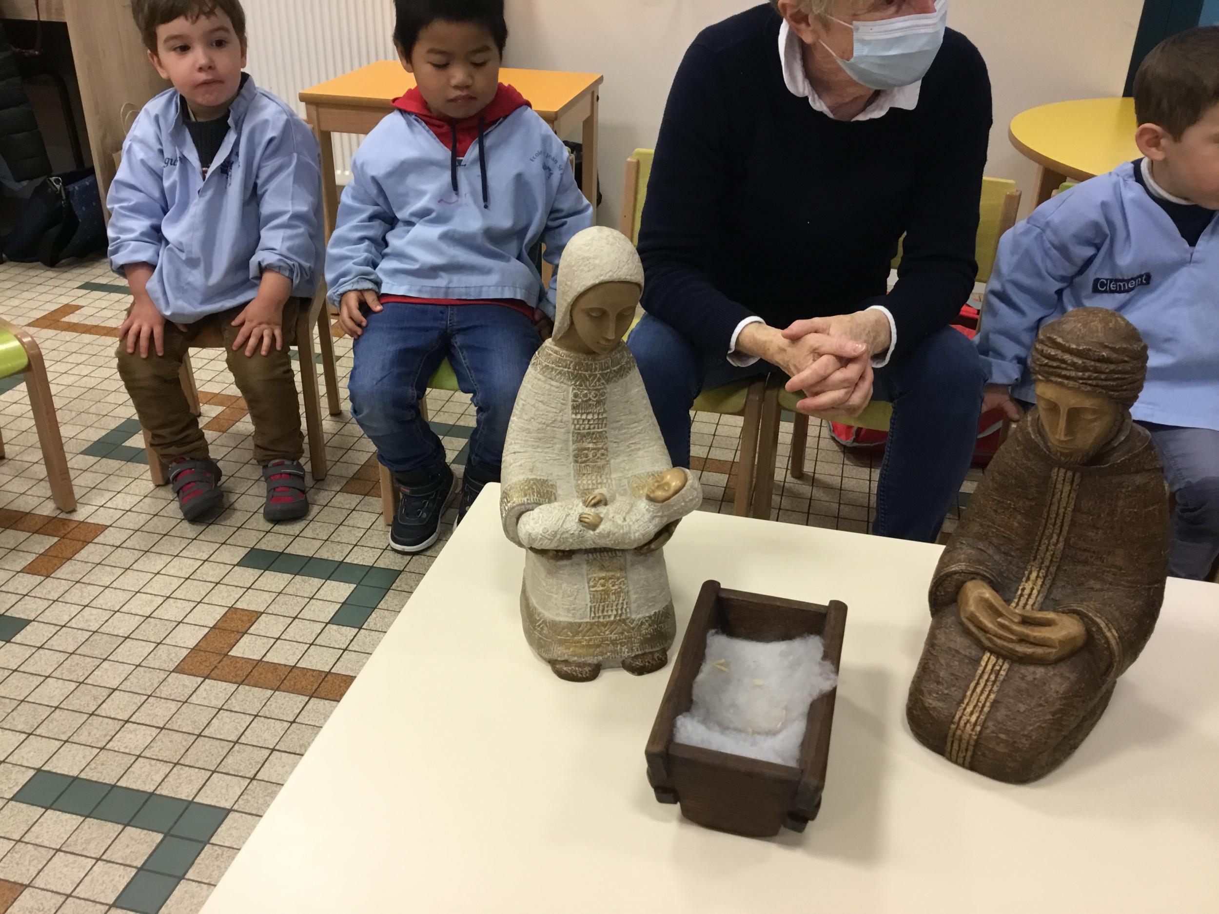 Geneviève Amen est venue nous raconter l’histoire de Marie et Joseph. Chacun a pu s’exprimer sur ce qu’il savait de Marie , de Joseph, de Jésus...puis Geneviève a expliqué le sens de la fête de Noël .. une fête où l’on se fait plaisir ou l’on donne de la joie , de l’amour .