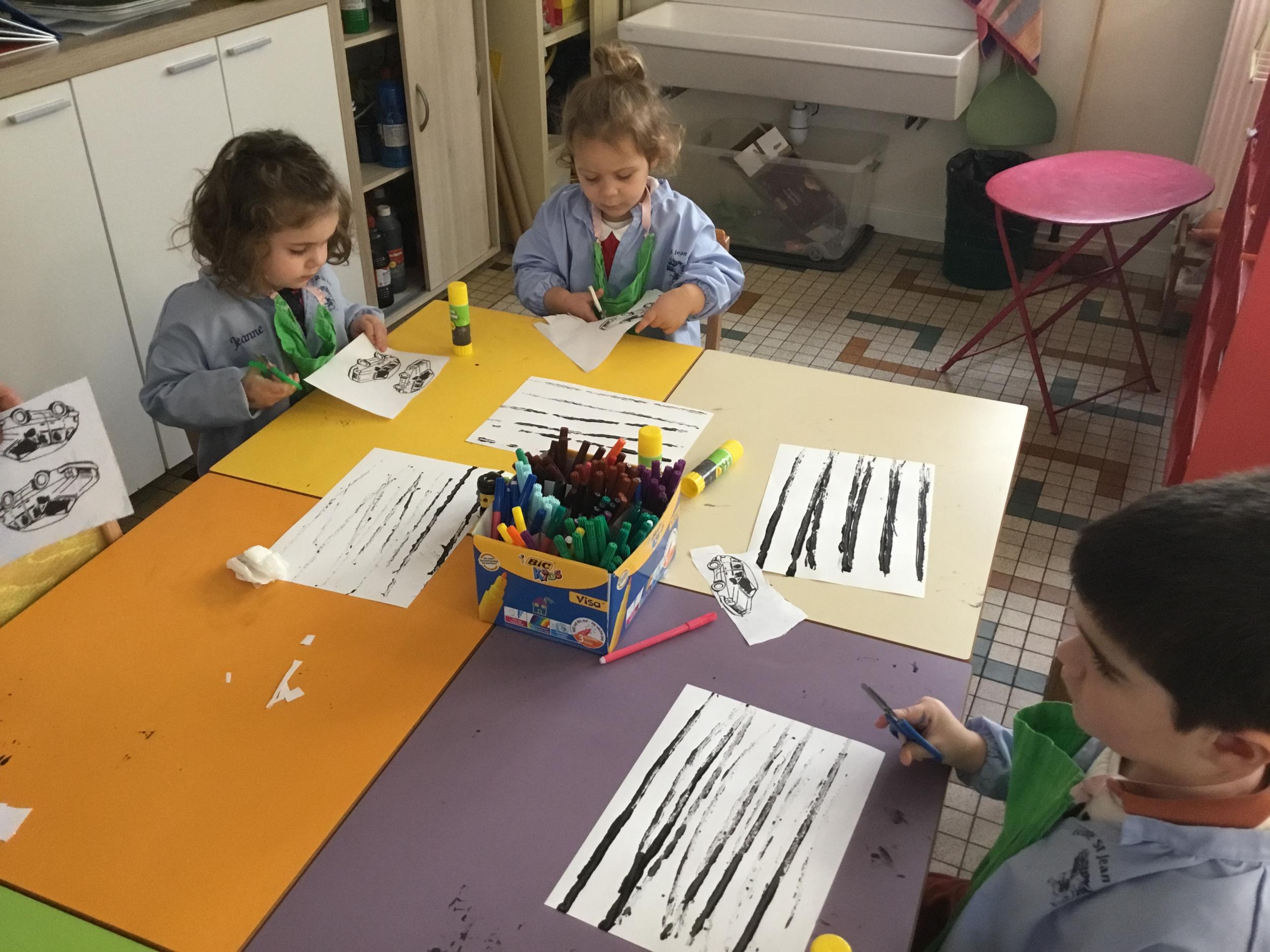 Après le trait vertical, les élèves ont travaillé autour du trait horizontal. Ces séances leur ont permis d’appréhender le sens de l’écrit de la gauche vers la droite et de maîtriser leur geste.