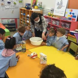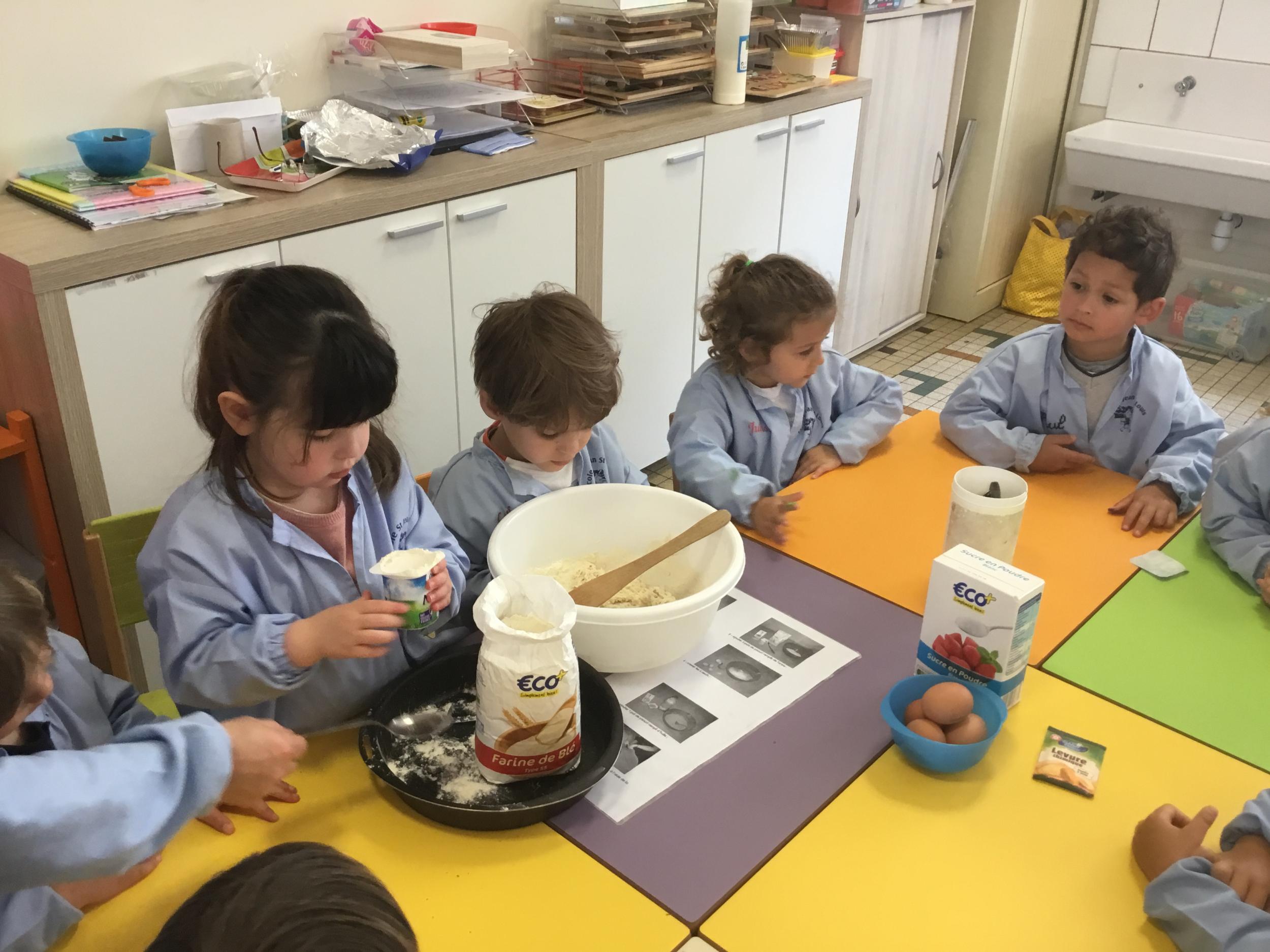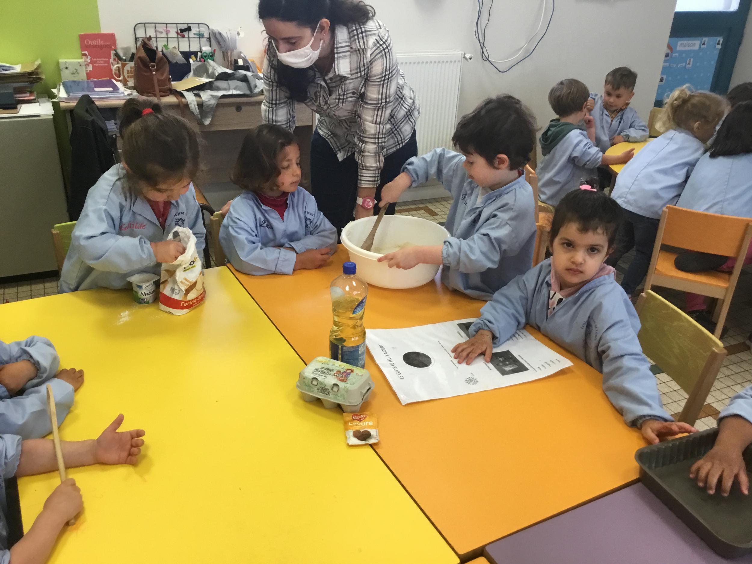 Petite et moyenne section 23/05/2021 Ce lundi, atelier pâtisserie pour fêter les anniversaires d’Olivia qui a fêté ses 3 ans et Claire, Jean, Flavio et Gauthier qui ont eu 4 ans.