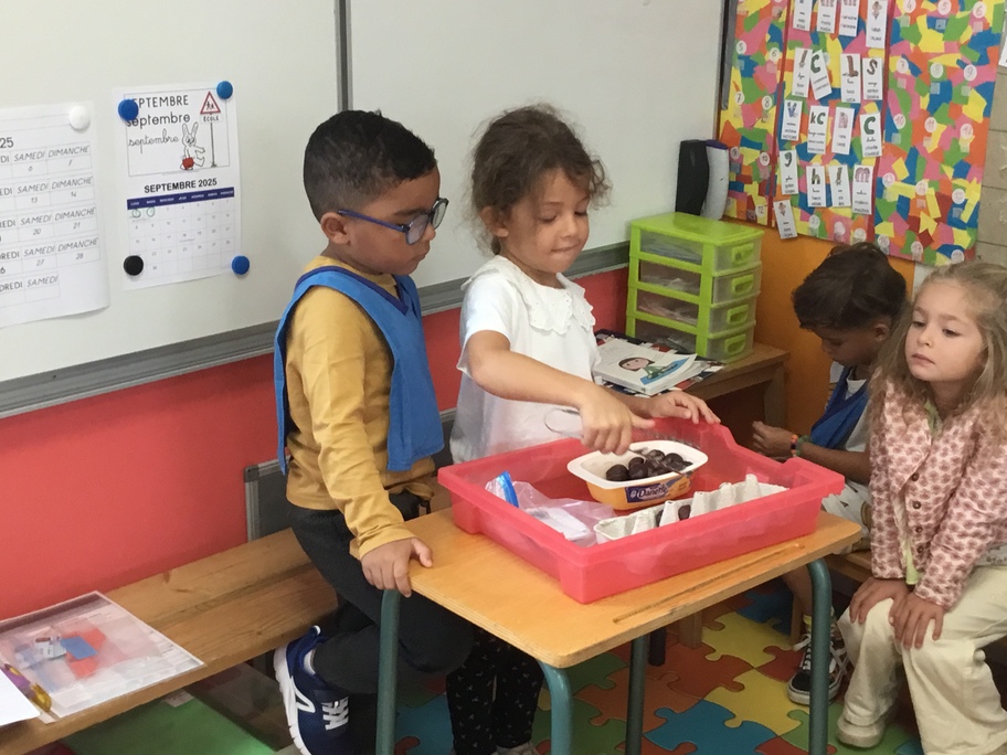Les Moyennes sections disposent de leur propre plan de travail. En effet, un espace est réservé aux jeux qui leurs sont proposés. En ce début d'année, ils pourront aussi utiliser quelques jeux de manipulation des Grandes Sections, car ce sont des jeux avec des pinces pour muscler les doigts et apprendre à mieux tenir son crayon pour écrire, dessiner...