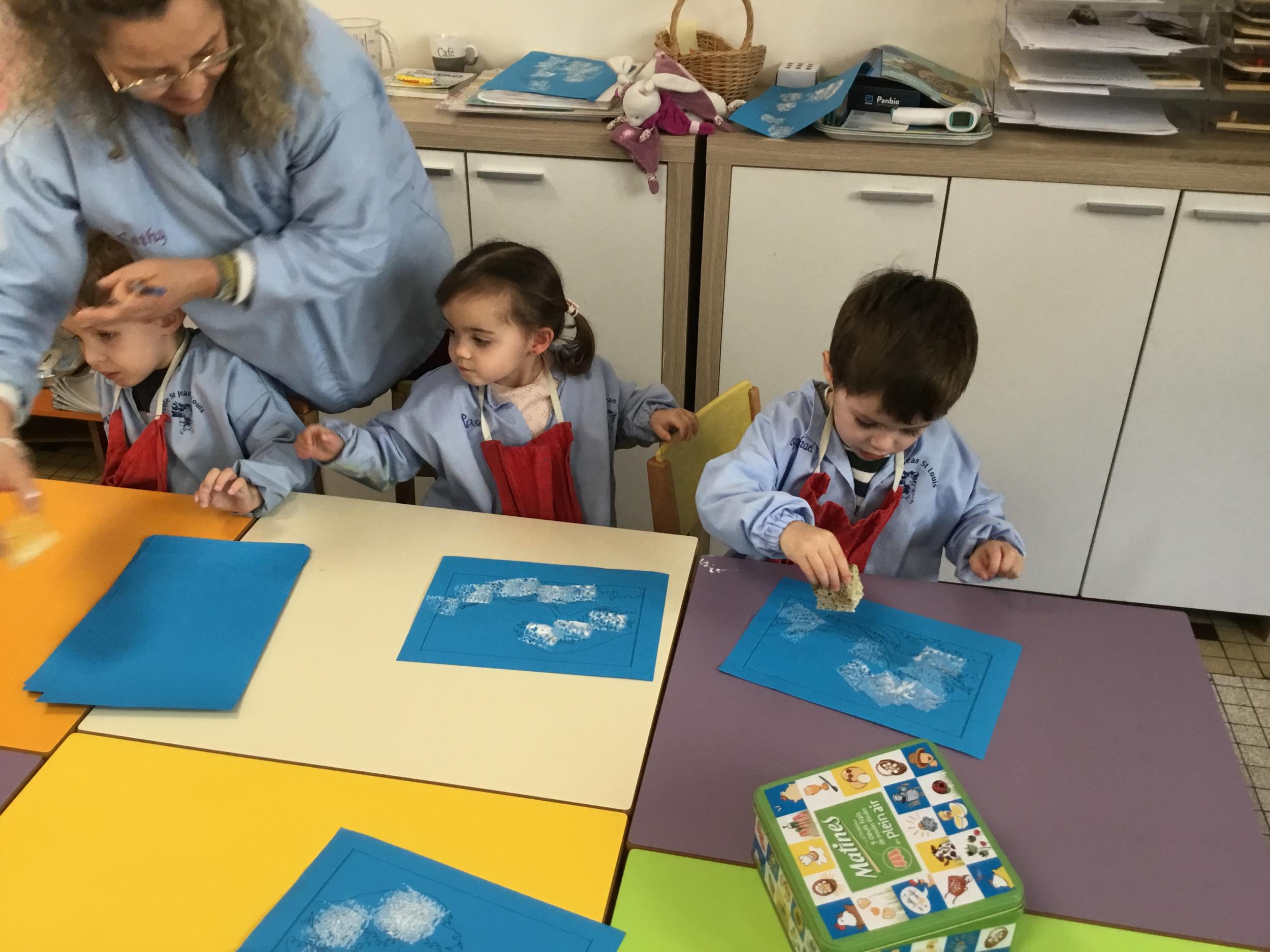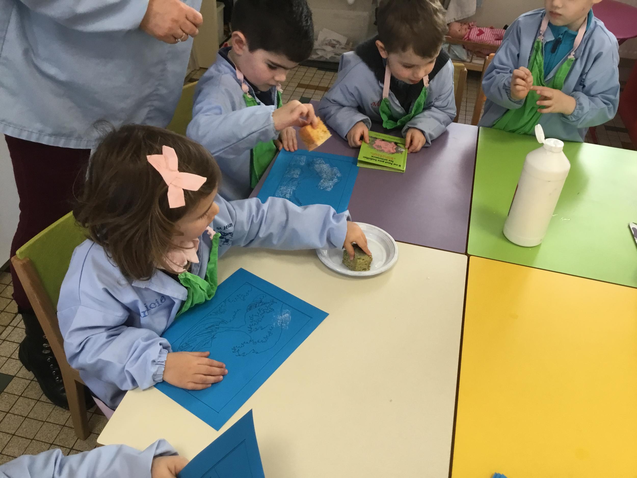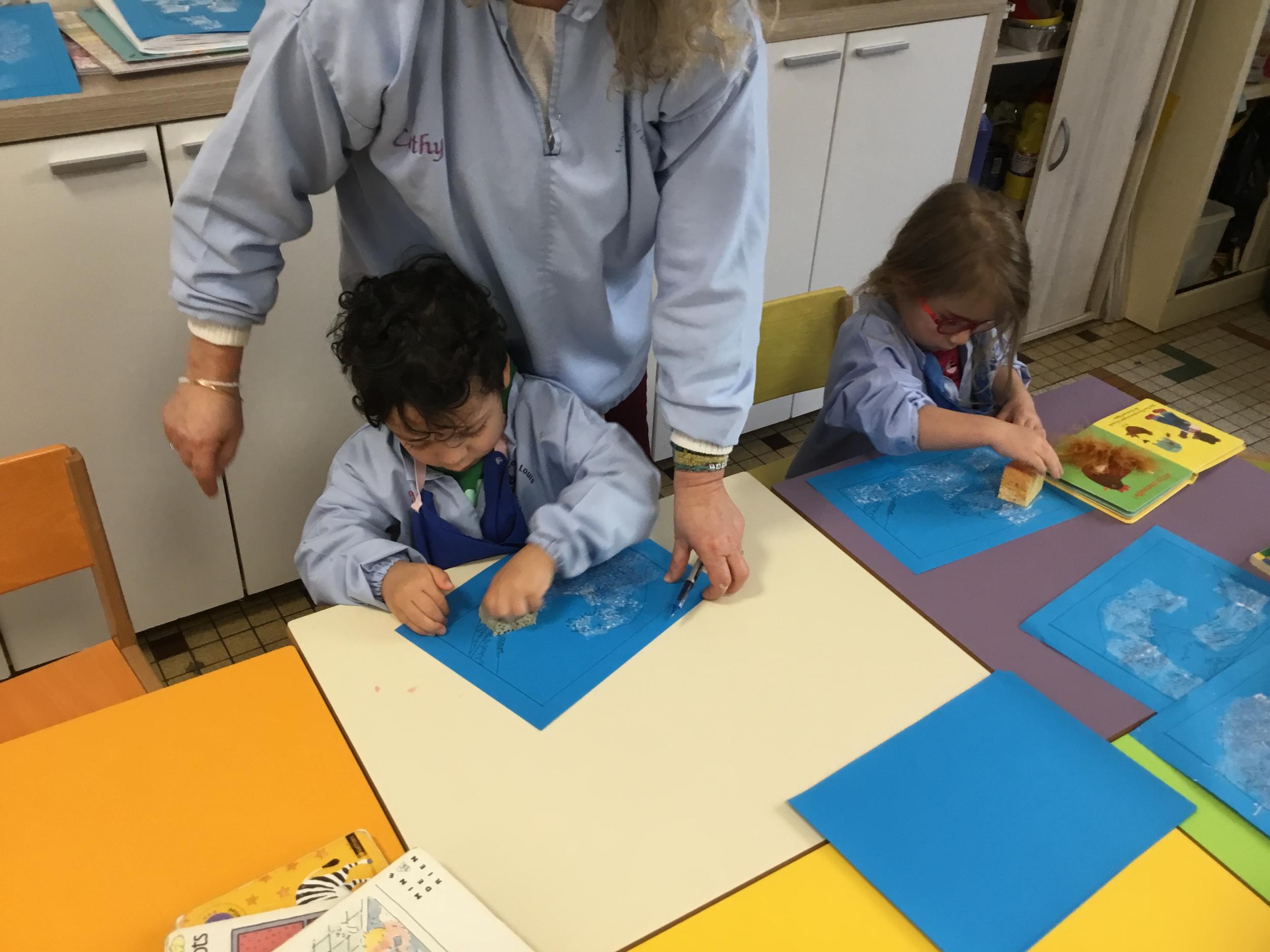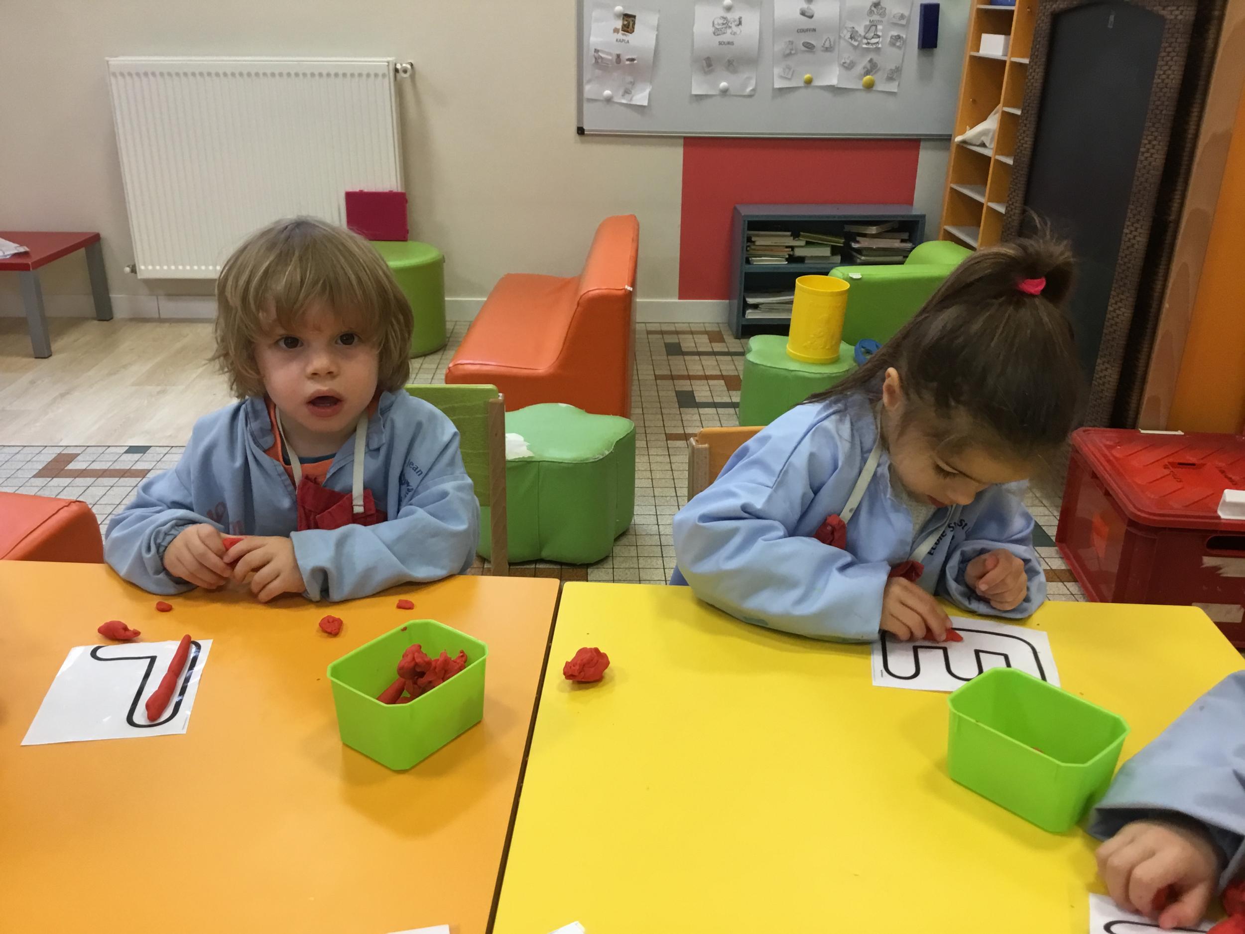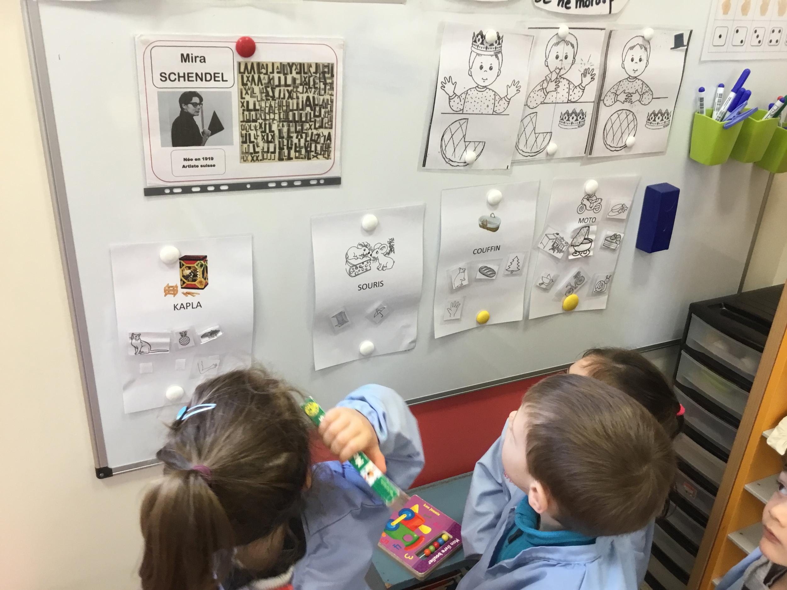 Depuis le début de la période les élèves travaillent autour de leur prénom et de leur initiale. Différents ateliers leur permettent d’appréhender l’écrit de leur initiale.