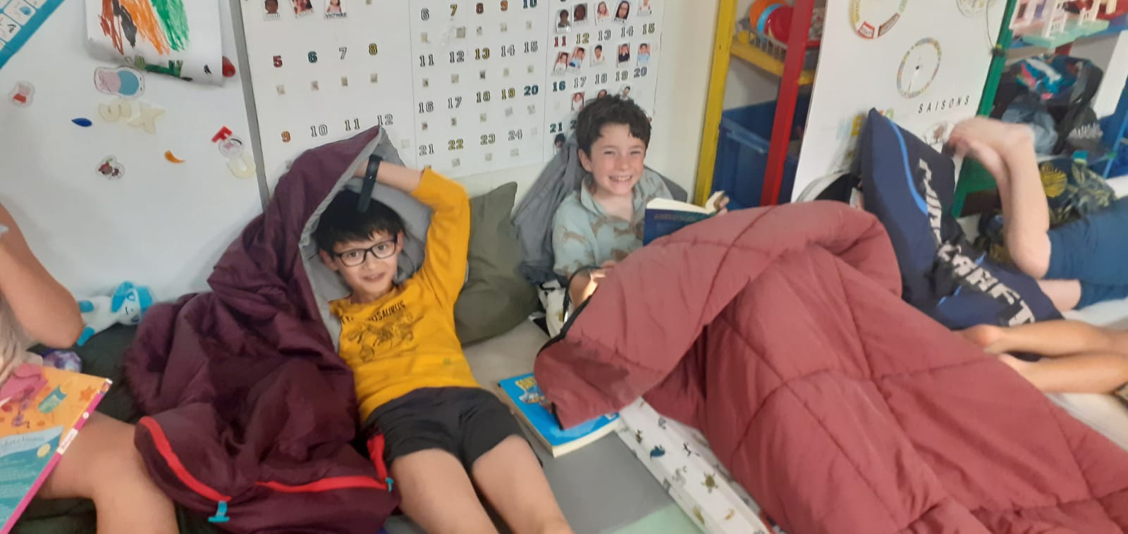 - lecture sur son matelas, seul ou par petits groupes autour d'un même livre