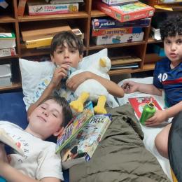 Fortes du succès de la première édition, les enseignantes de CP et de CM1 ont reconduit la NUIT DE LA LECTURE ! A part quelques malades, tous les élèves ont répondu présents et se sont régalés !