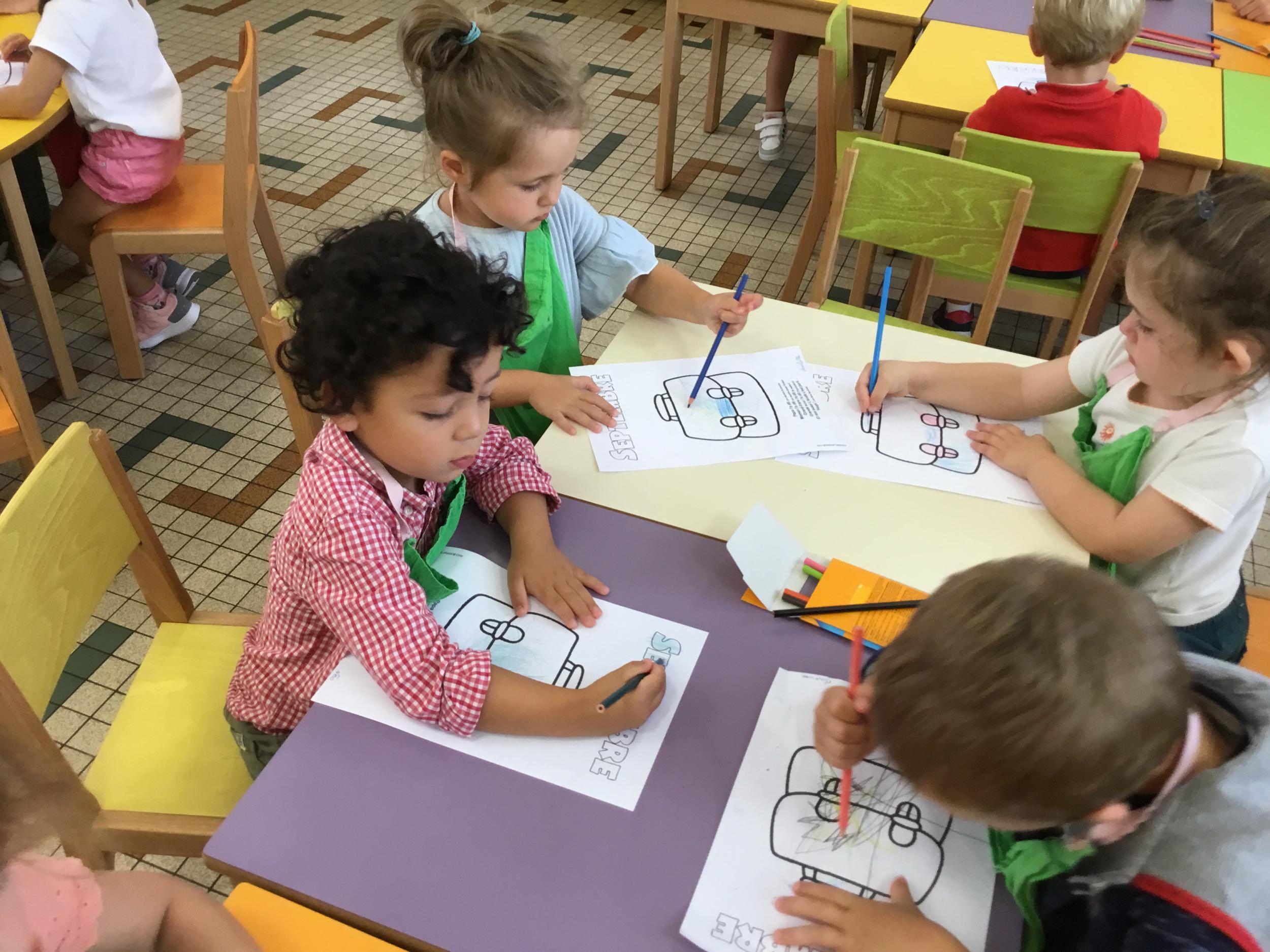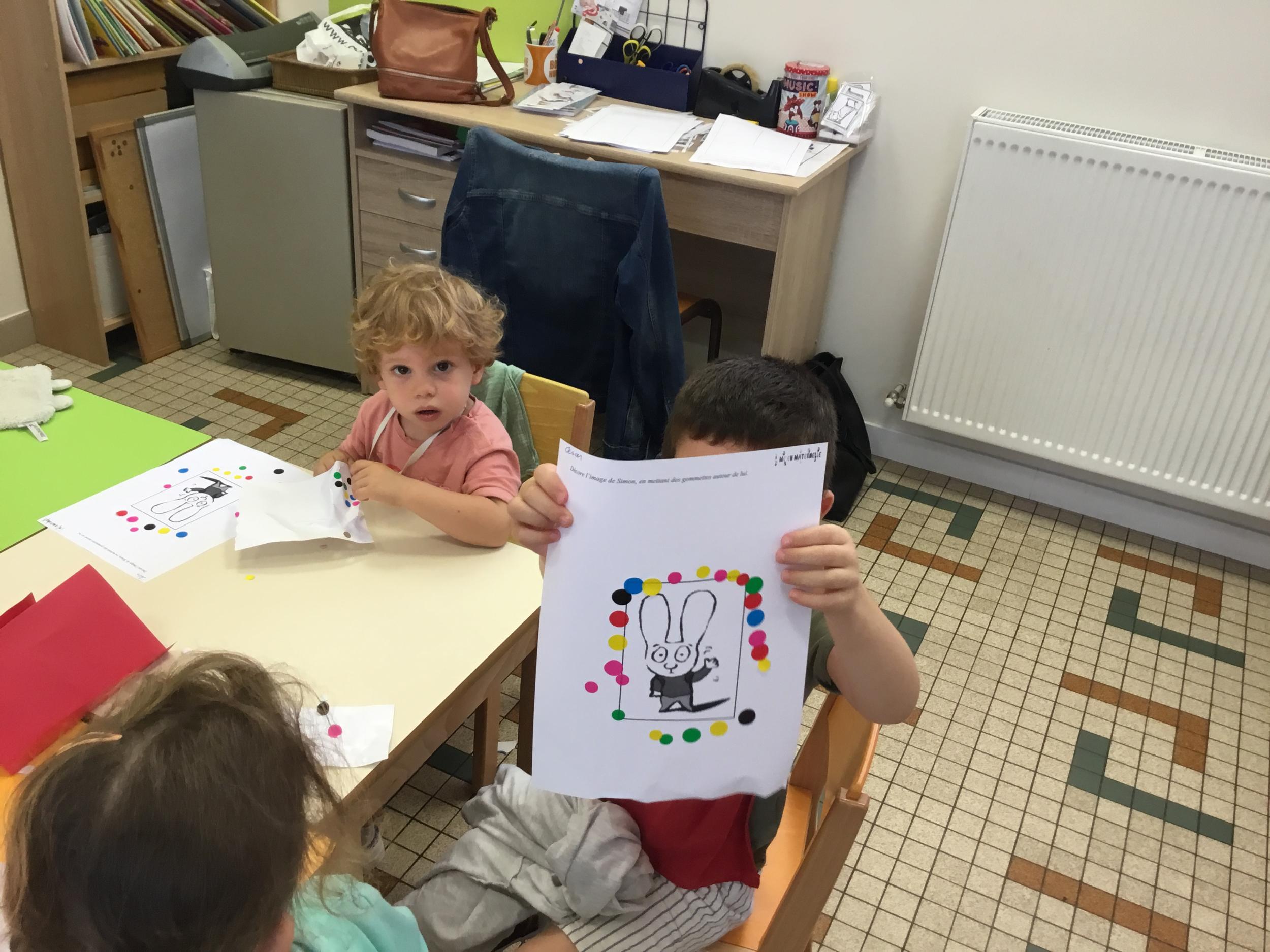 Petite et moyenne section 19/09/2021 Découverte de l’album « je ne veux pas aller à l’école » Première comptine Le petit train pour changer d’activité dans le calme Ateliers d’apprentissage : coller des gommettes AUTOUR DE Simon, coloriage et observation de la tenue du crayon