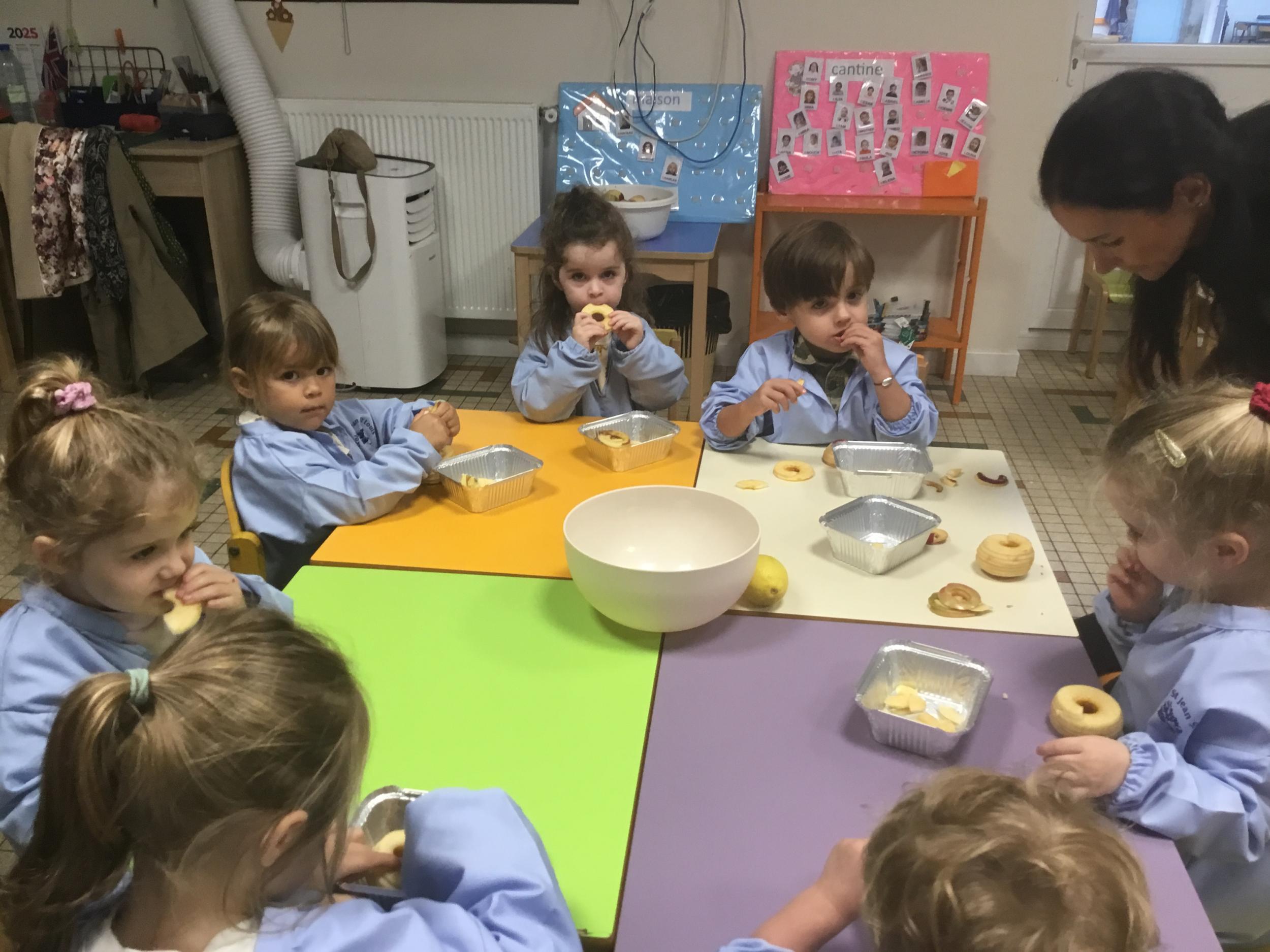 10/10/2025 Chacun a préparé sa barquette … Difficile de ne pas résister au plaisir de déguster quelques 🍎 ! Nous avons également goûté l’acidité du citron, la douceur du sucre, …