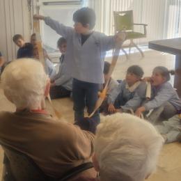 Lundi 31 mars, la deuxième partie de la classe de CE1 a été présenter son talent aux résidents de l'EPADH, le Refuge protestant. Encore une fois les résidents étaient ravis et les enfants étaient très heureux et très fiers de présenter leur talent. Même la maîtresse a joué le jeu.