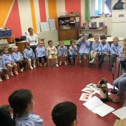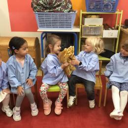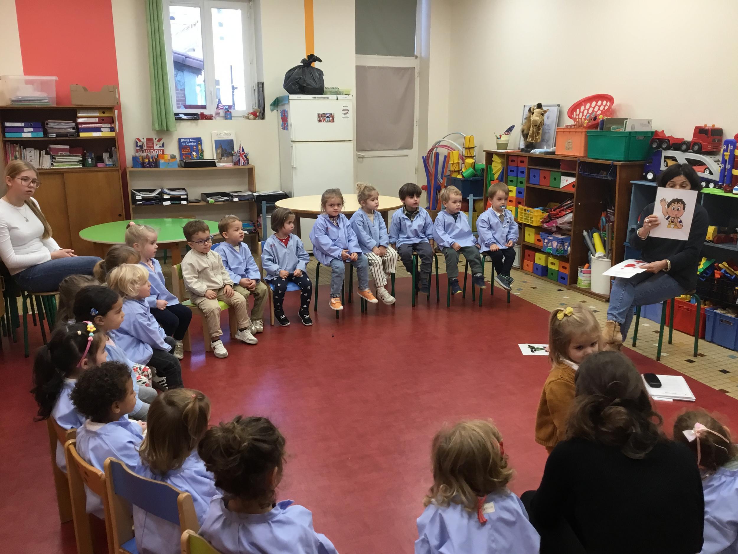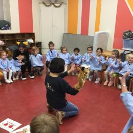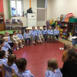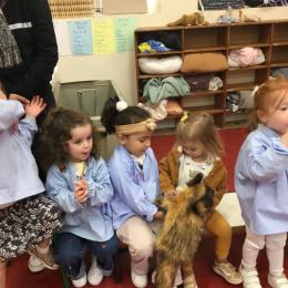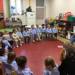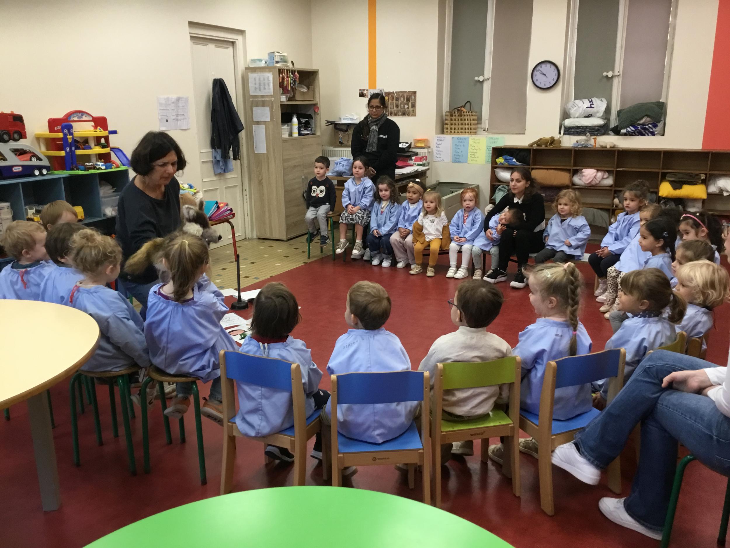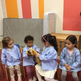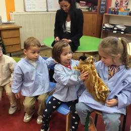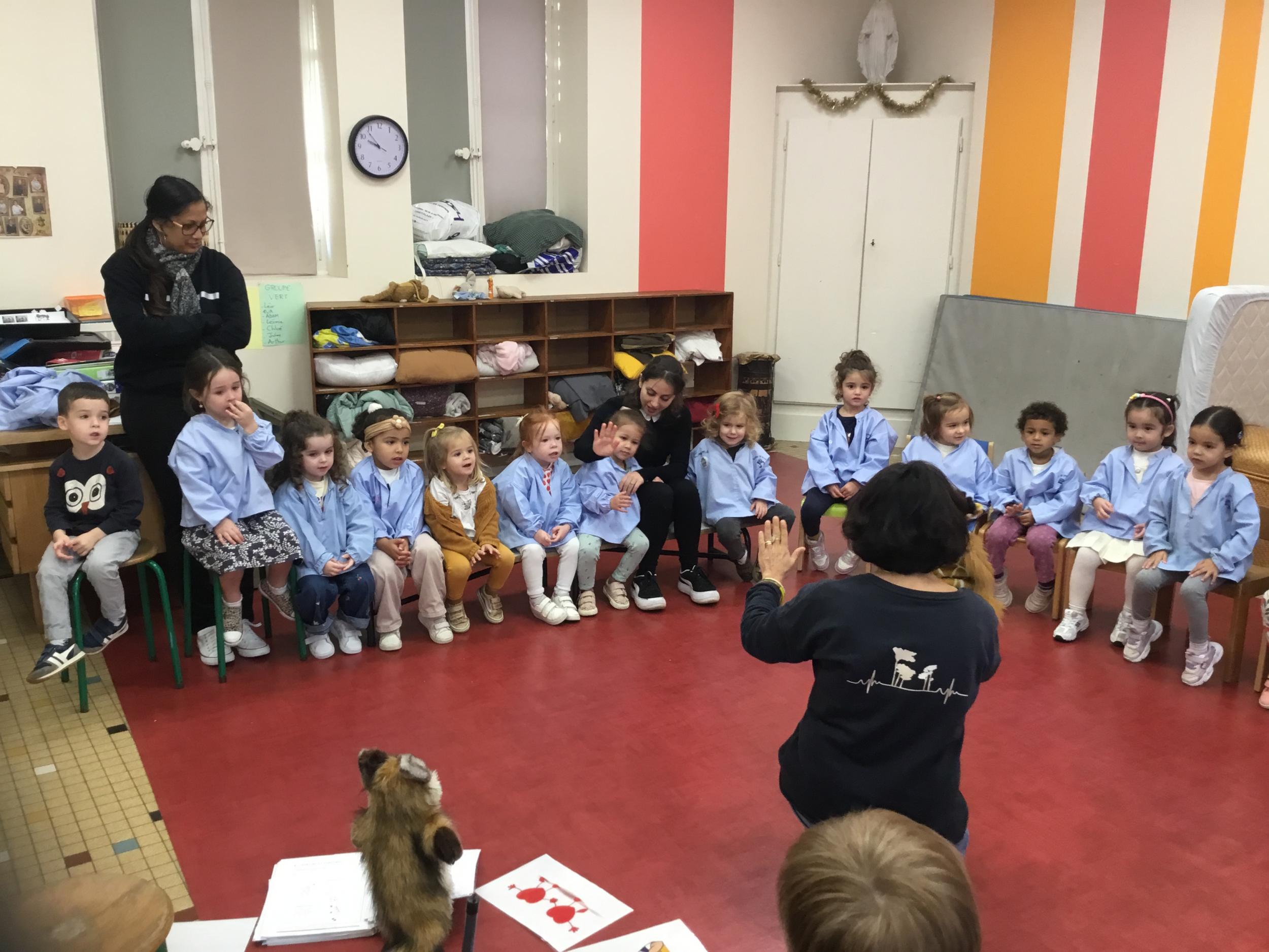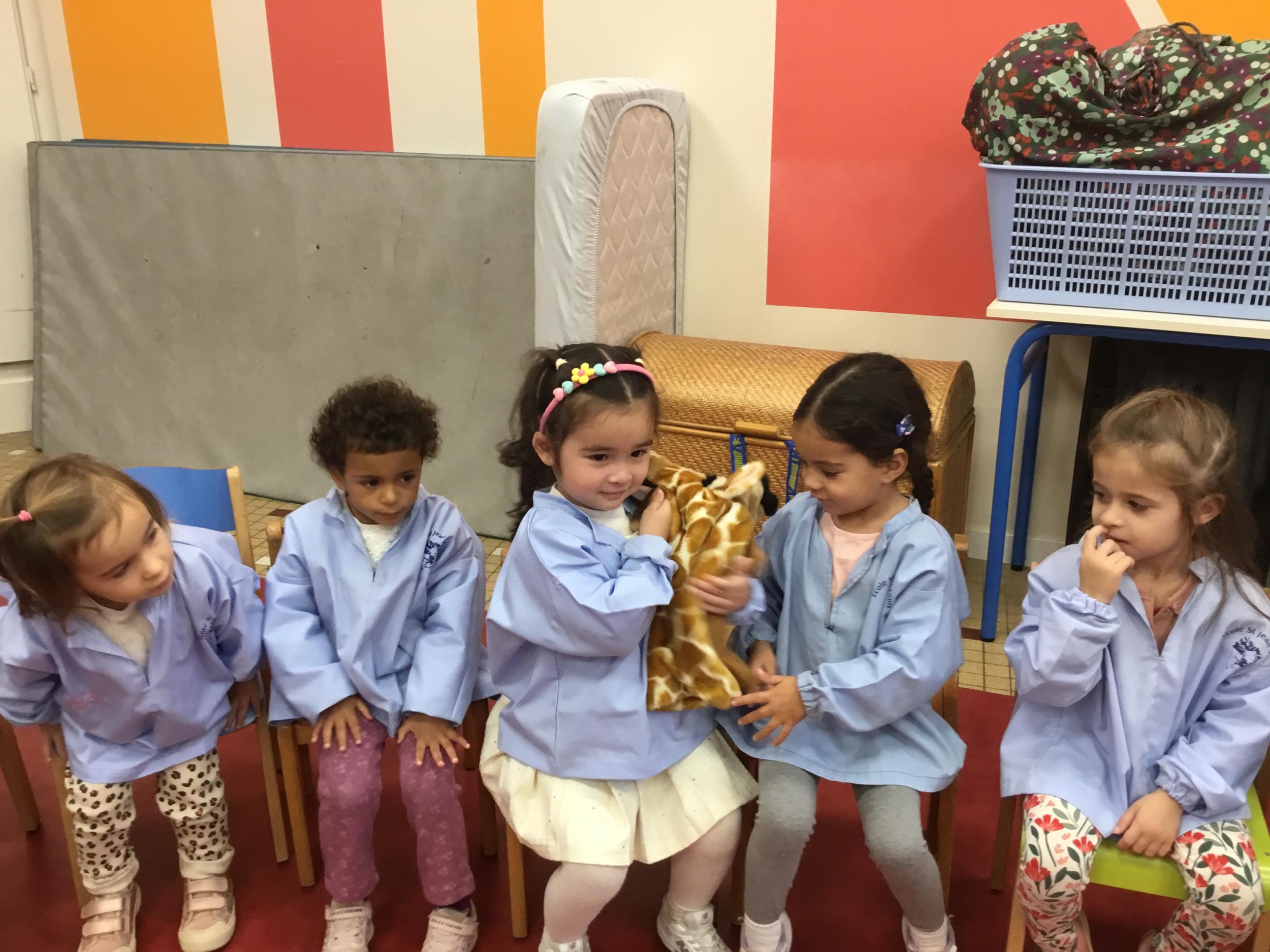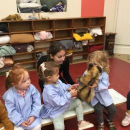 Nous avons découvert l’atelier de Gigi et Loulou…. Ses chants, ses règles, et le sens de cet atelier. Avec Gigi et Loulou les élèves vont repérer des émotions en fonction des situations jouées, vont pouvoir peut être s’identifier, et à leur tour s’exprimer. Tous ont souhaité toucher , tenir dans leur mains Gigi comme Loulou. Nous avons essayé de nous les faire passer doucement en se regardant dans les yeux .