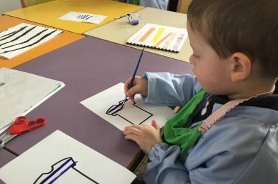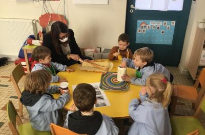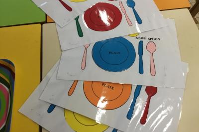 Cette période les élèves ont travaillé sur le vocabulaire autour de la table. Ces séances ont également permis de continuer à travailler les couleurs. La séquence s’est achevée par la réalisation d’un set de table.