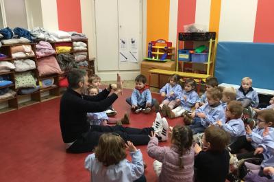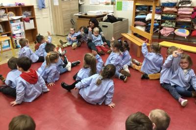 Aujourd’hui Aymeric est venu dans notre classe pour nous apprendre à nous poser, nous concentrer. Il nous a montré comment fait le canard avec ses pattes, un exercice de coordination pas facile quand on a 3 ans !!!! Et cela demande beaucoup de concentration … Voyant que c’était encore un peu difficile , nous avons tenté le même exercice avec les mains … encore un peu dur … alors on a simplifié...