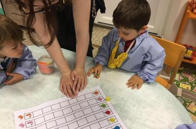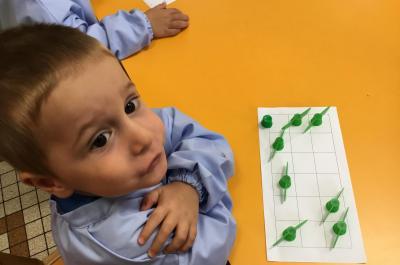 Sur un autre atelier, chacun devait compléter un tableau en mettant un bouchon dans chaque case. Certains en avaient trop, d’autres pas assez….