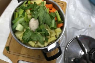 Nous travaillons "la soupe aux cailloux" sous diverses formes : d'abord la lecture de ces albums très amusants : c'est l'histoire d'un loup (ou d'un renard) affamé qui demande à manger aux animaux. Mais ceux-ci refusent. Alors le loup propose de faire une soupe au caillou : il demande une marmite d'eau, y met son caillou, et fait en sorte que chaque animal rencontré donne un légume, jusqu'à...