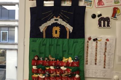 Il y eu dedans plusieurs surprises : un calendrier de l'Avent avec les personnages de la crèche, des livres et des enveloppes...
