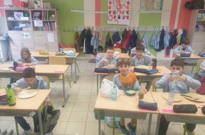 A l'occasion de la semaine du goût, certains parents de l'école se sont mobilisés pour nous confectionner un plat typique de leur pays d'origine. Aujourd'hui, le Portugal, le Maroc, Madagascar, l'Angleterre, le Vénézuéla, l'Allemagne, la Roumanie et les Etats-Unis étaient à l'honneur. Les élèves de CE1 ont pu goûter du pan de jamon, des Pastels de nata, du Cozonac, les pancakes, des beignets de...