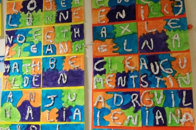 Avant les vacances de Noël, les CP ont réalisé une oeuvre plastique sur leur prénom.