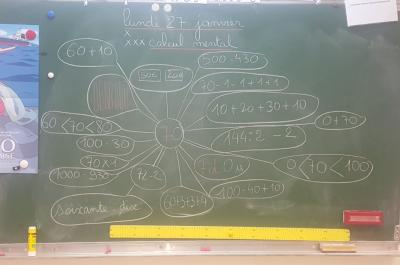 Chaque jour les élèves décomposent le nombre du jour. Celui-ci correspond au nombre de jours d'école depuis la rentrée du mois de septembre. Au fil des mois, les élèves ont affiné leurs décompositions et ont réinvesti ce qu'ils ont appris. Certains utilisent même la multiplication alors que nous ne l'avons pas encore vraiment abordée en classe.