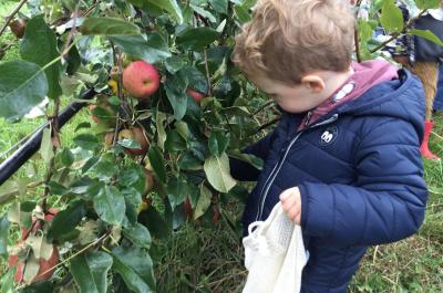 Sortie sous le soleil pour apprendre autrement . Nous réutiliserons le vocabulaire entendu ( le Verger, le pommier, acide, sucré, les allées….)
