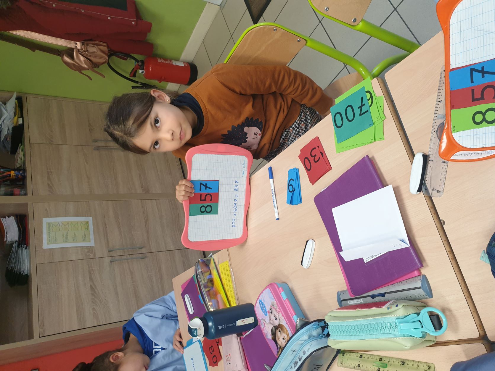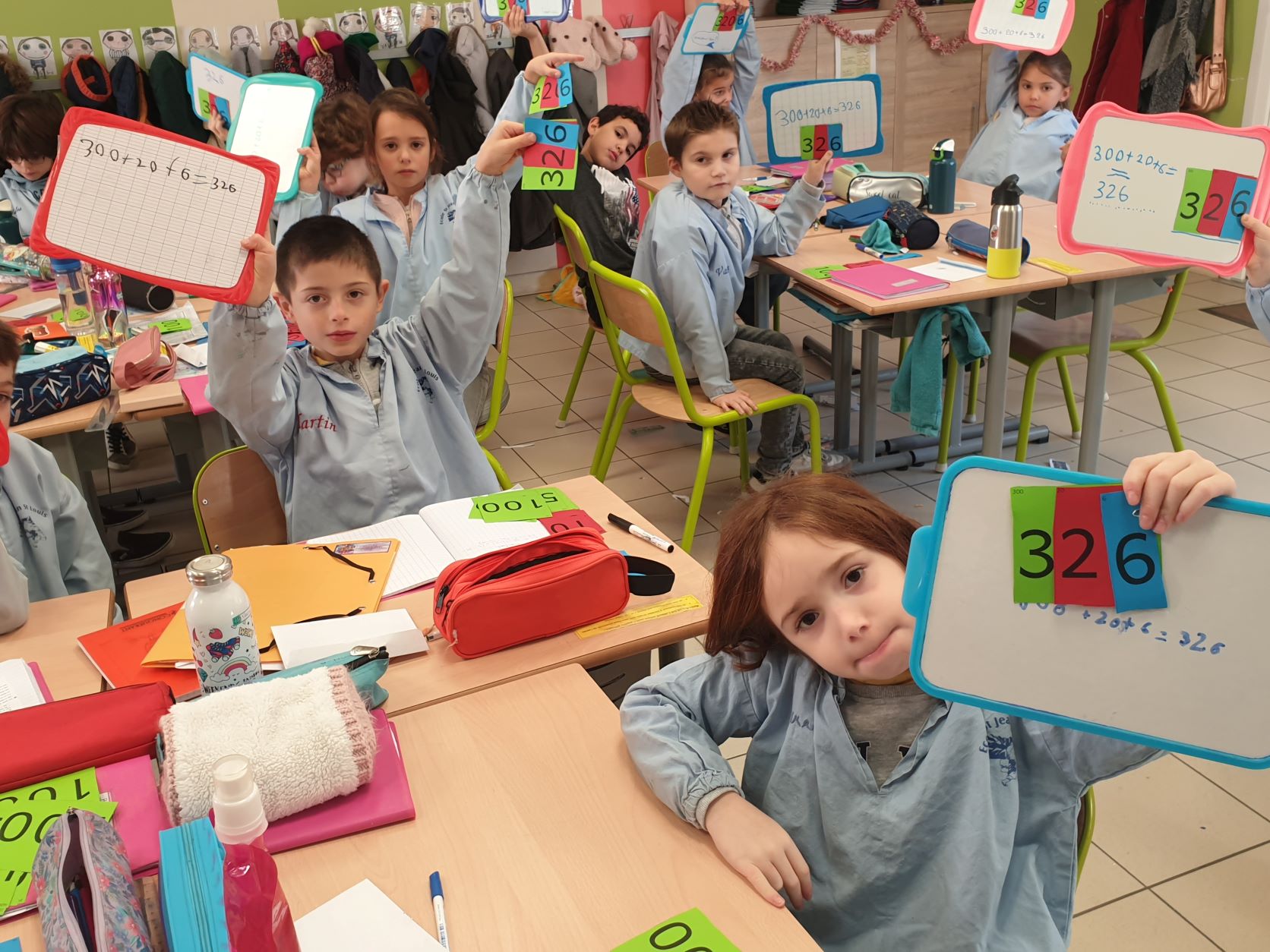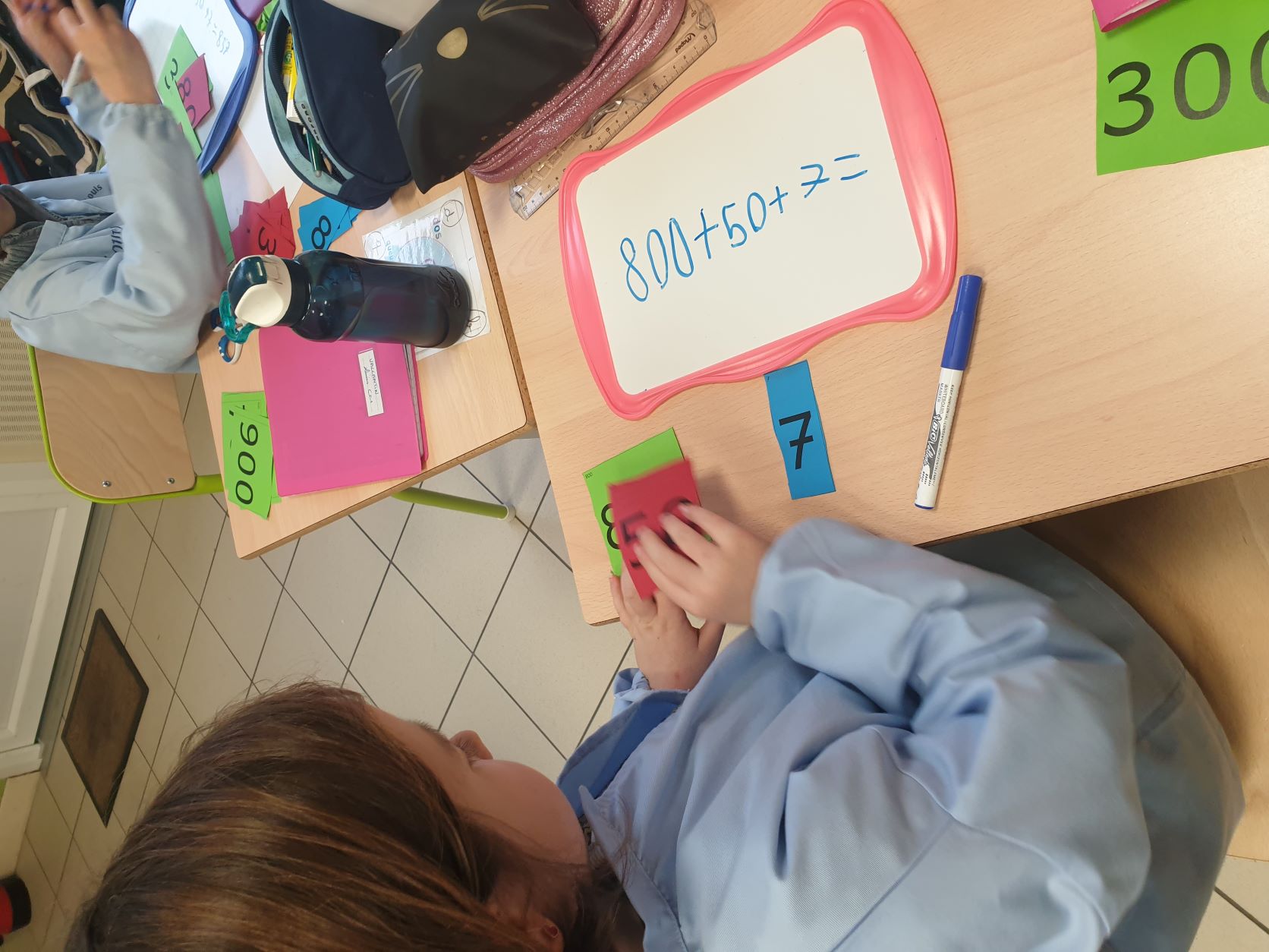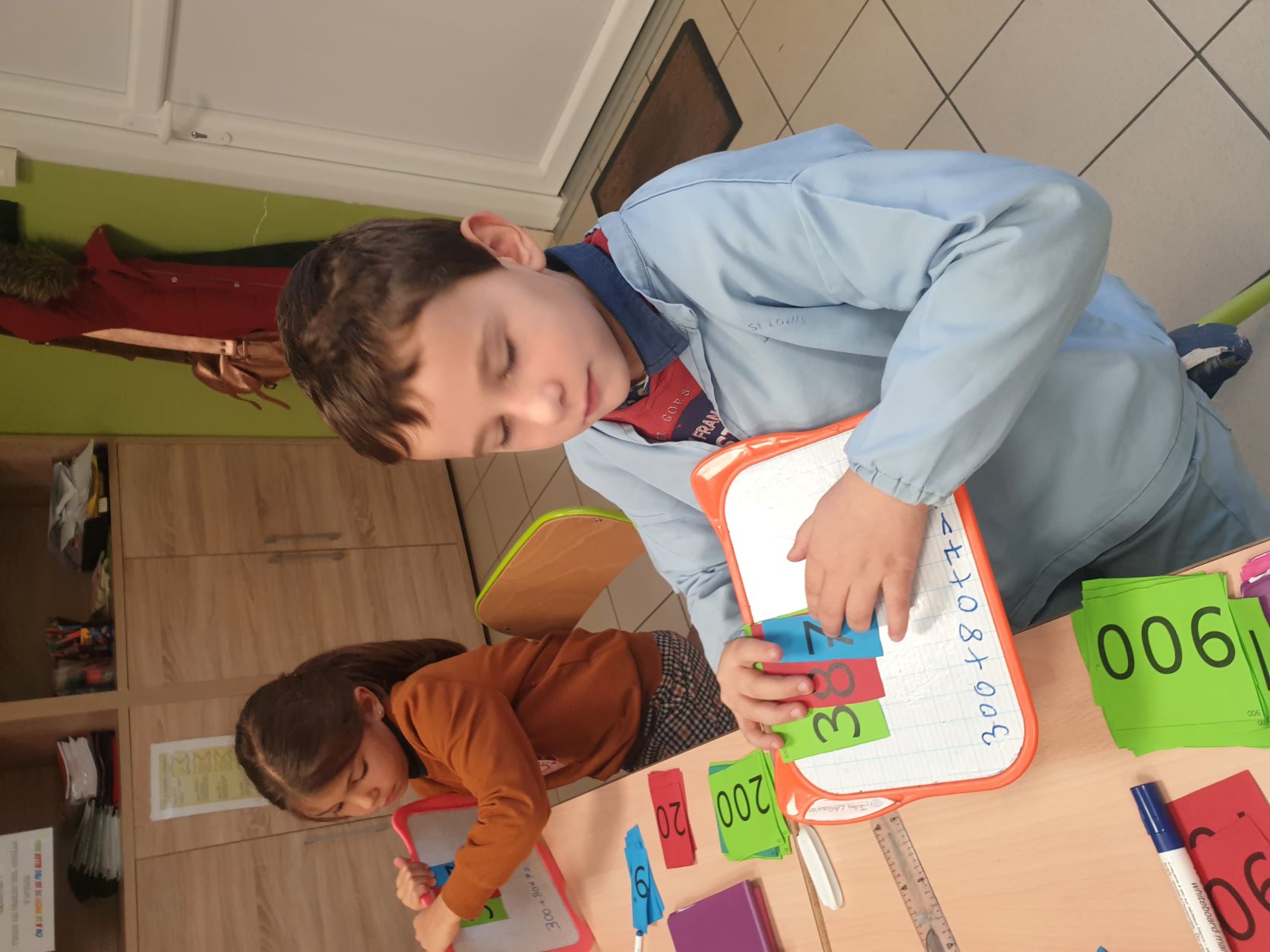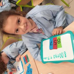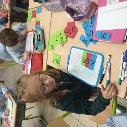 Cela permet aux élèves qui sont un peu en difficultés en numération de pouvoir décomposer et recomposer les nombres en jouant et de comprendre davantage le système décimal. Tous apprennent en jouant, en prenant du plaisir et en souriant. Ce qui est très intéressant c'est que la maîtresse de CE2 utilise également ce matériel, les élèves de CE1 sauront déjà l'utiliser l'année prochaine mais évidemment avec davantage d'étiquettes pour travailler sur des nombres plus grands.