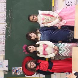 Mardi 17 février, jour de mardi gras, nous avons fêté Carnaval à l'école. Les enfants et les adultes étaient heureux de se déguiser, de défiler au Refuge protestant et dans la cour devant l'école. La pluie s'est arrêtée le temps d'une journée pour que l'on puisse profiter pleinement de cette belle fête. Grâce à la générosité des parents, enfants et adultes de l'école ont pu déguster d'excellentes crêpes. La journée était parfaite!