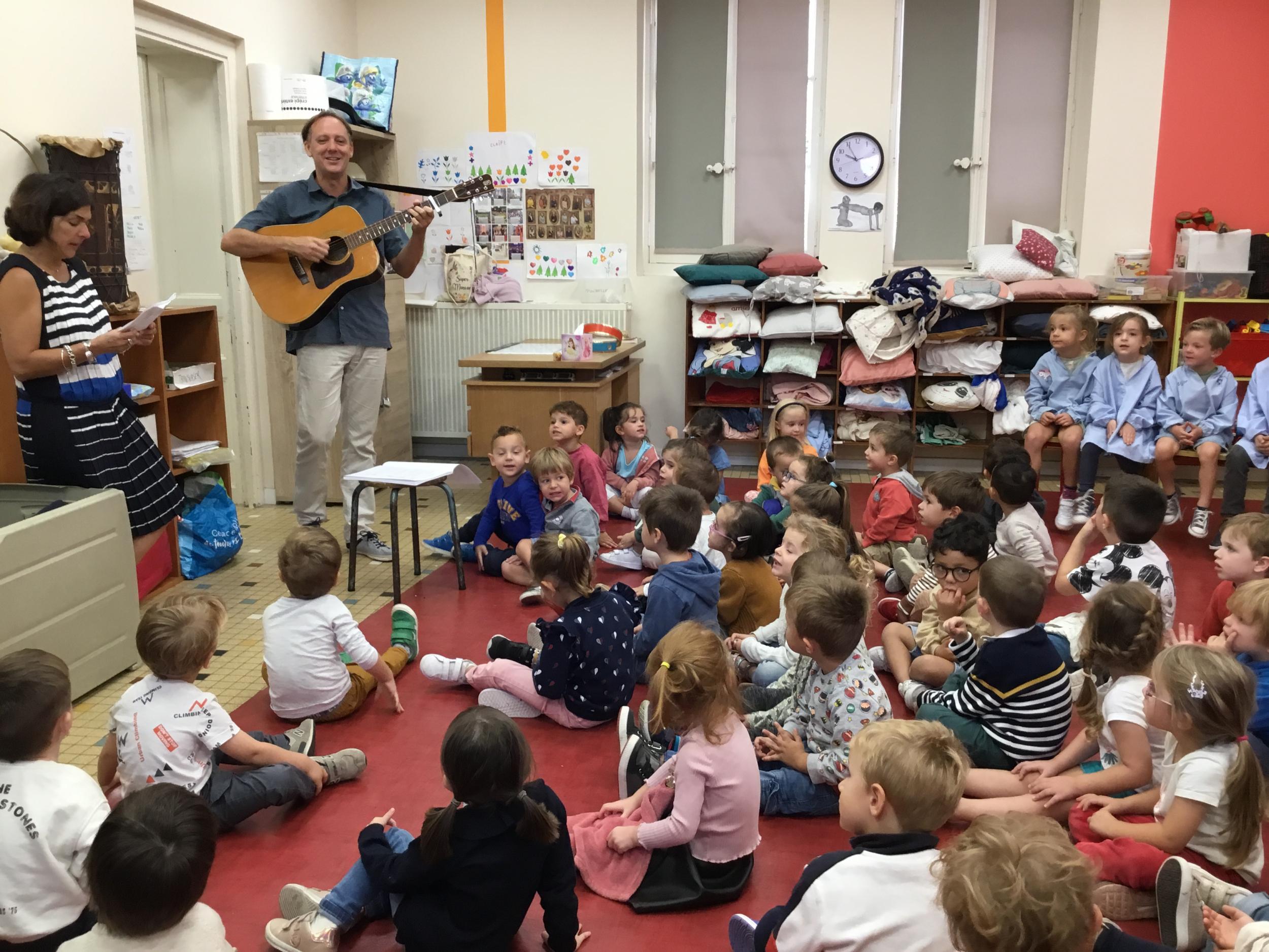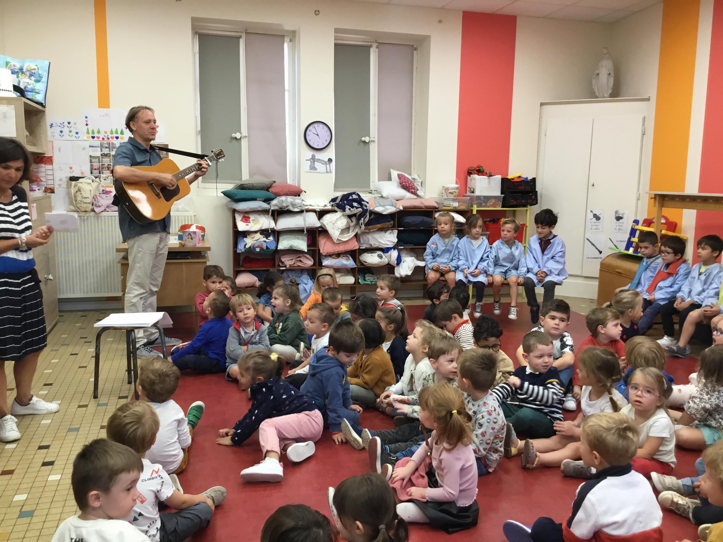 Petite et moyenne section 28/09/2022 La chorale de la maternelle a commencé. Tous les élèves de la petite section à la grande section inclue se retrouvent tous les Vendredis à 9 h00 pour chanter des chansons en français et en Anglais .