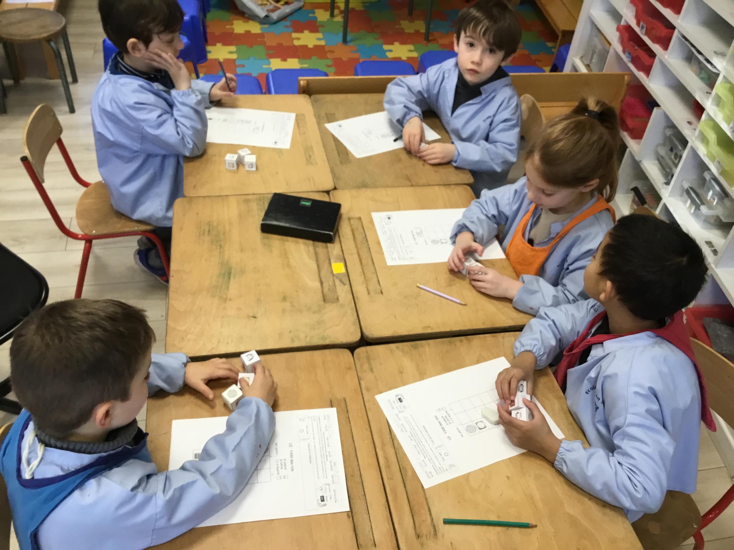 Ainsi, ils travaillaient la compétence de numération :"Mobiliser des symboles analogiques, (constellations, doigts), verbaux (mots-nombres) ou écrits en chiffres, pour communiquer des informations orales et écrites sur une quantité, jusqu’à 10 au moins."