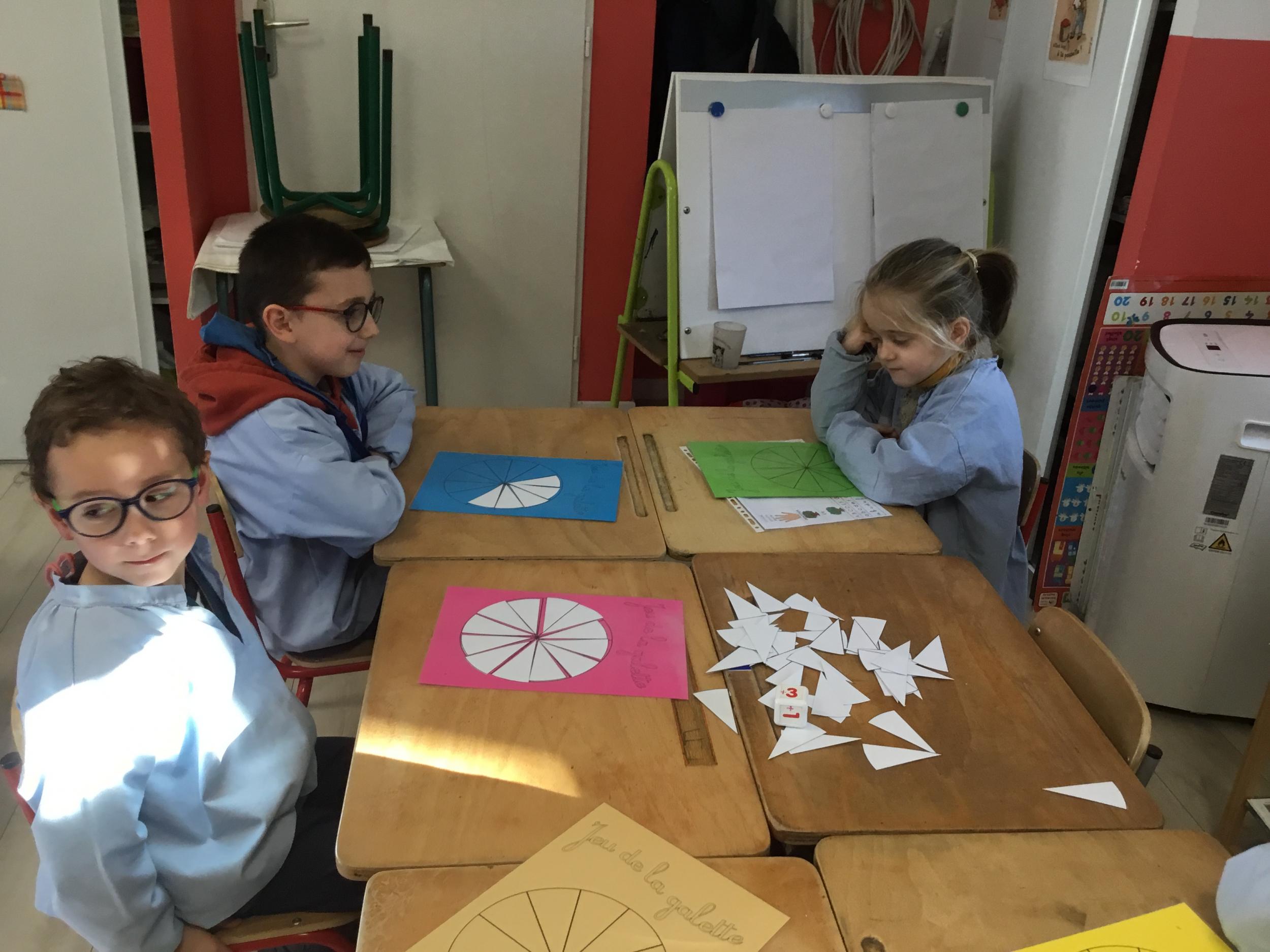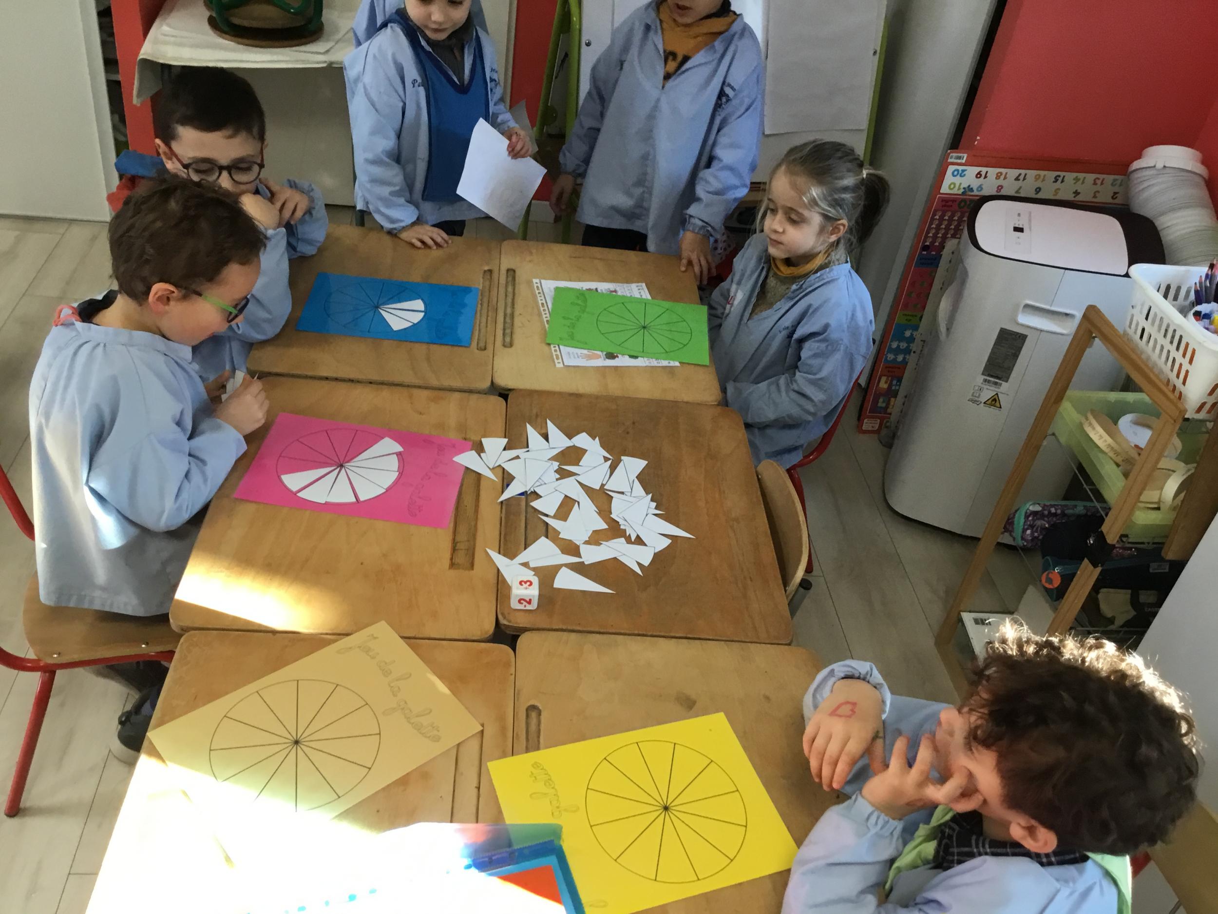 Pour nous préparer à la suite du concours , nous allons avoir une matinée jeux de sociétés avant les vacances. Nous aurons un nouveau jeu de galettes "la bataille des galettes". c'est un jeu de bataille où les élèves retournent leur carte en même temps, comparent le nombre de parts dessinées et celui qui en a le plus remporte toutes les cartes.