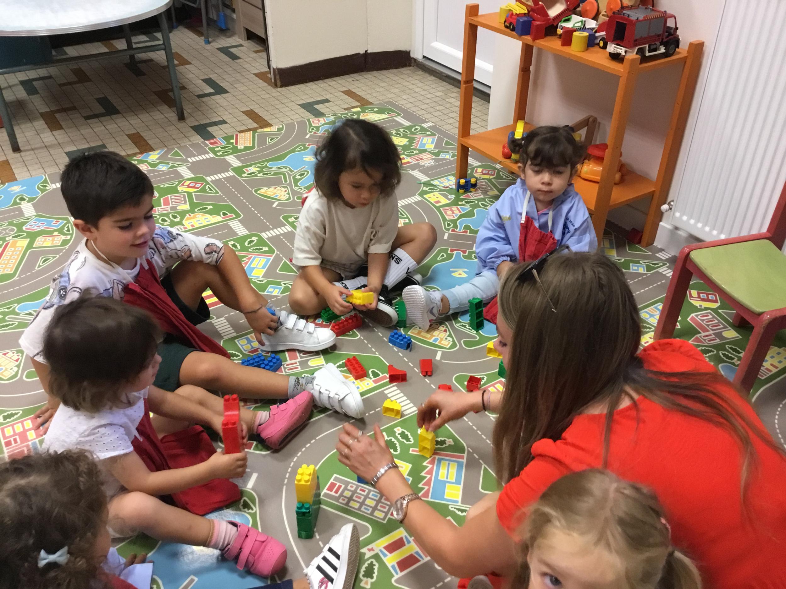 Ils ont préféré les ateliers plus ludiques : trier les legos en fonction de la couleur et nommer les couleurs en anglais , jouer au facteur n’est pas passé pour apprendre les jours de la semaine, ou continuer un algorithme avec des bouchons ( chaque enfant avait devant lui une série plus ou moins complexe à continuer en fonction de leur habileté)