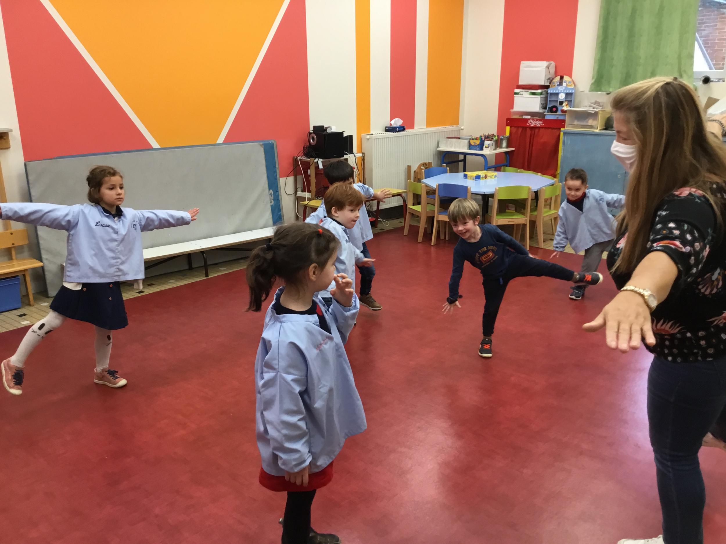 Petite et moyenne section 15/11/2021 Pour apprendre à tracer des traits obliques, il faut d’abord s’approprier cette notion avec son corps. Ainsi , les élèves apprennent à se pencher et jouent avec l’équilibre en psychomotricité .