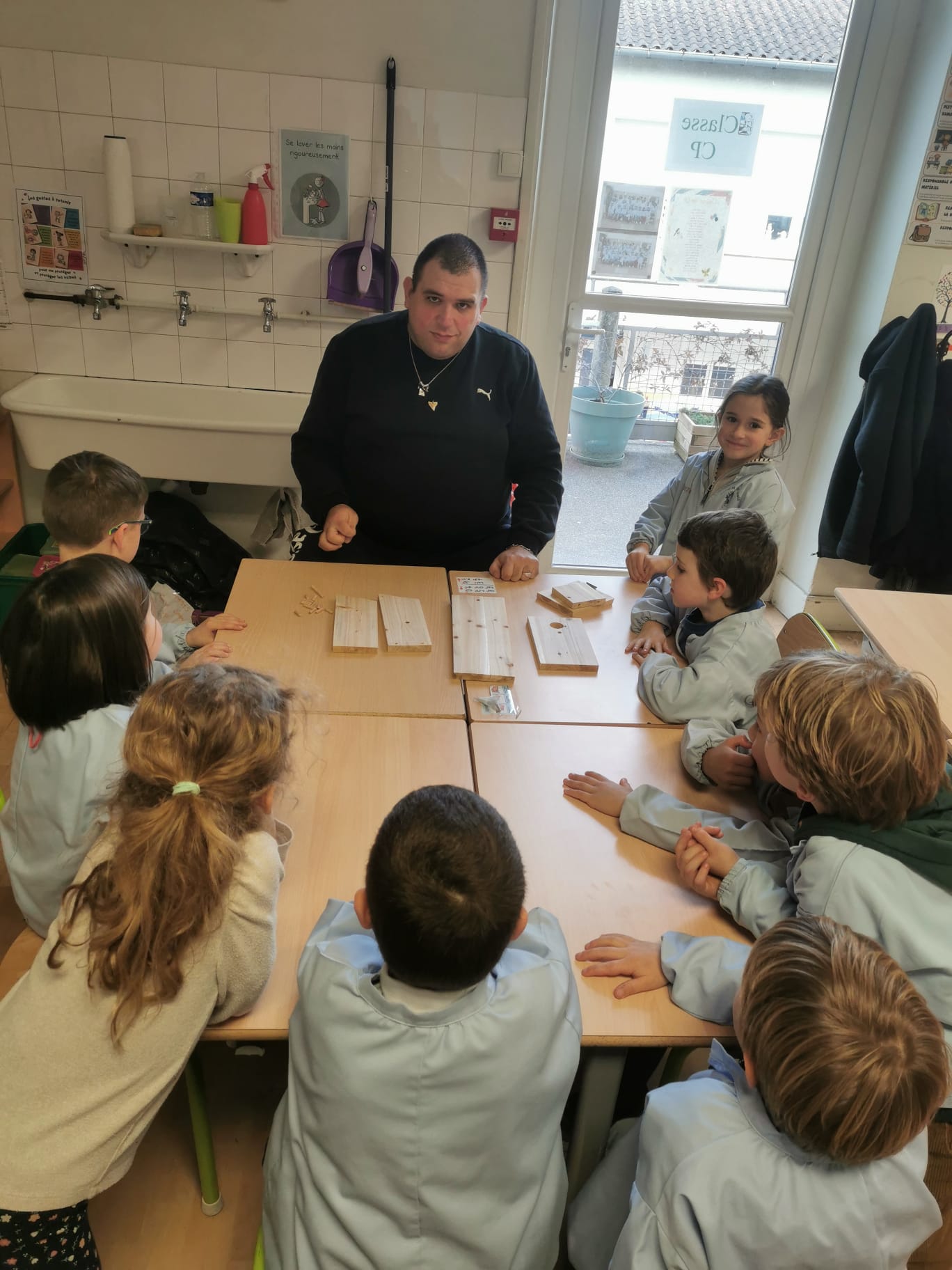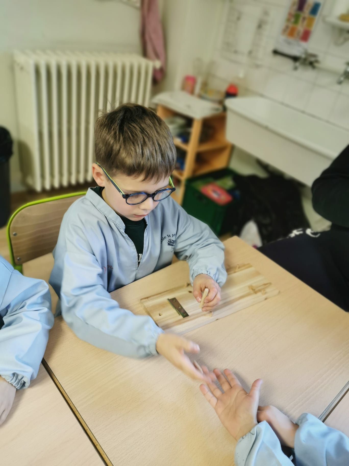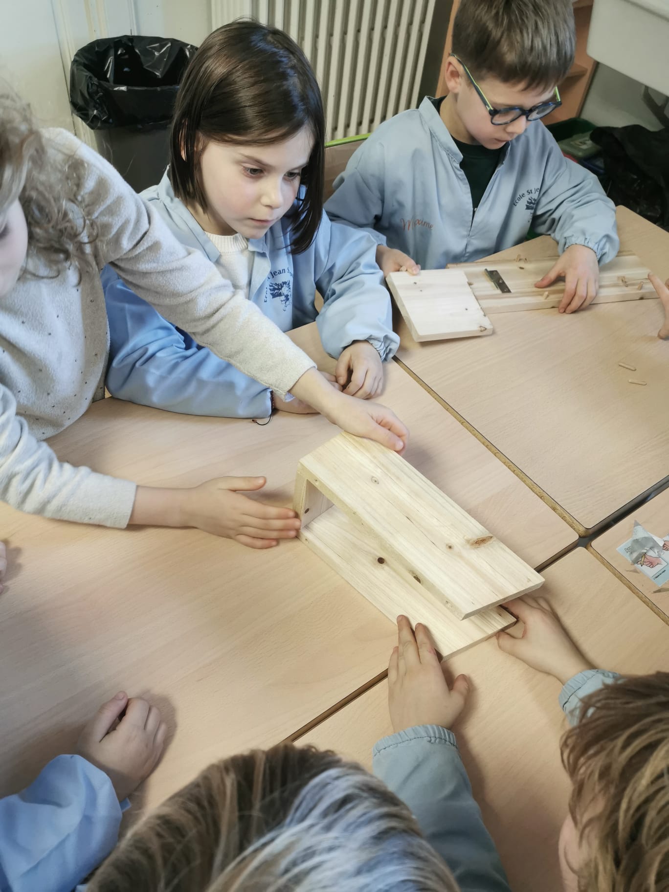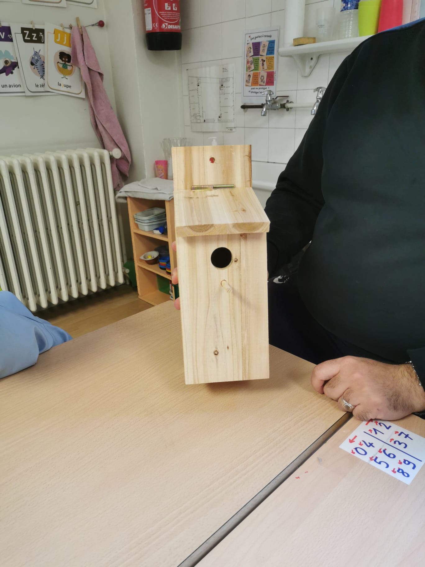 Dans un deuxième temps, après la récréation, nous avons participé à trois ateliers : un où nous avons observé des nids et des plumes d'oiseaux avec Eric, un où nous avons fabriqué un nichoir sous les explications d'Alexandre et enfin un où nous avons joué à un jeu de memory sur les oiseaux avec Julie.