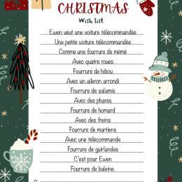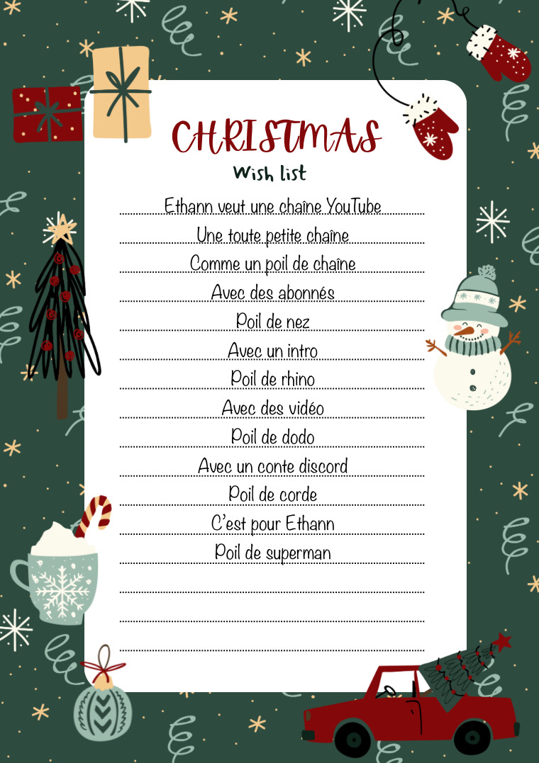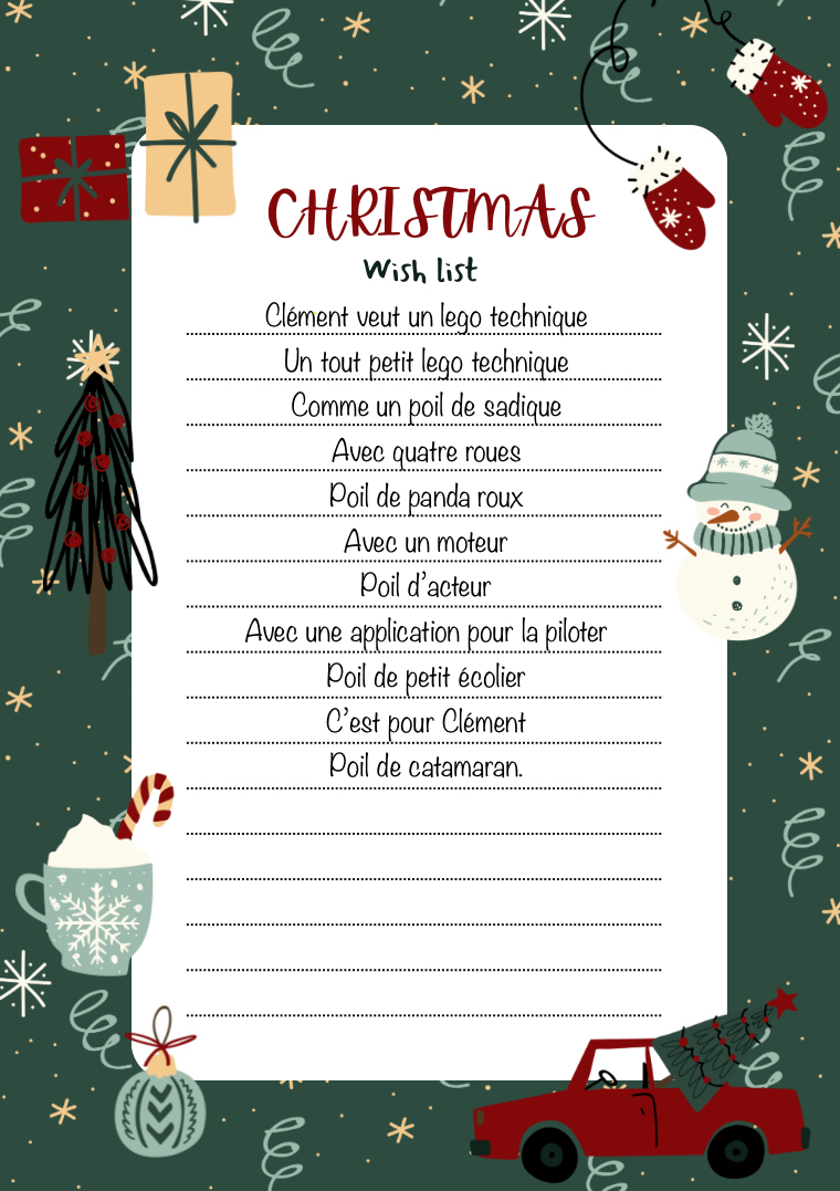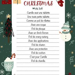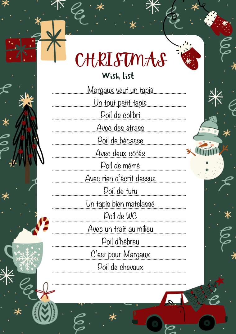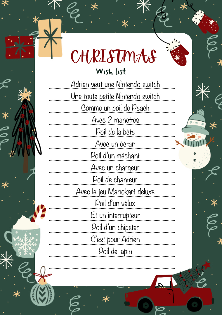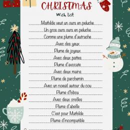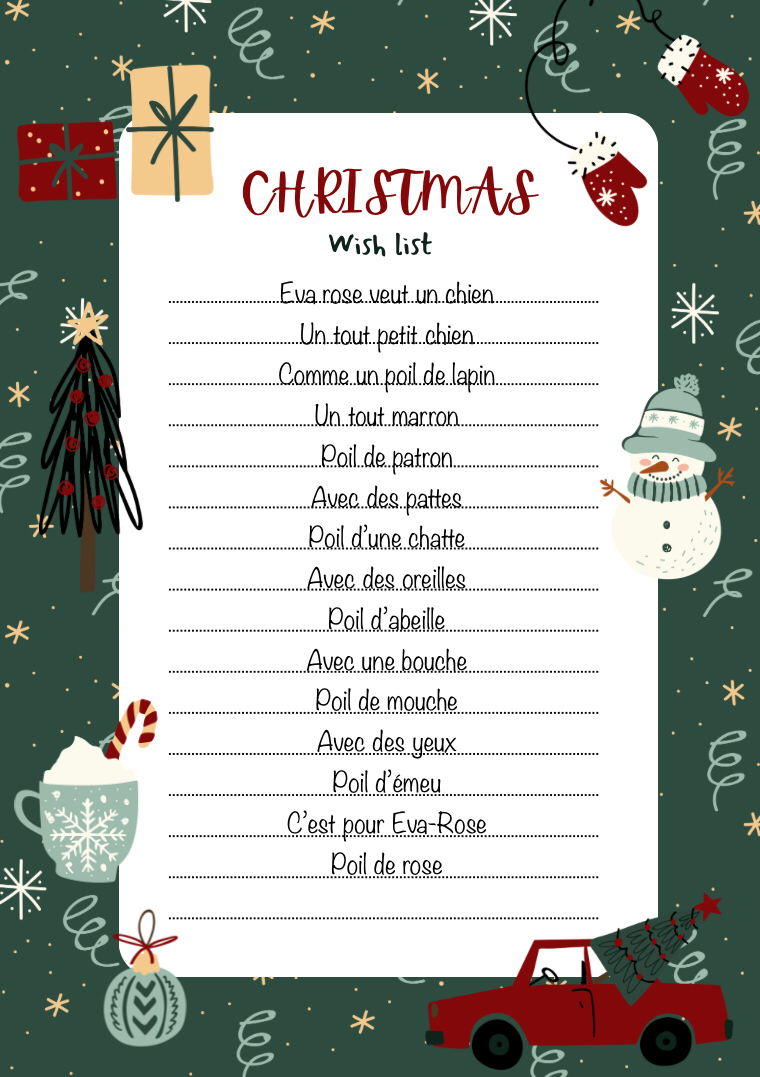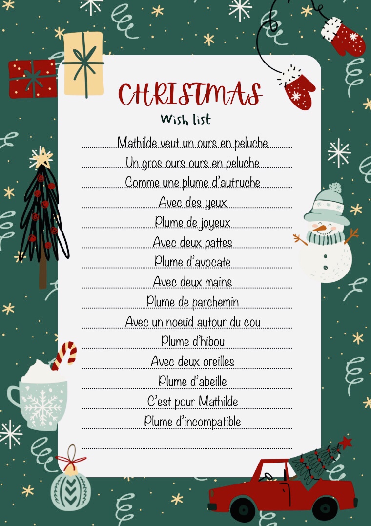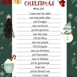 Cycle 3 CM1 CM2 09/01/2024 Afin de rédiger nos listes de noël de manière poétique, nous nous sommes inspirés de la chanson qu'il y a dans le livre que nous avons travaillé : La sorcière de la rue Mouffetard.