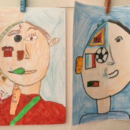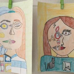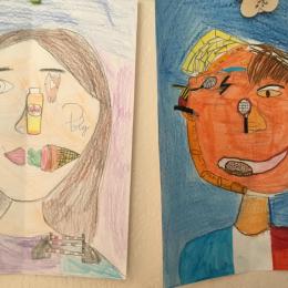 Depuis le début de l’année, les élèves travaillent autour du portrait. Voici leurs nouvelles œuvres. Un portrait qui permet aux autres élèves de mieux connaitre leurs camarades; un portrait qui montre pour une moitié du visage un portrait physique et pour l’autre moitié ce qu’ils sont. Au préalable, un travail de réflexion a été réalisé sur ce qu’ils aiment faire, lire, regarder, manger …