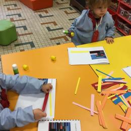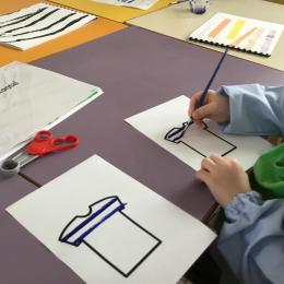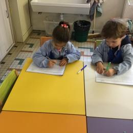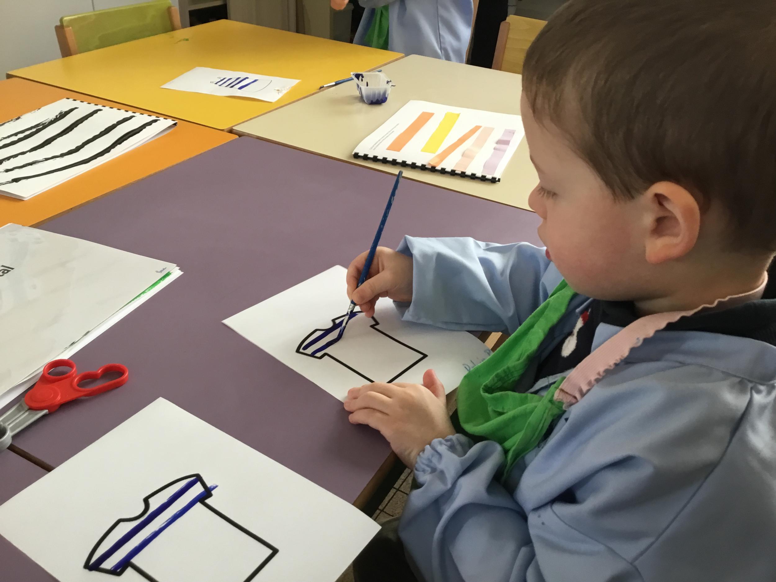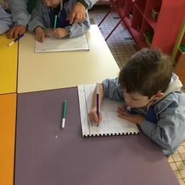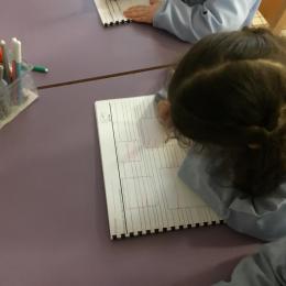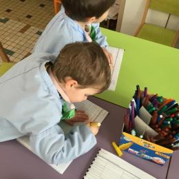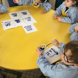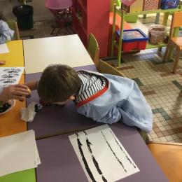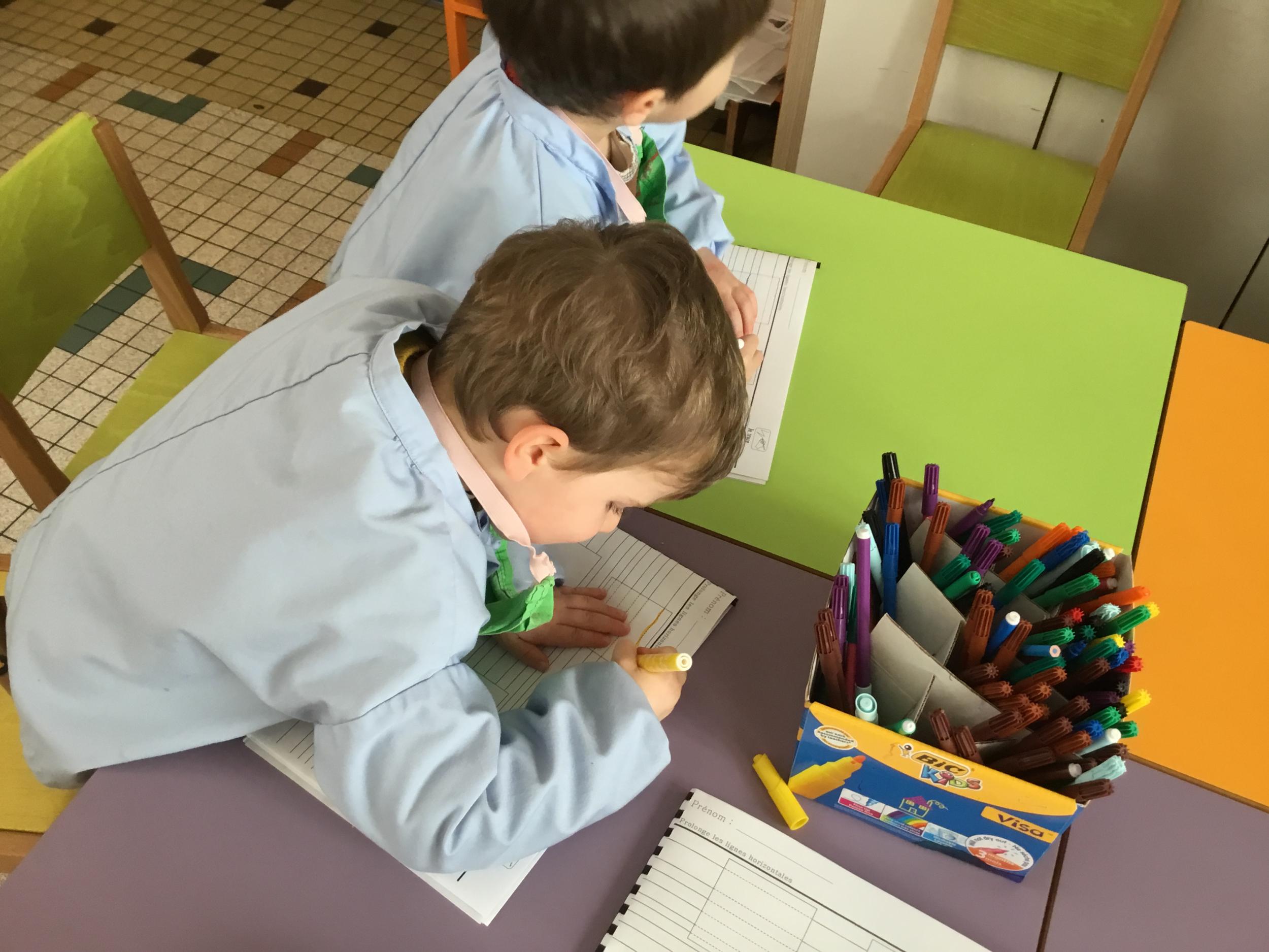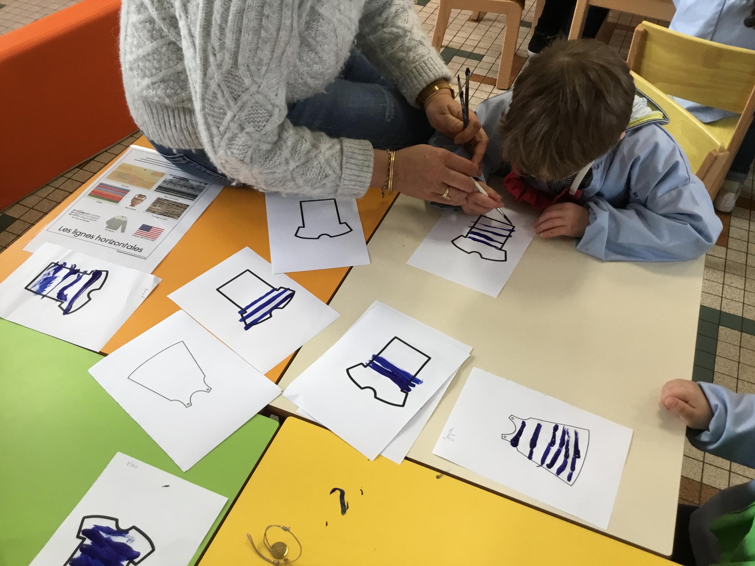 Après le trait vertical, les élèves ont travaillé autour du trait horizontal. Ces séances leur ont permis d’appréhender le sens de l’écrit de la gauche vers la droite et de maîtriser leur geste.