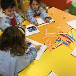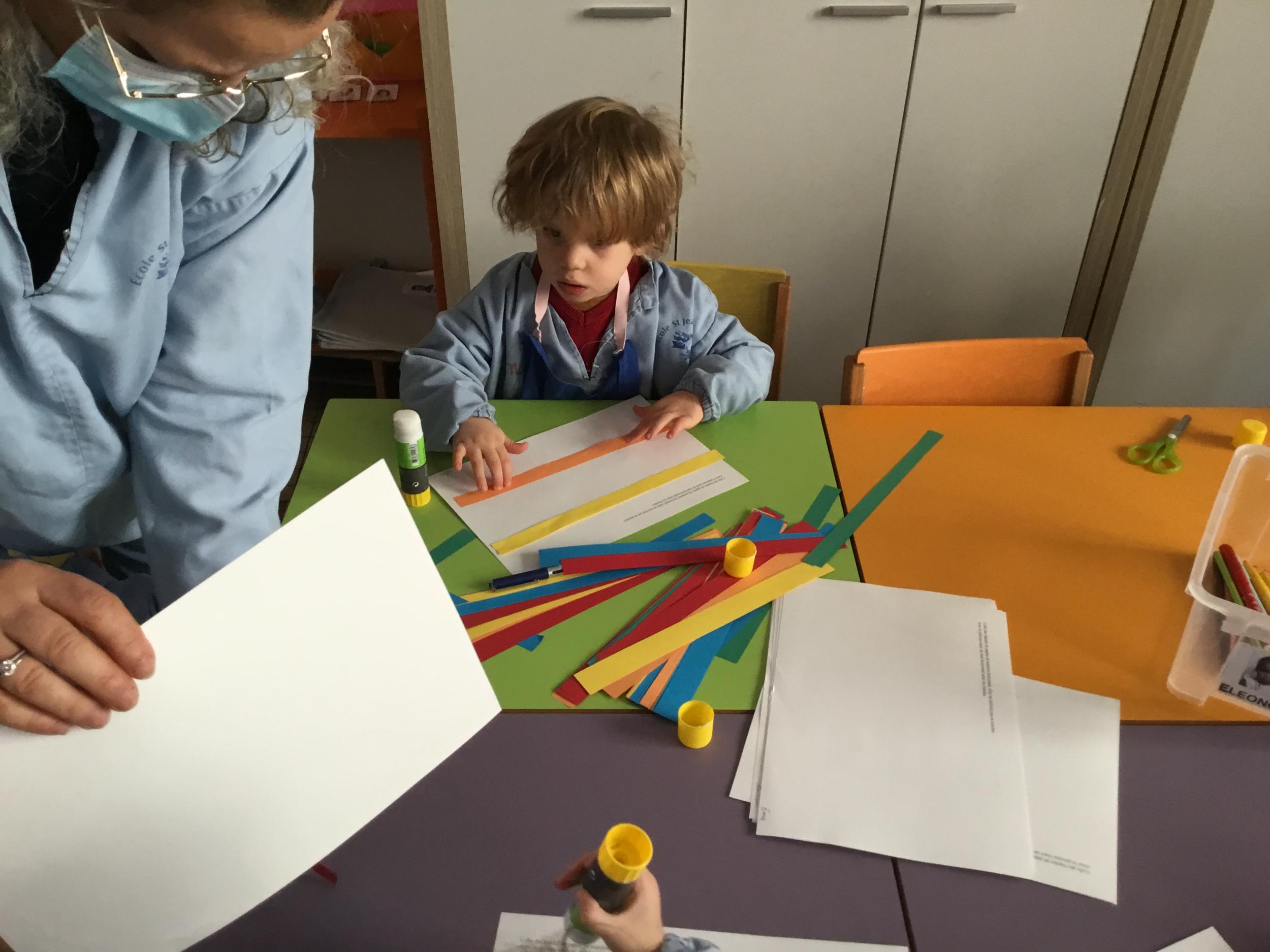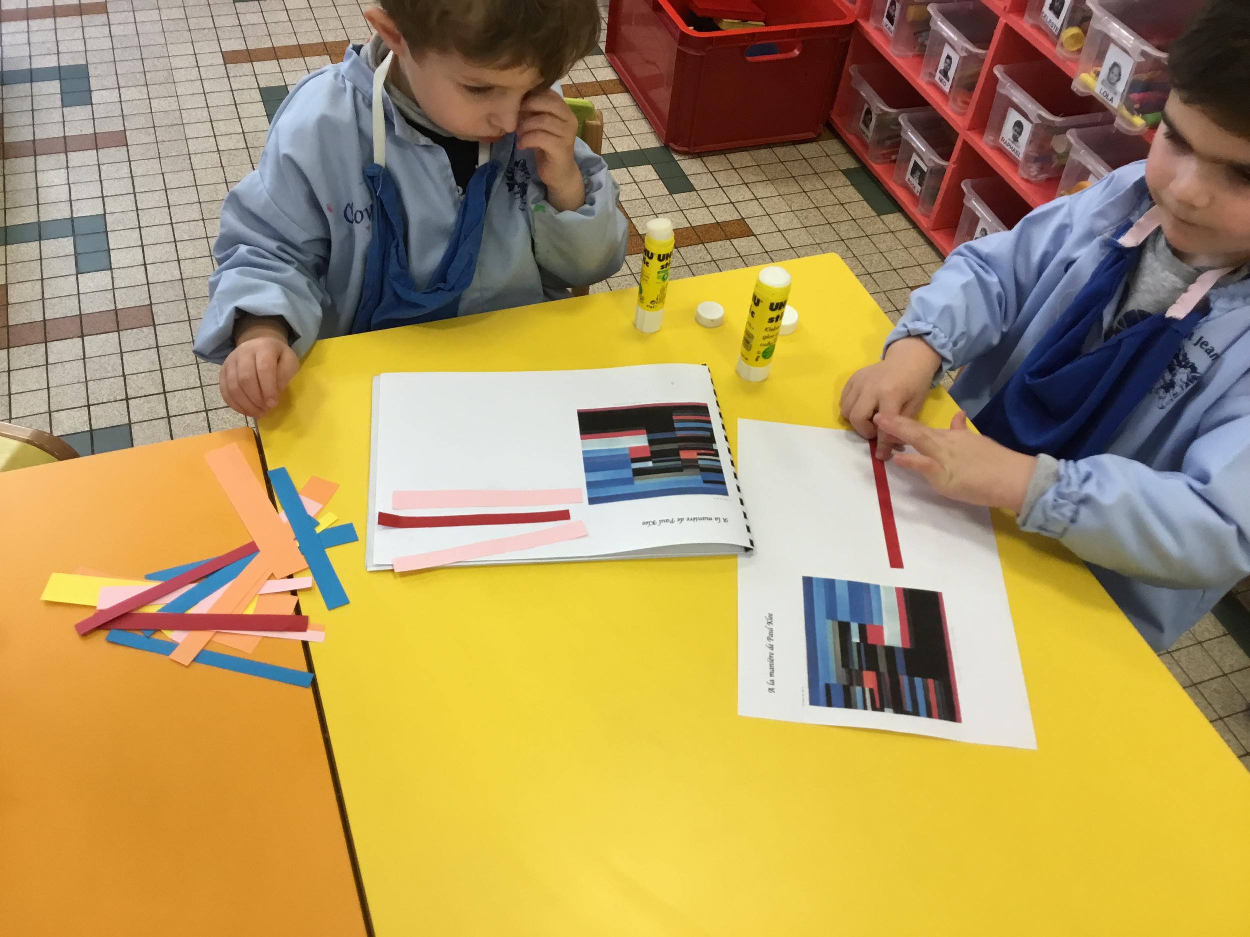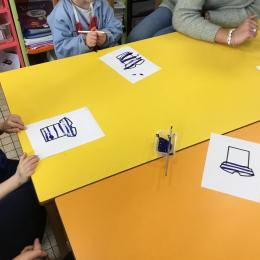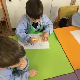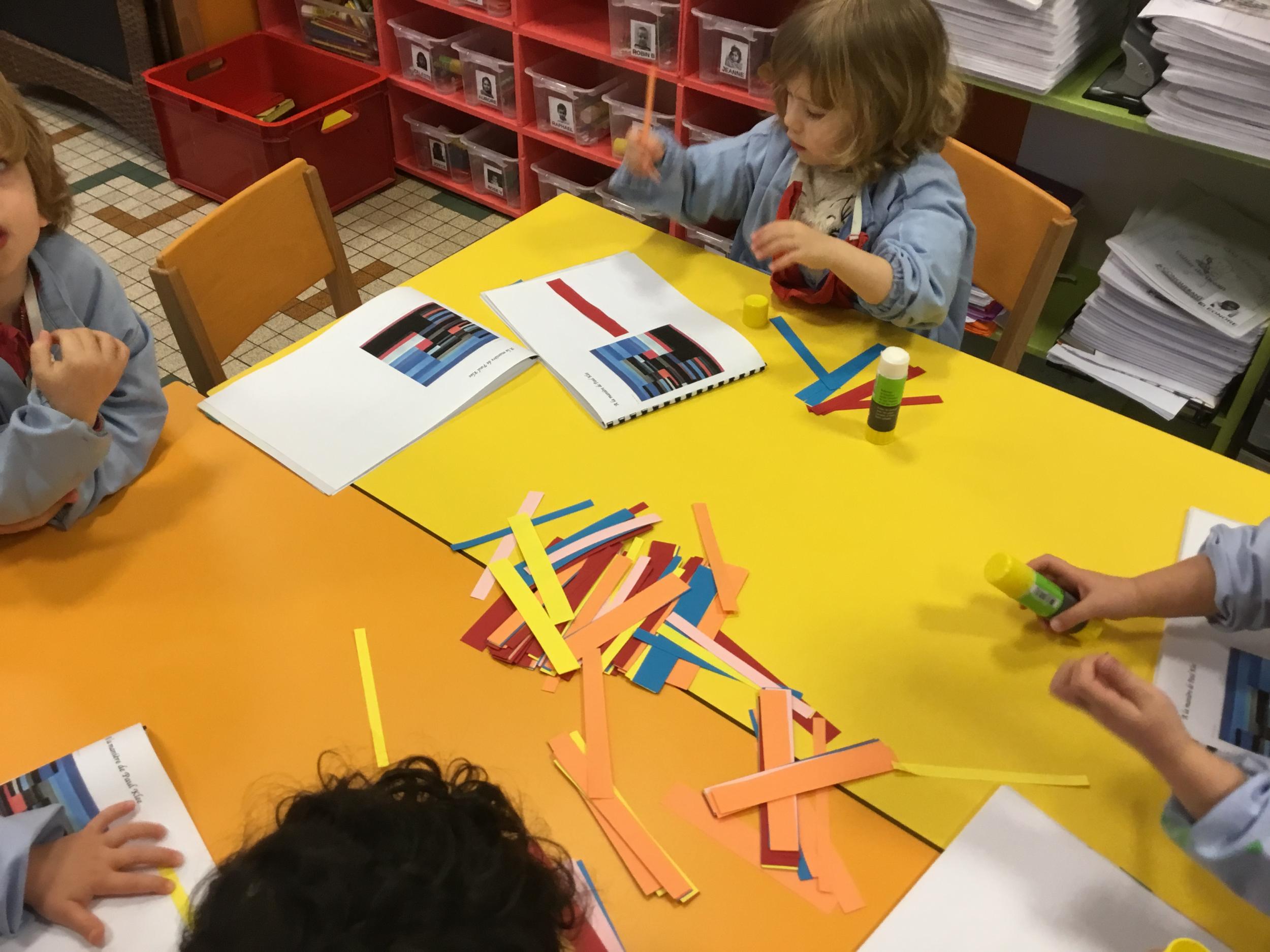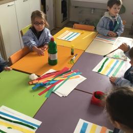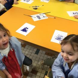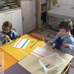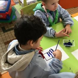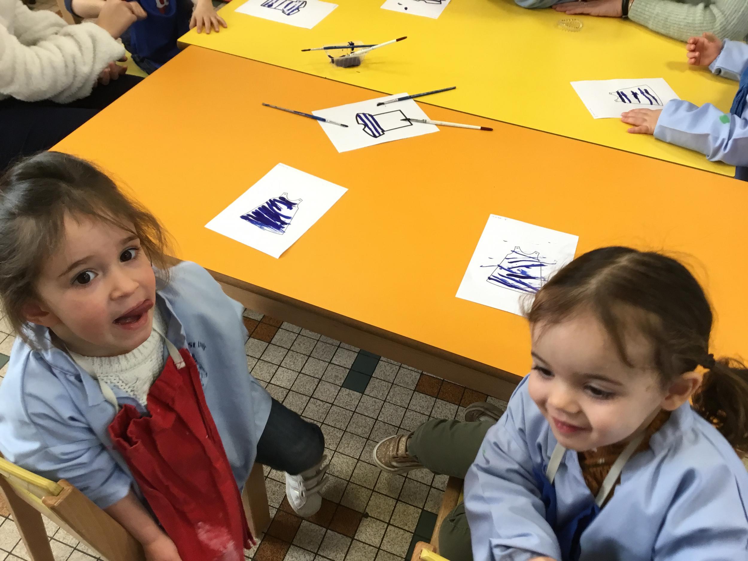 Après le trait vertical, les élèves ont travaillé autour du trait horizontal. Ces séances leur ont permis d’appréhender le sens de l’écrit de la gauche vers la droite et de maîtriser leur geste.