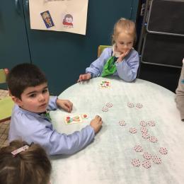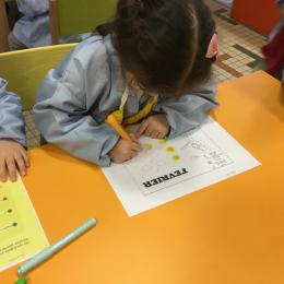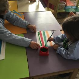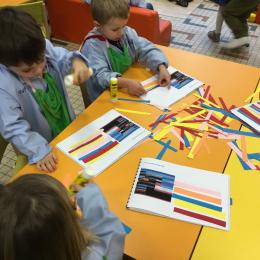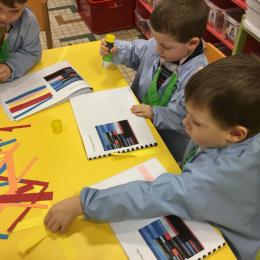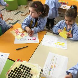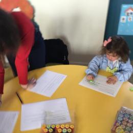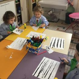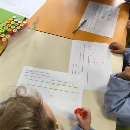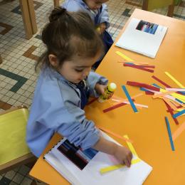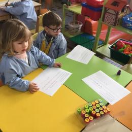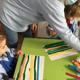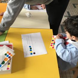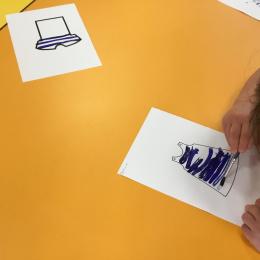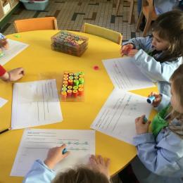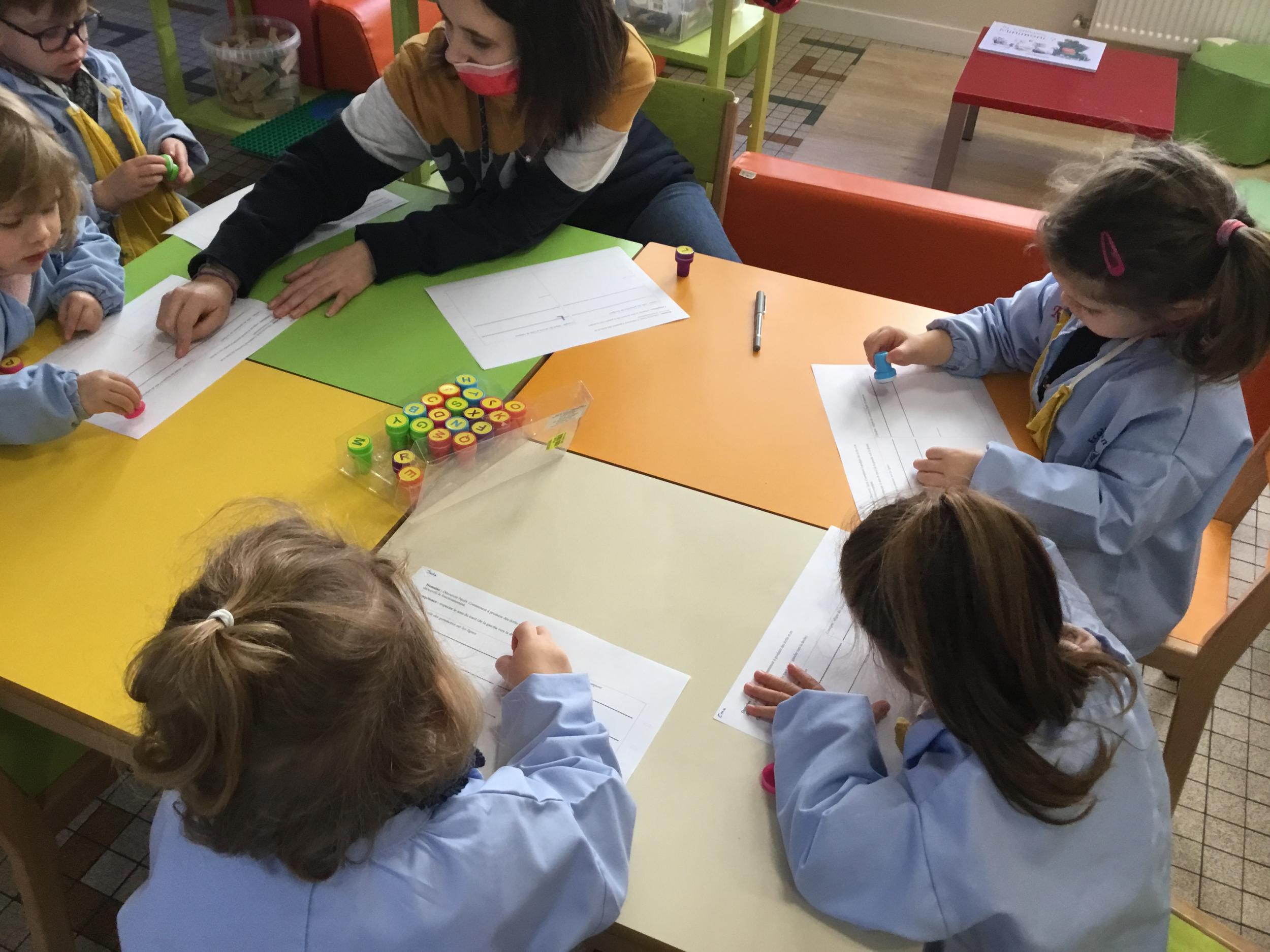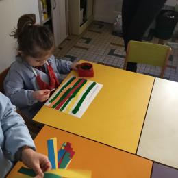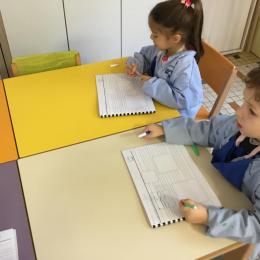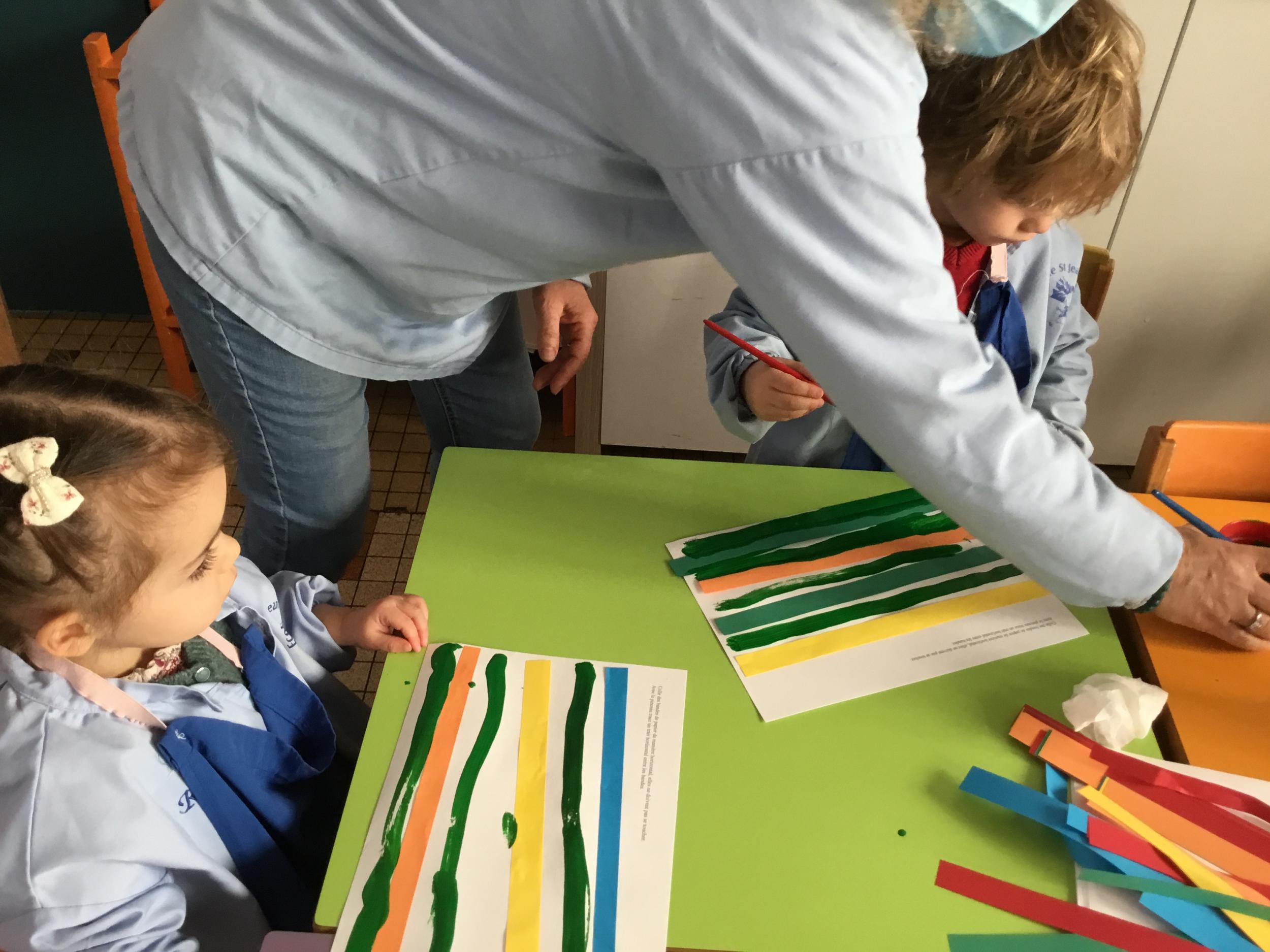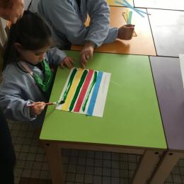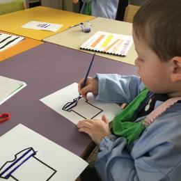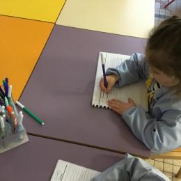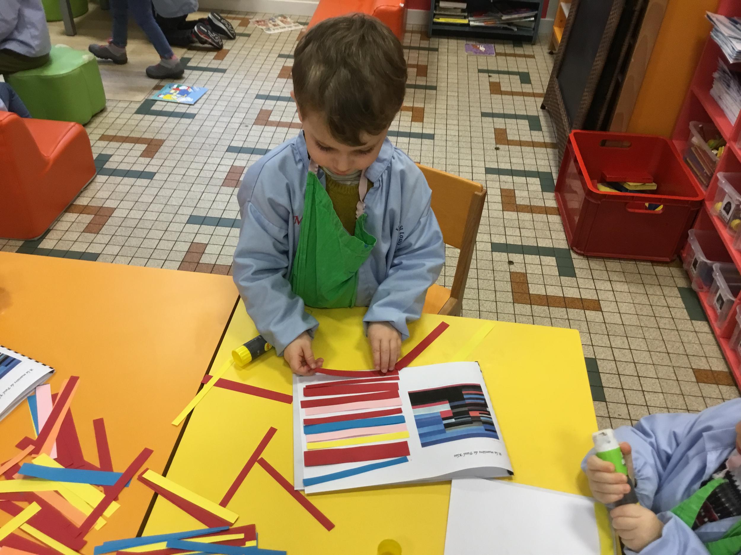 Après le trait vertical, les élèves ont travaillé autour du trait horizontal. Ces séances leur ont permis d’appréhender le sens de l’écrit de la gauche vers la droite et de maîtriser leur geste.