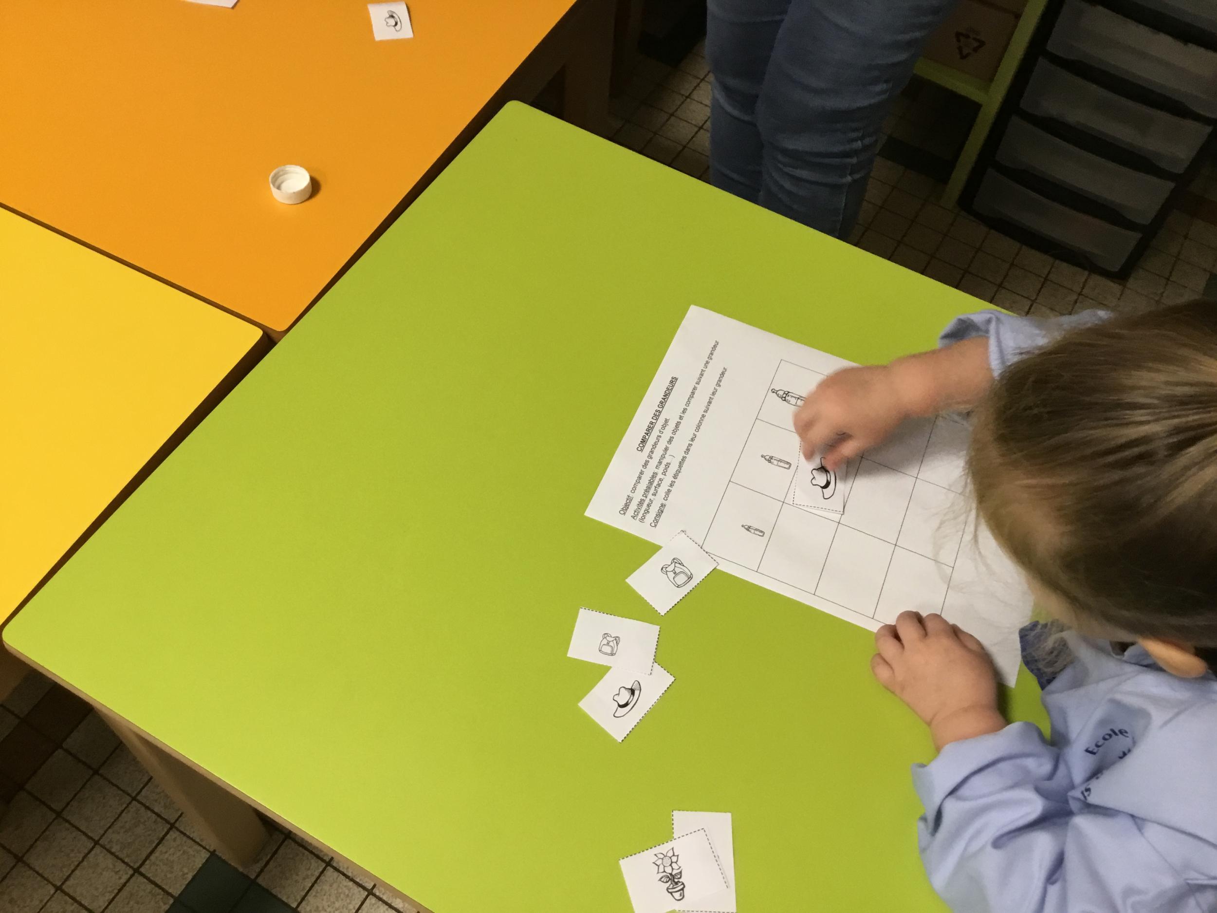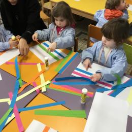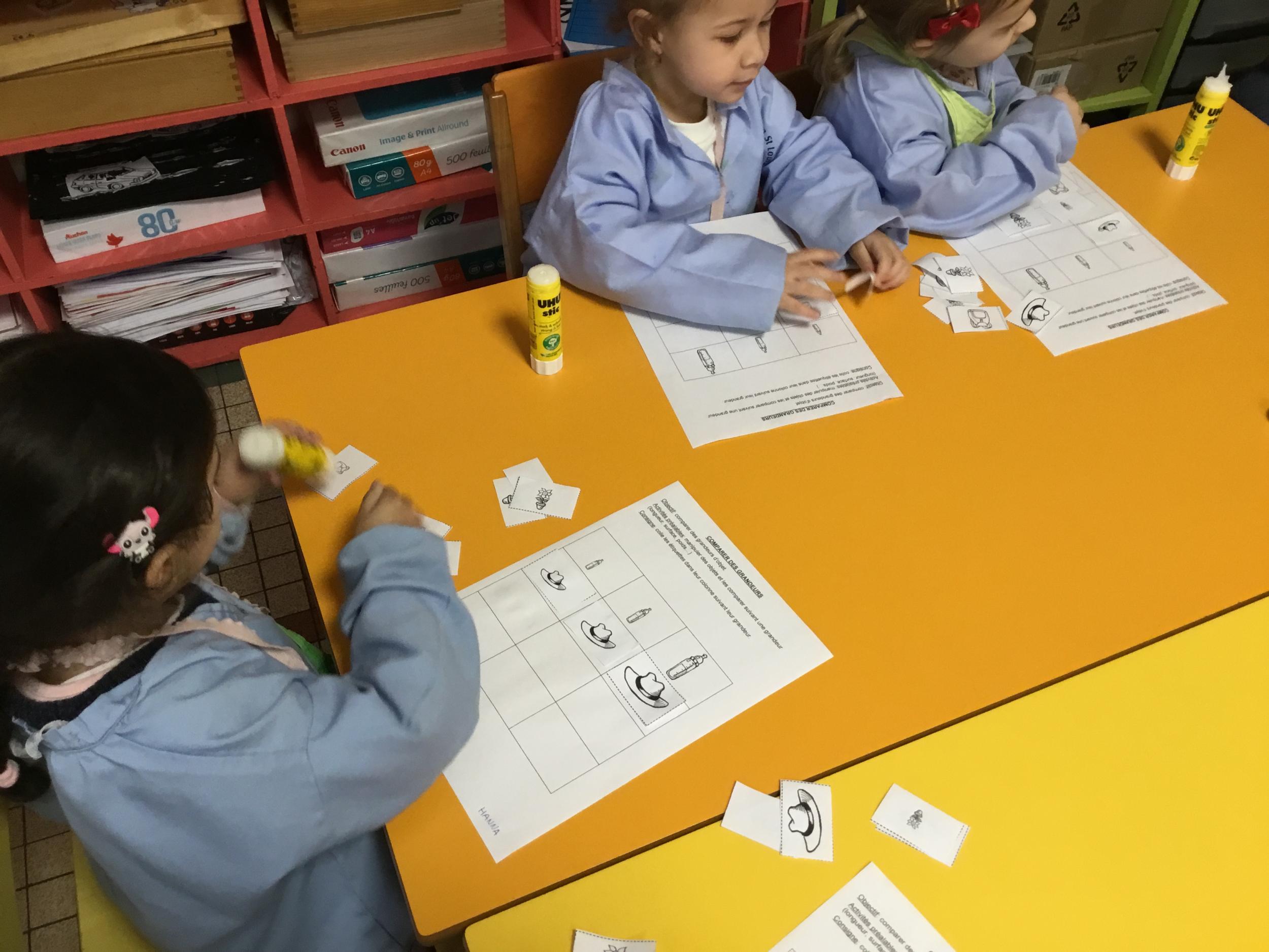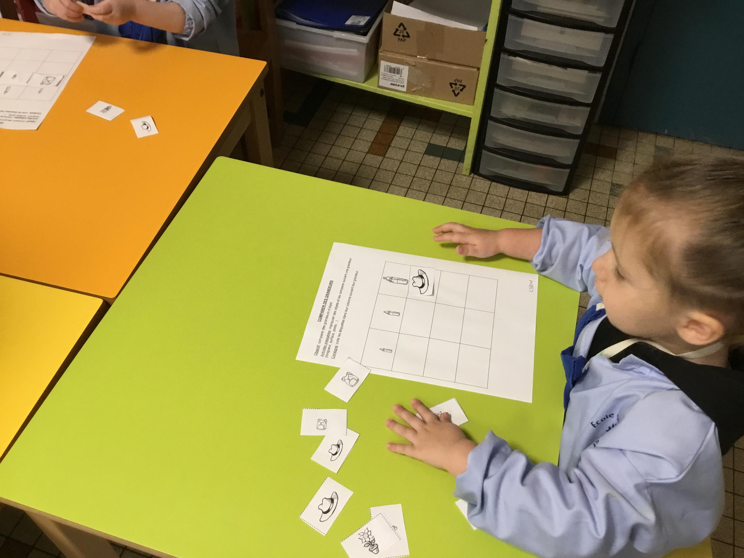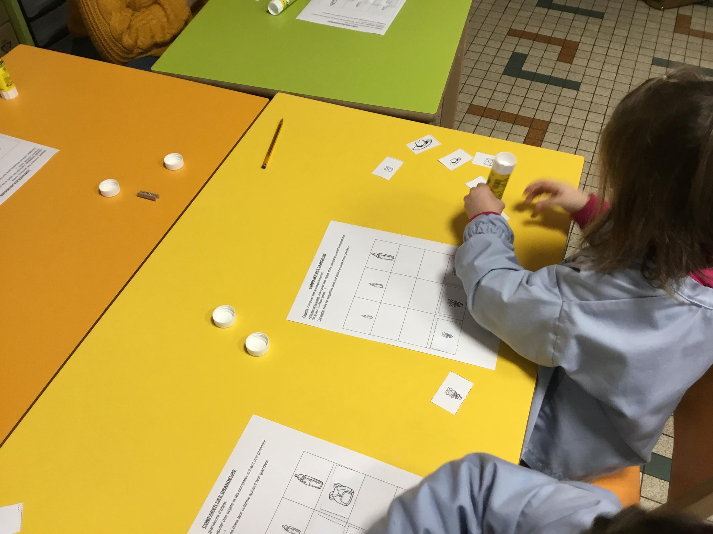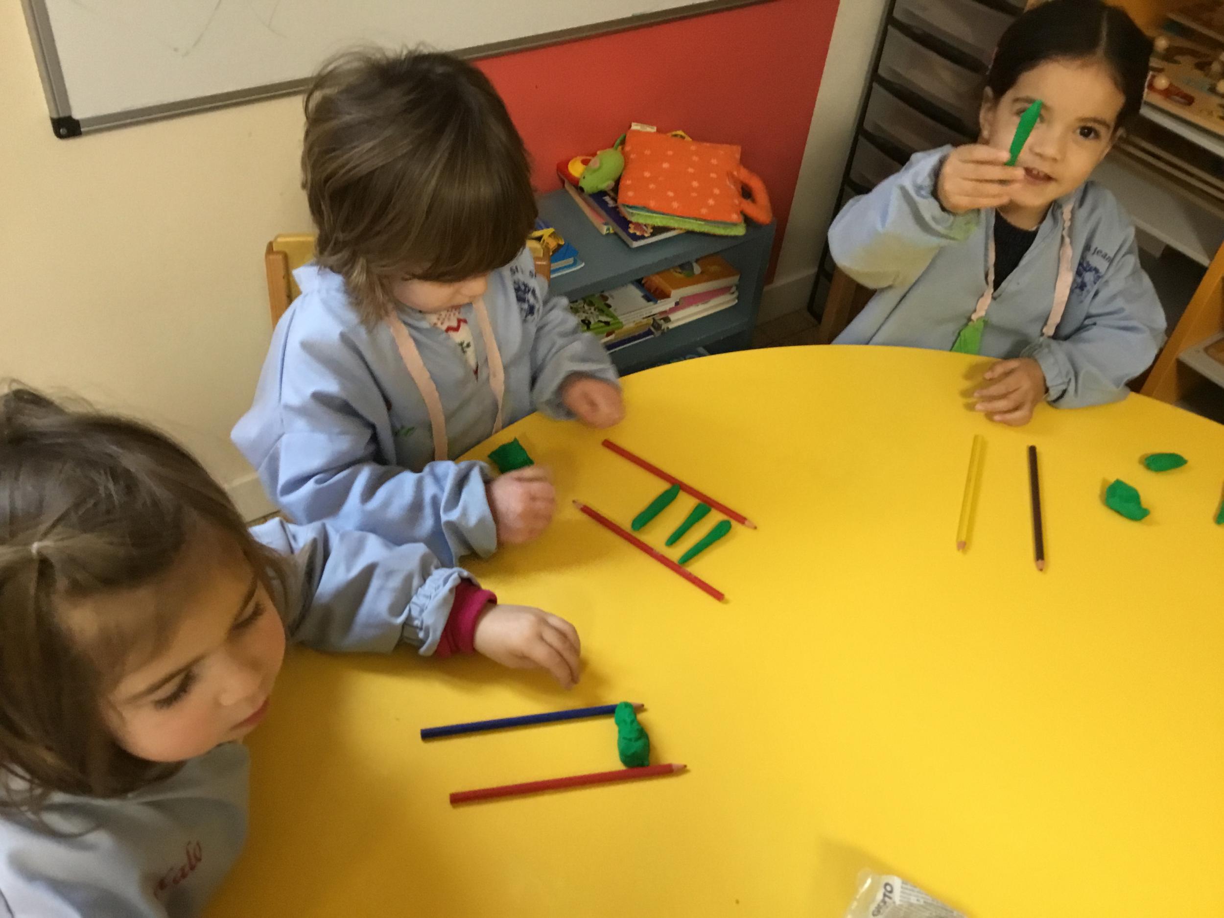 Petite et moyenne section 01/02/2026 Laisser une trace horizontale Coller des bandes papier dans le sens horizontal et tracer un trait horizontal entre chaque bande Modeler des boudins et les ranger de manière horizontale Ranger des objets du plus petit au plus grand Bravo à Victoria et Louna