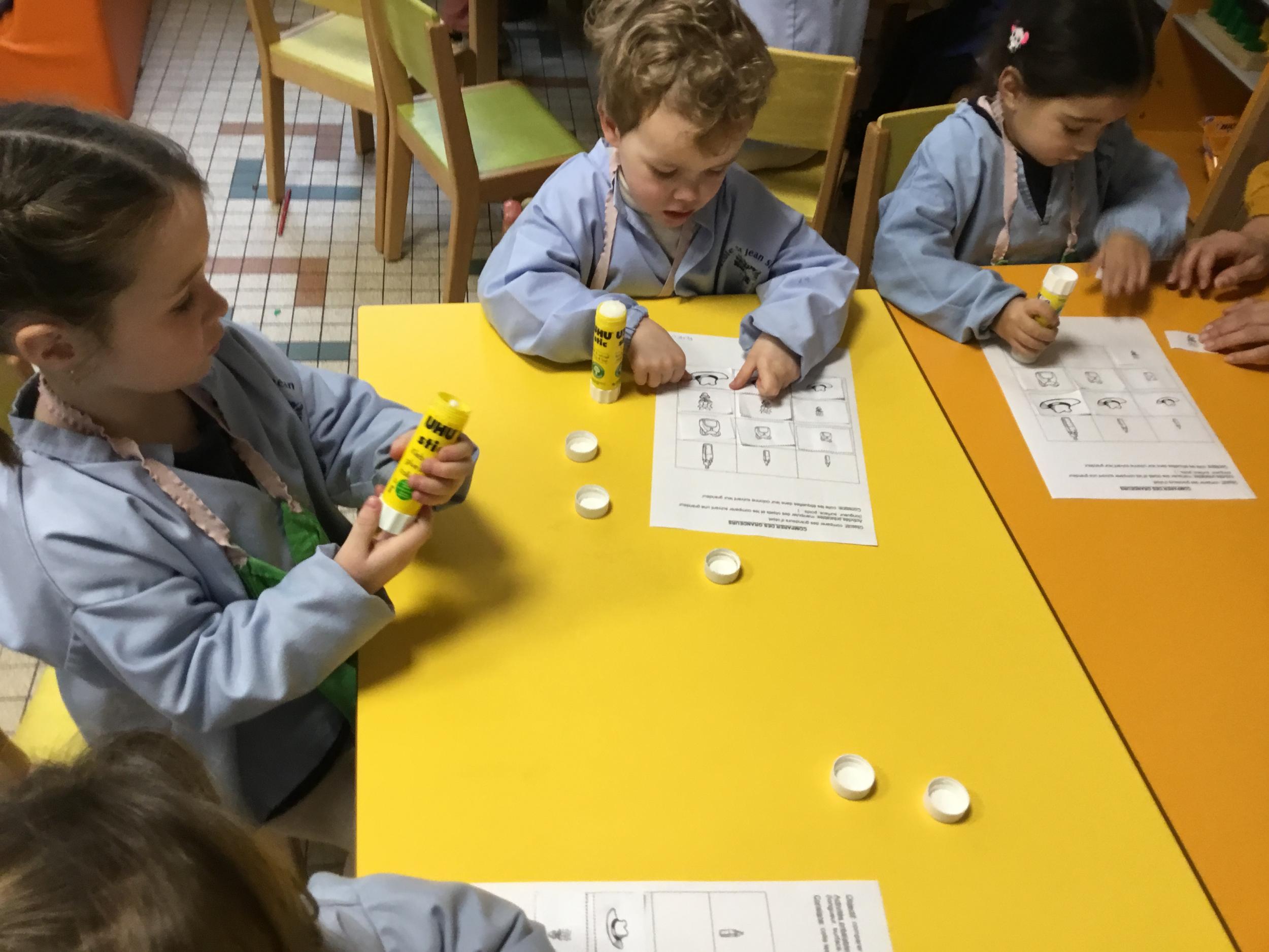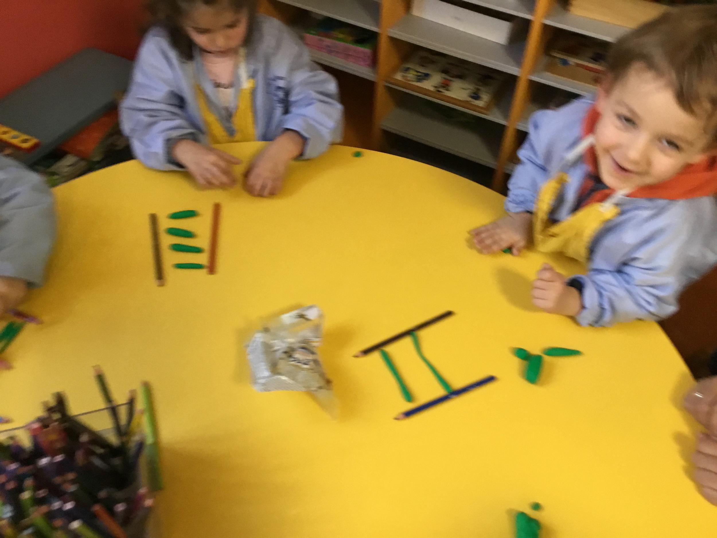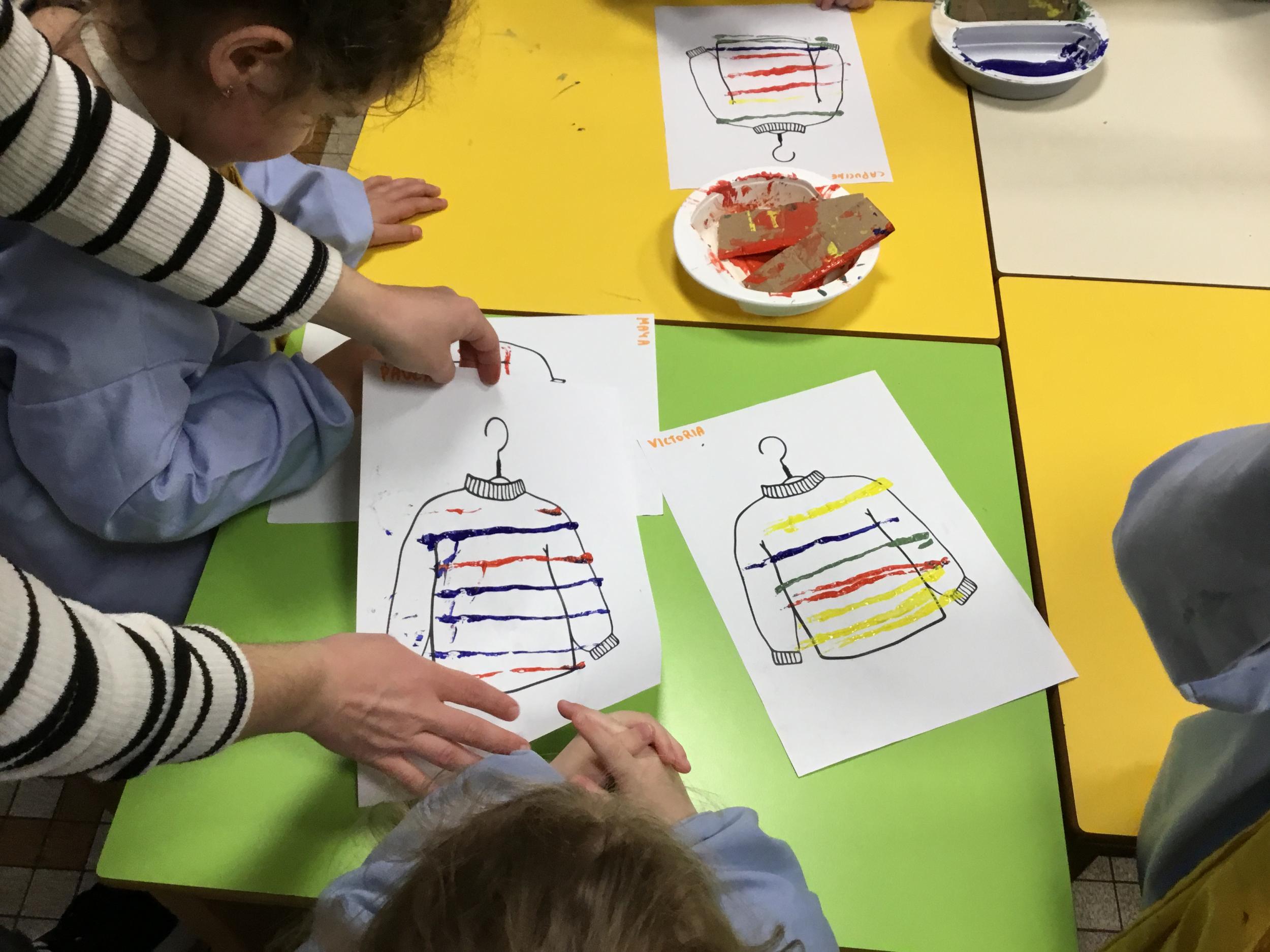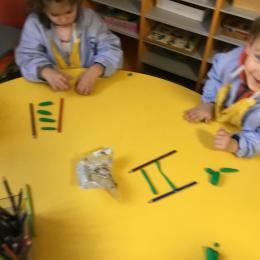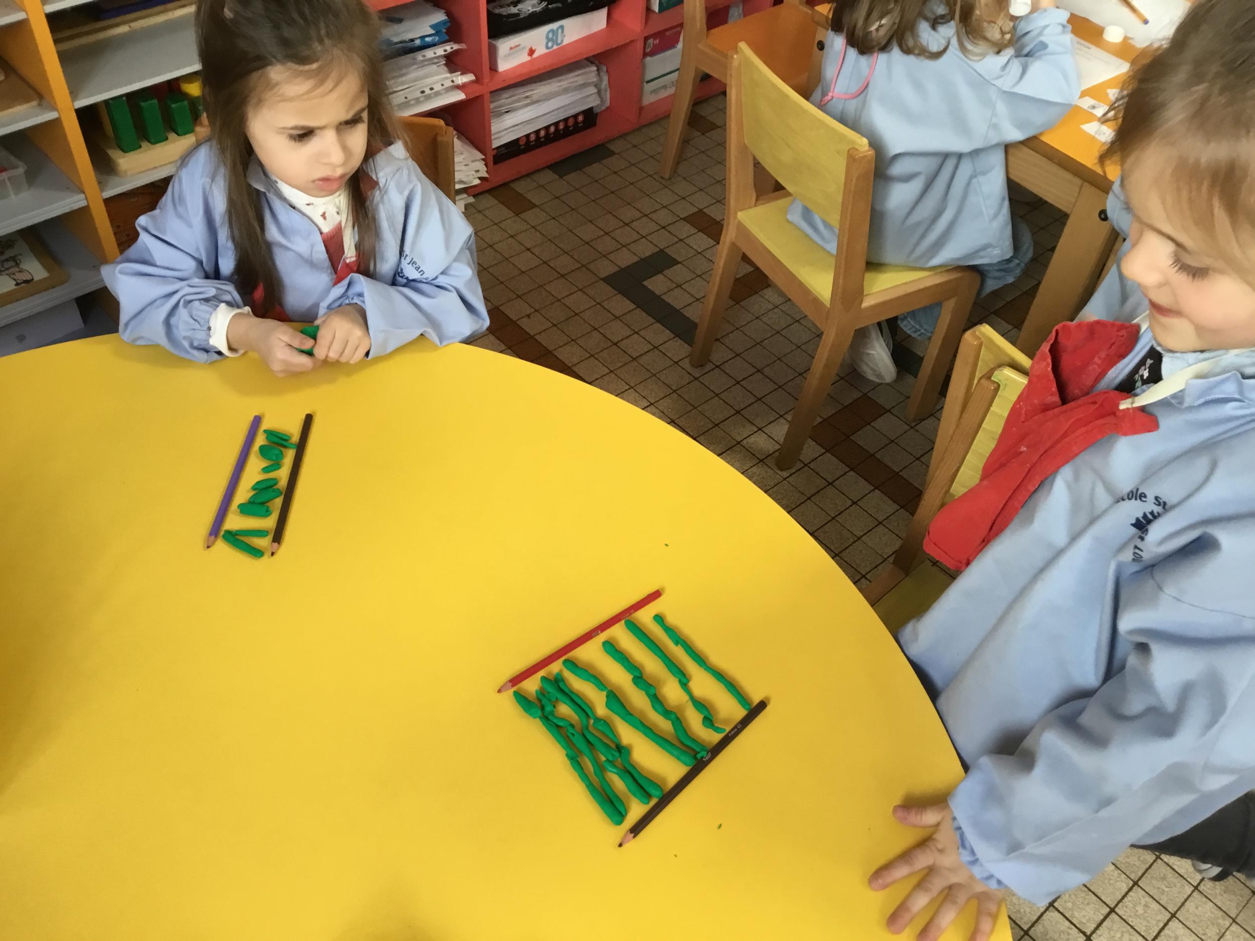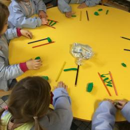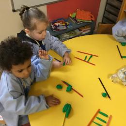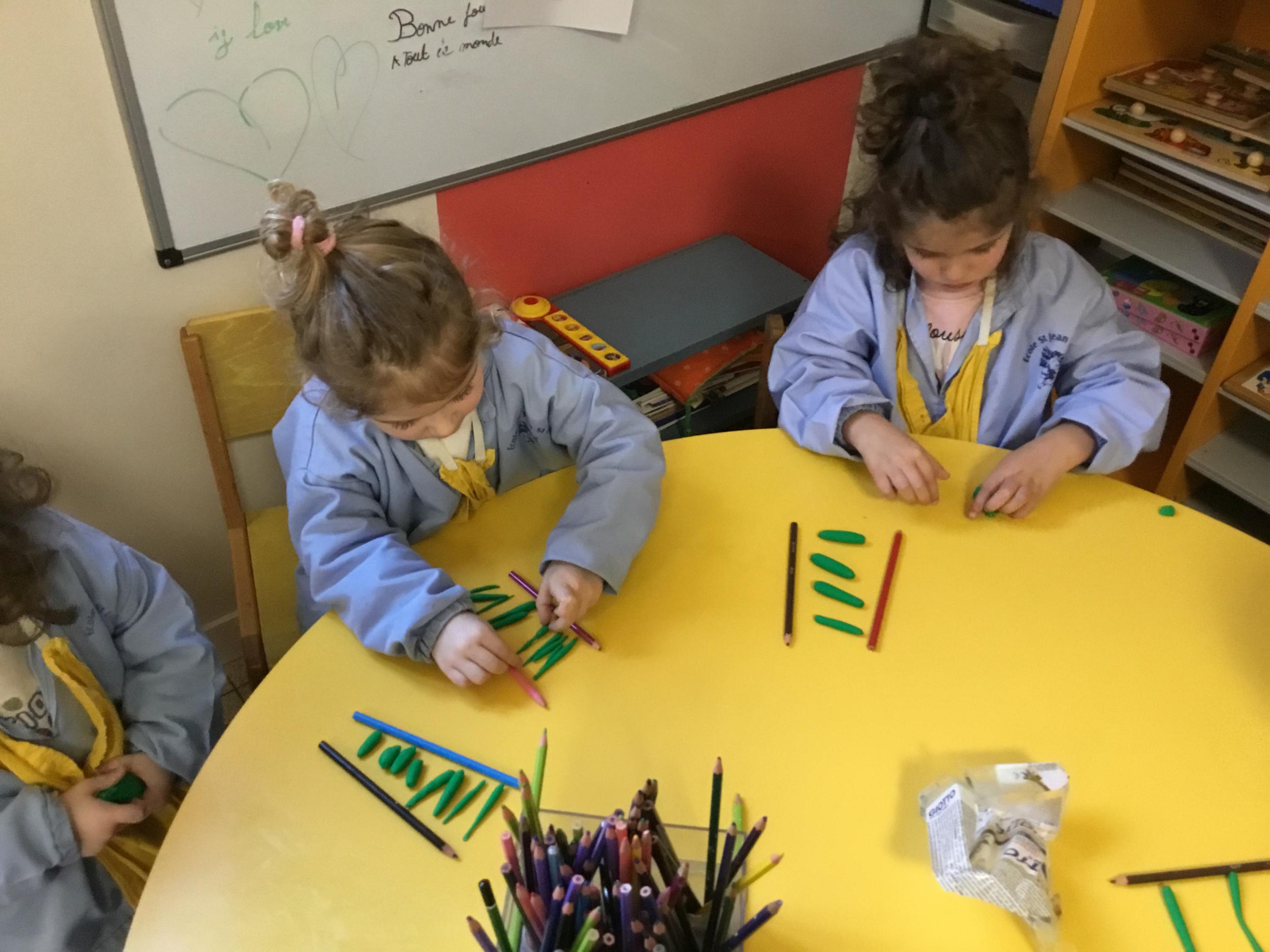 Petite et moyenne section 01/02/2026 Laisser une trace horizontale Coller des bandes papier dans le sens horizontal et tracer un trait horizontal entre chaque bande Modeler des boudins et les ranger de manière horizontale Ranger des objets du plus petit au plus grand Bravo à Victoria et Louna