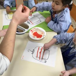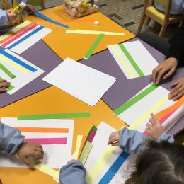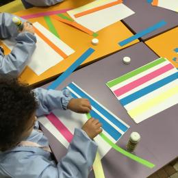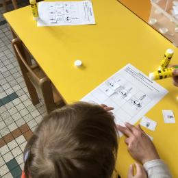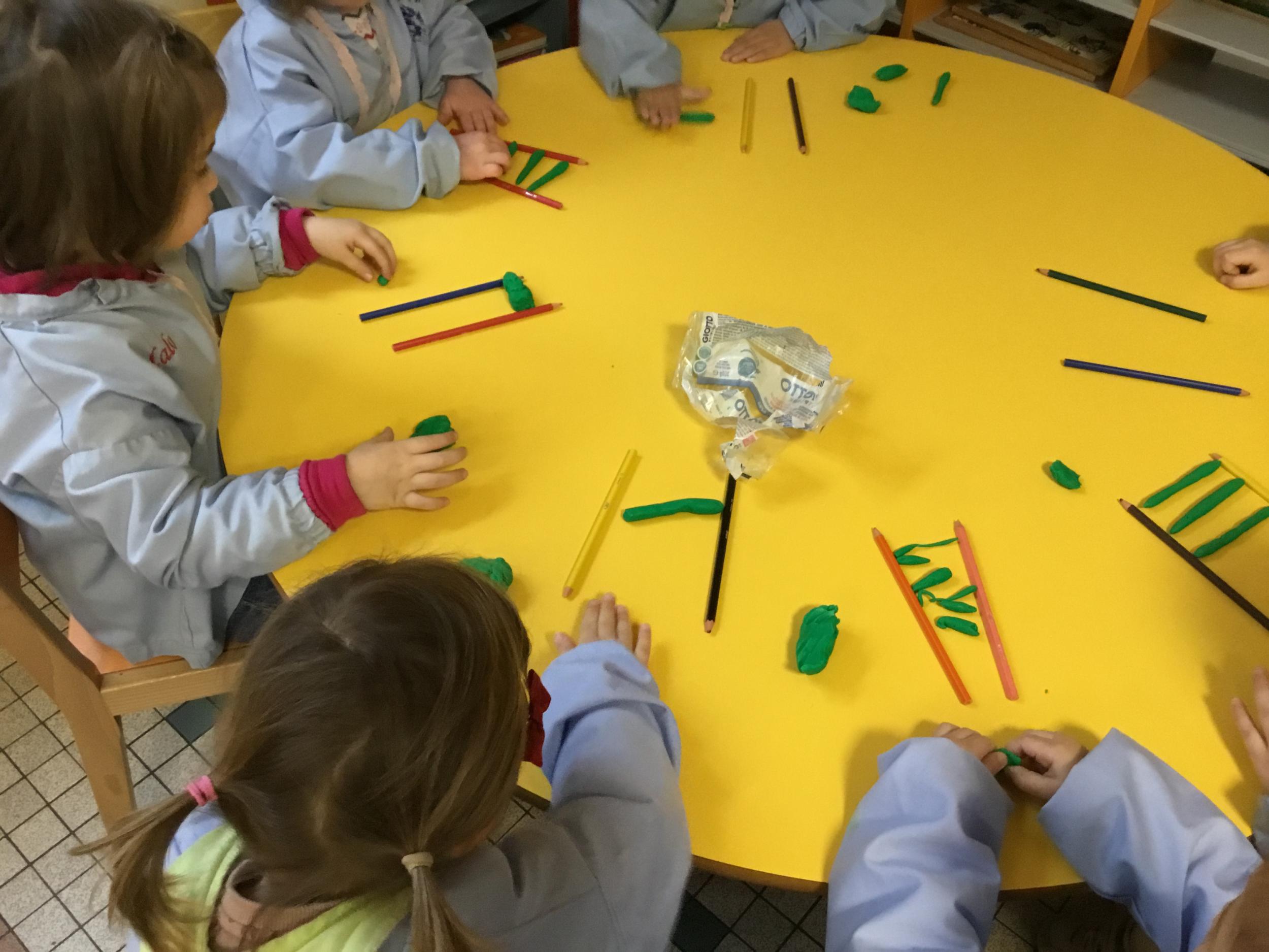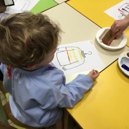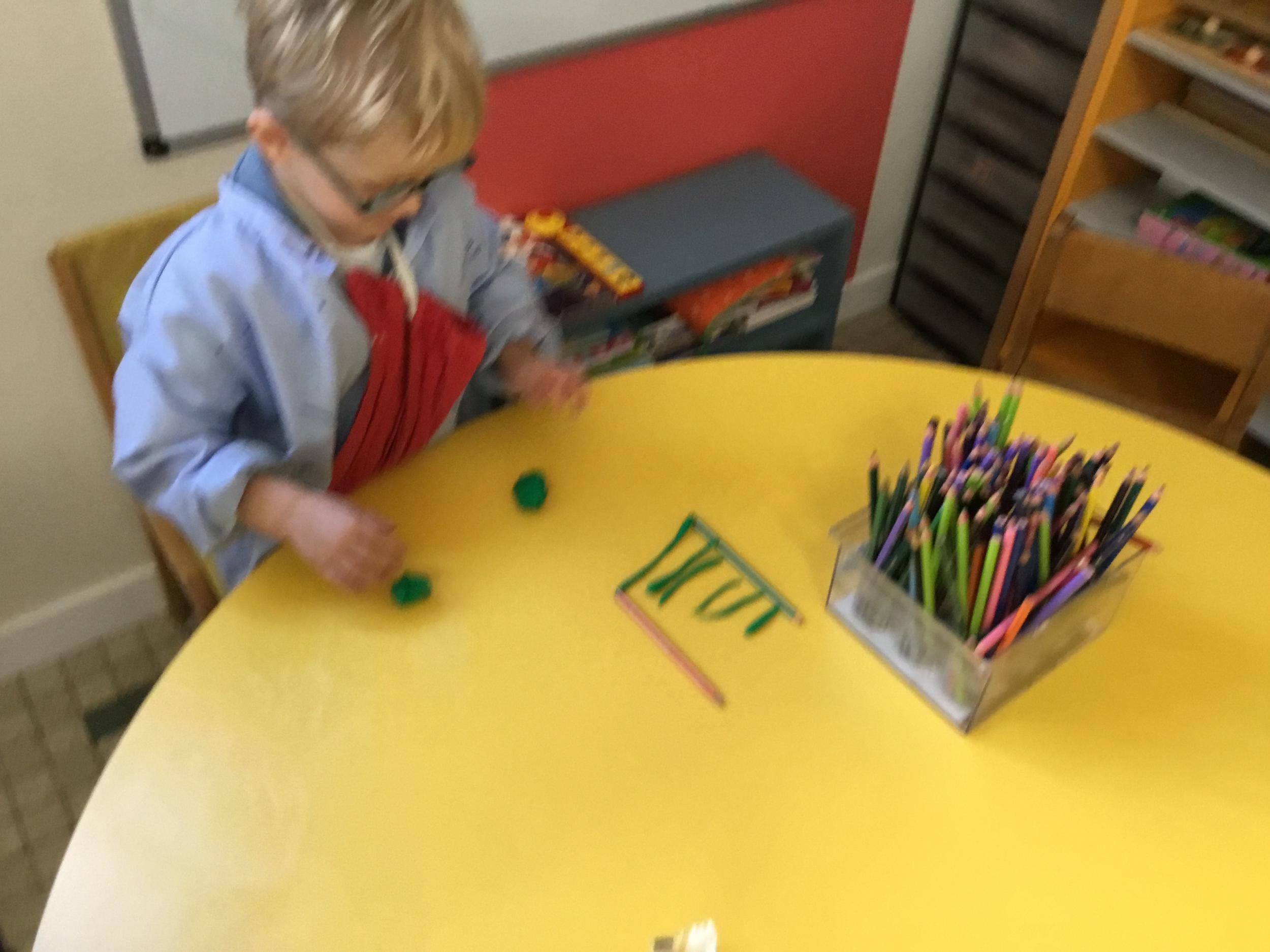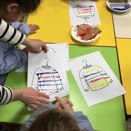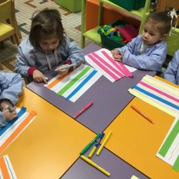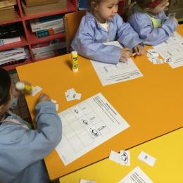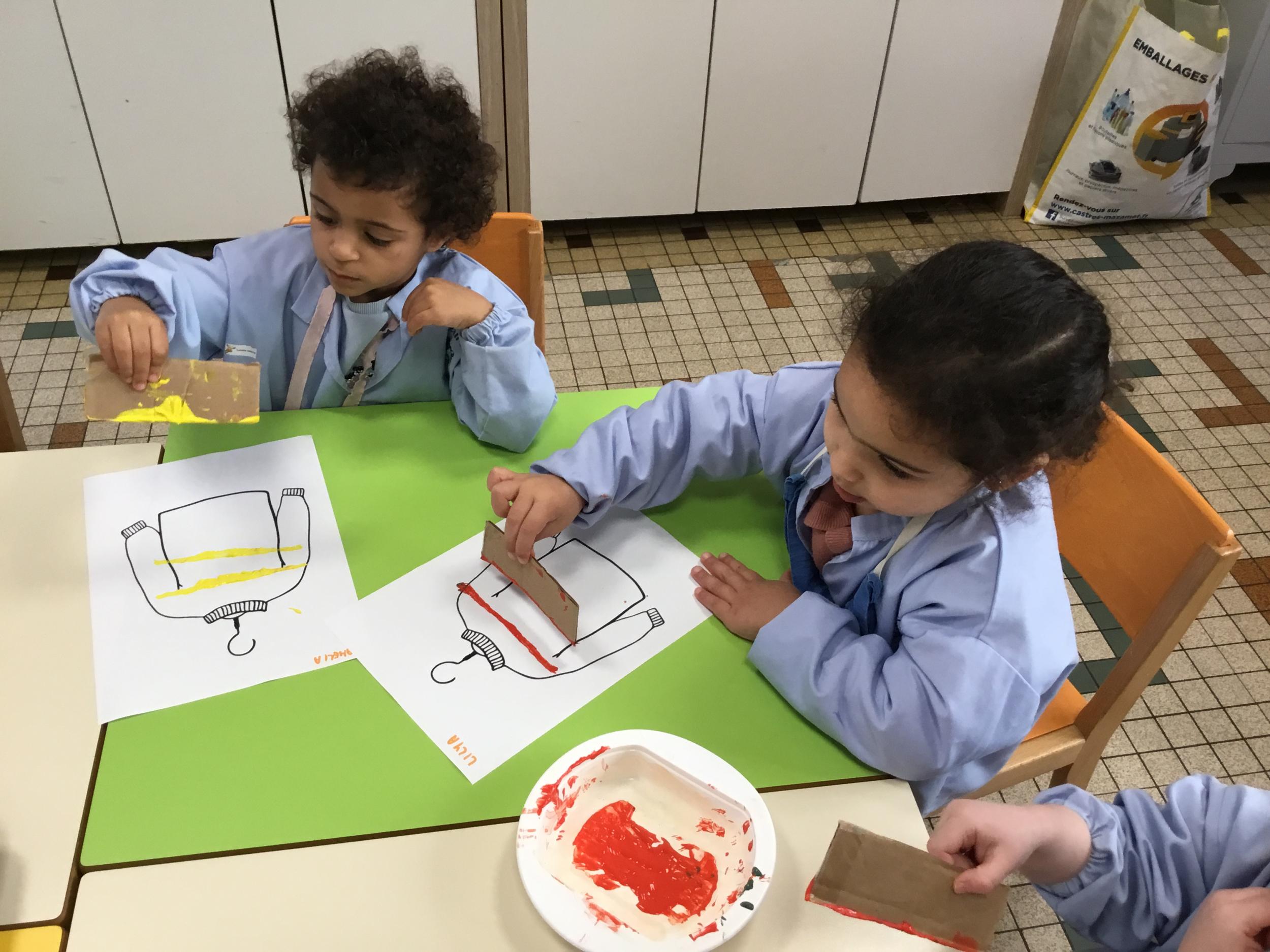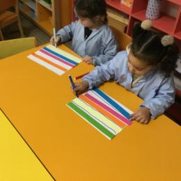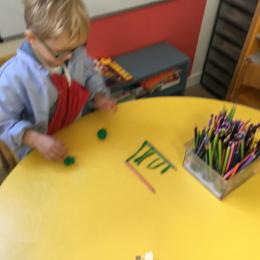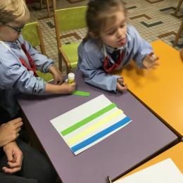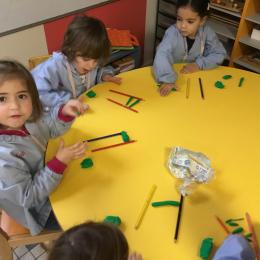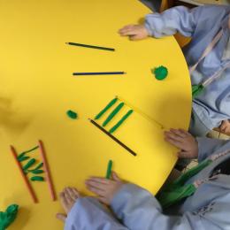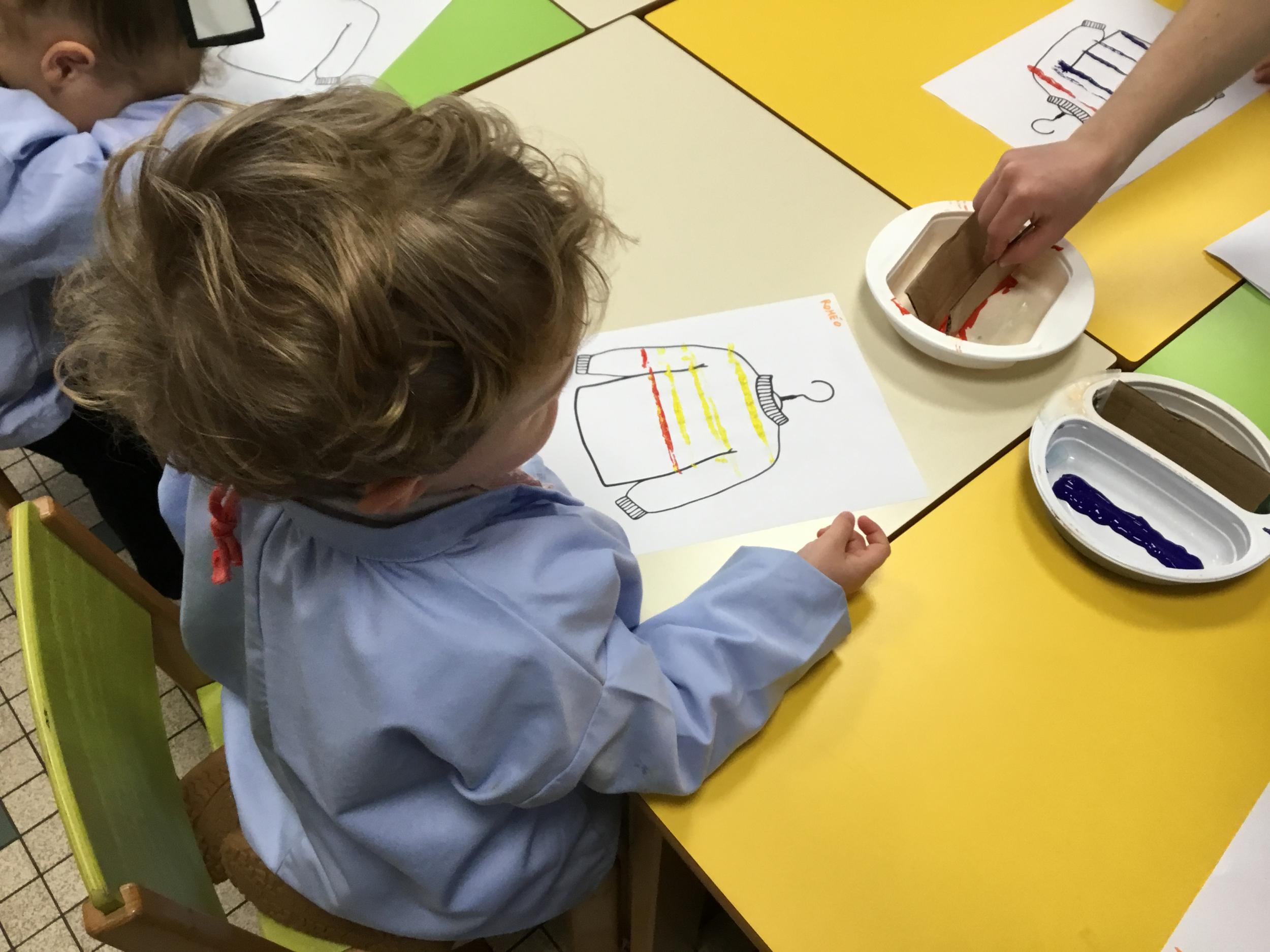 Petite et moyenne section 01/02/2026 Laisser une trace horizontale Coller des bandes papier dans le sens horizontal et tracer un trait horizontal entre chaque bande Modeler des boudins et les ranger de manière horizontale Ranger des objets du plus petit au plus grand Bravo à Victoria et Louna