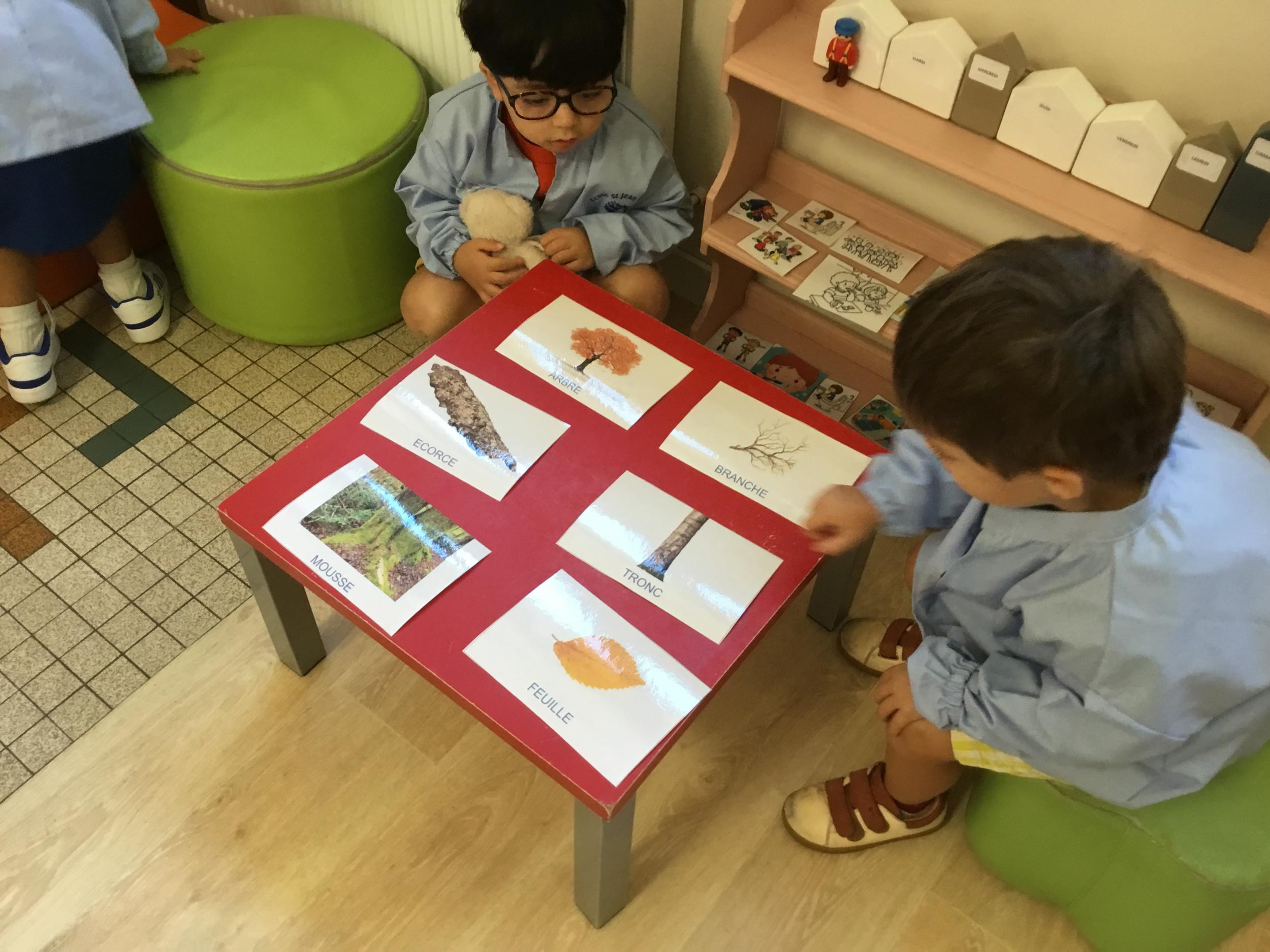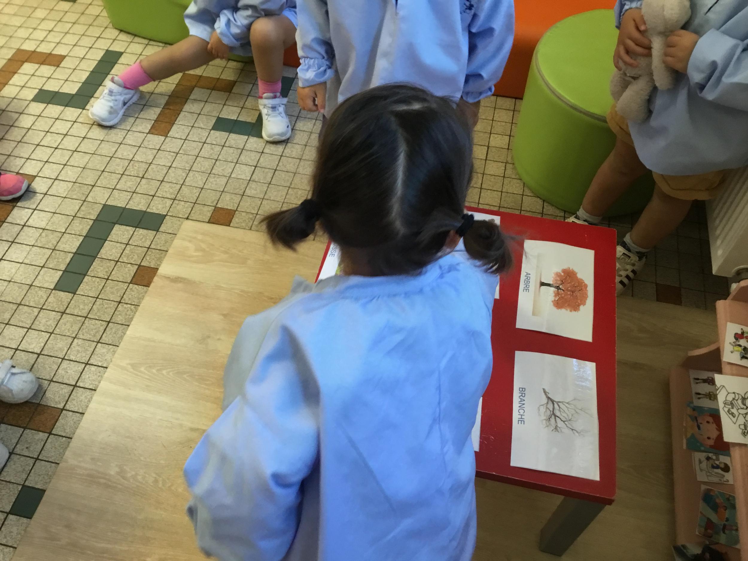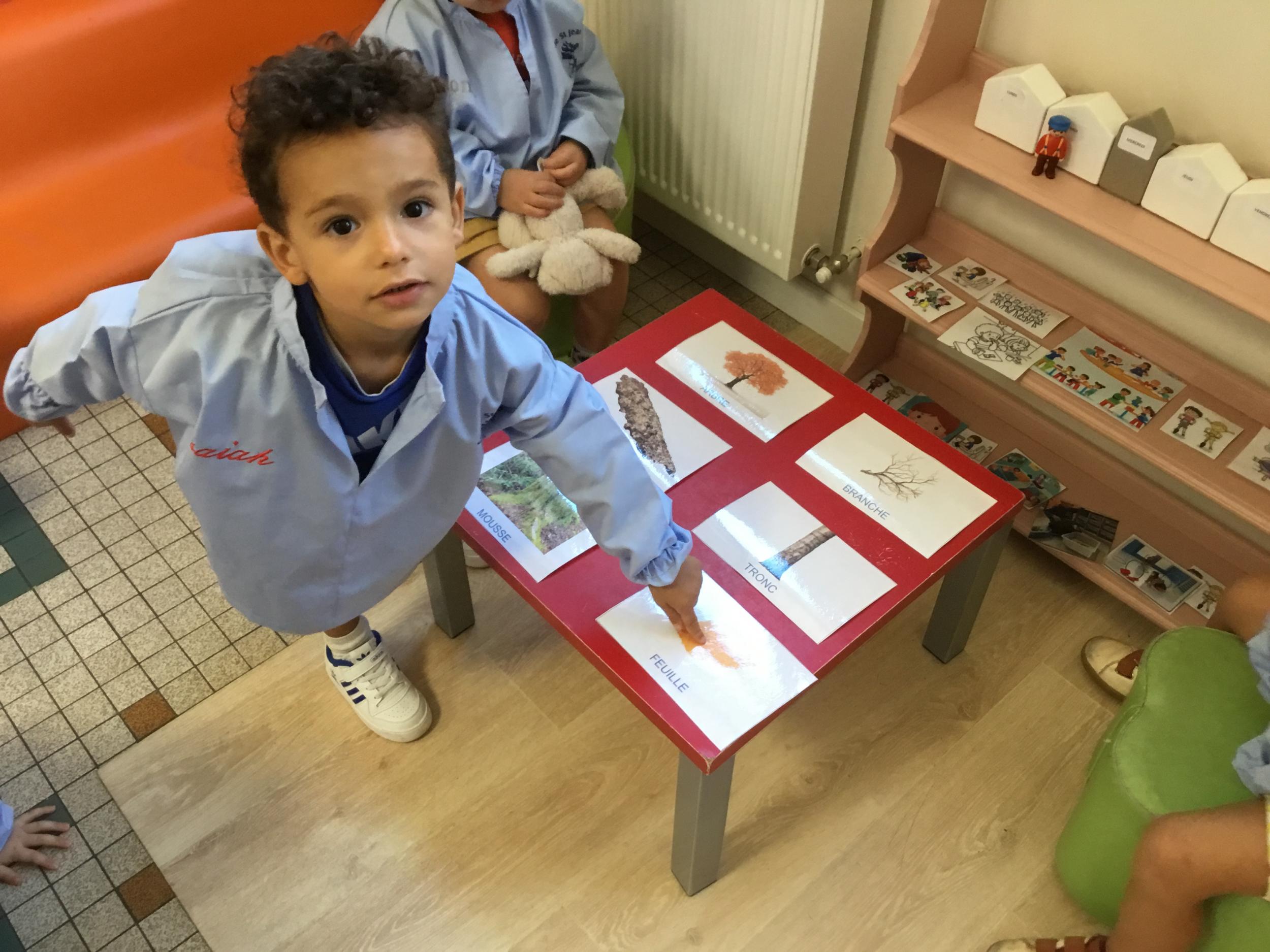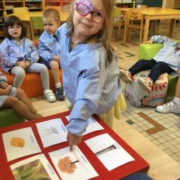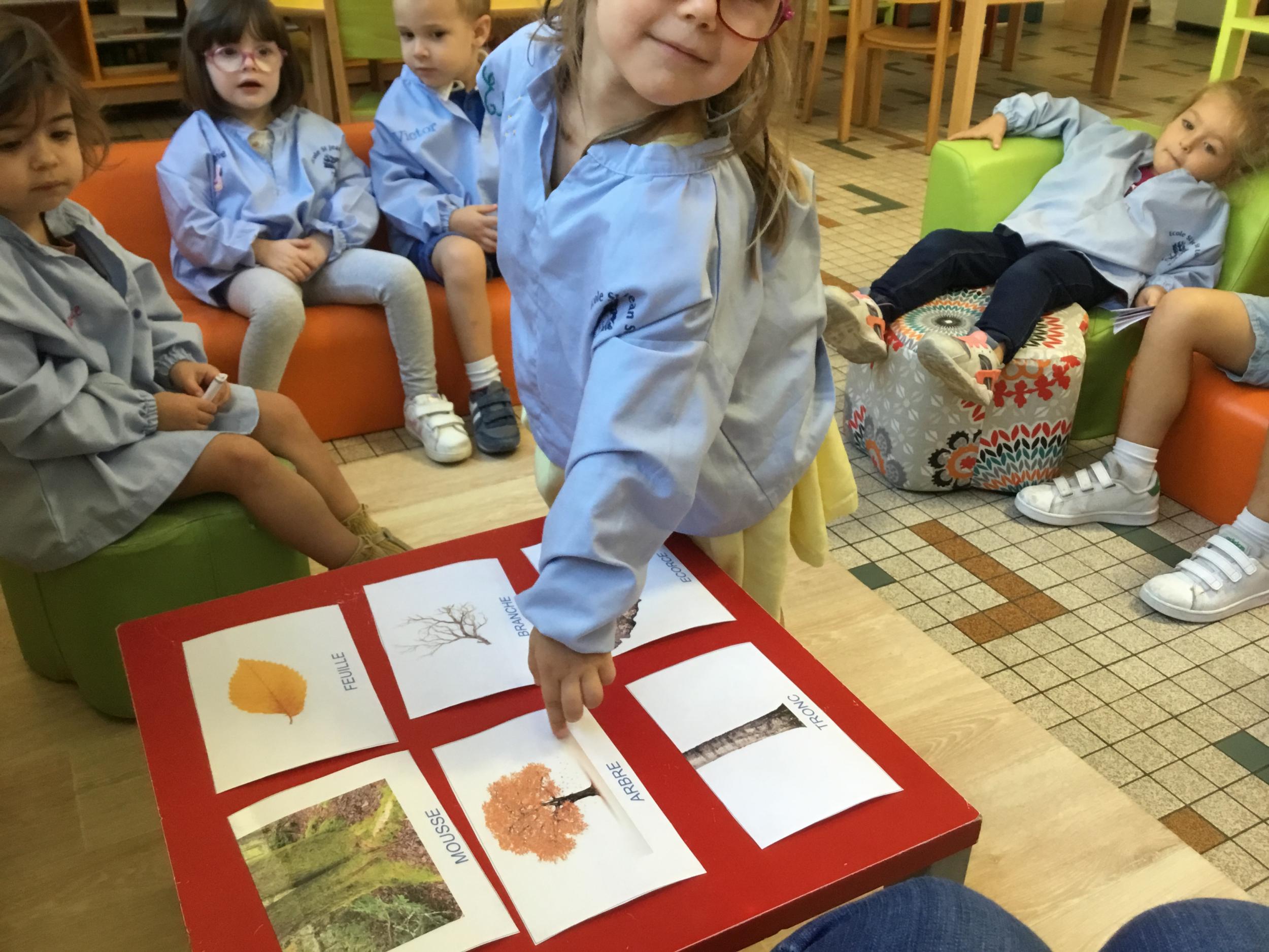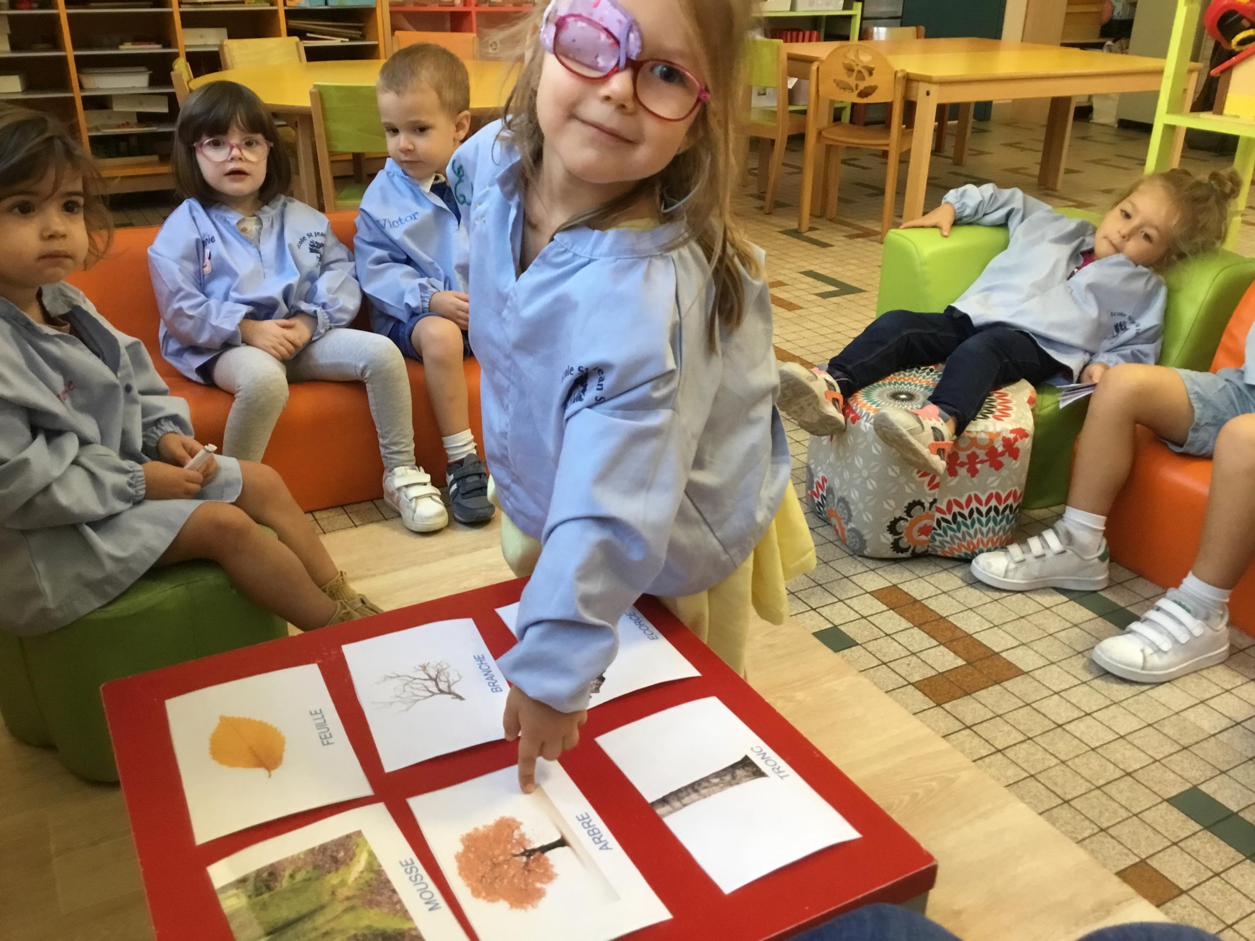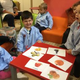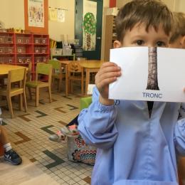 Les élèves de petite section vont travailler le vocabulaire tout au long de l’année sur le thème des saisons. L’automne pour cette période est traité à partir de l’album « Un automne avec Pop ». Puis le travail a été enrichi par un atelier de langage à partir d’images autour de l’arbre et des fruits de saison et par les différentes sorties scolaires: une au verger et dans quelques jours une autre en forêt. Au delà du vocabulaire, voilà une première approche du travail autour de l’exploration du monde et du vivant.