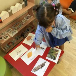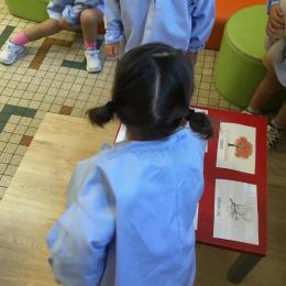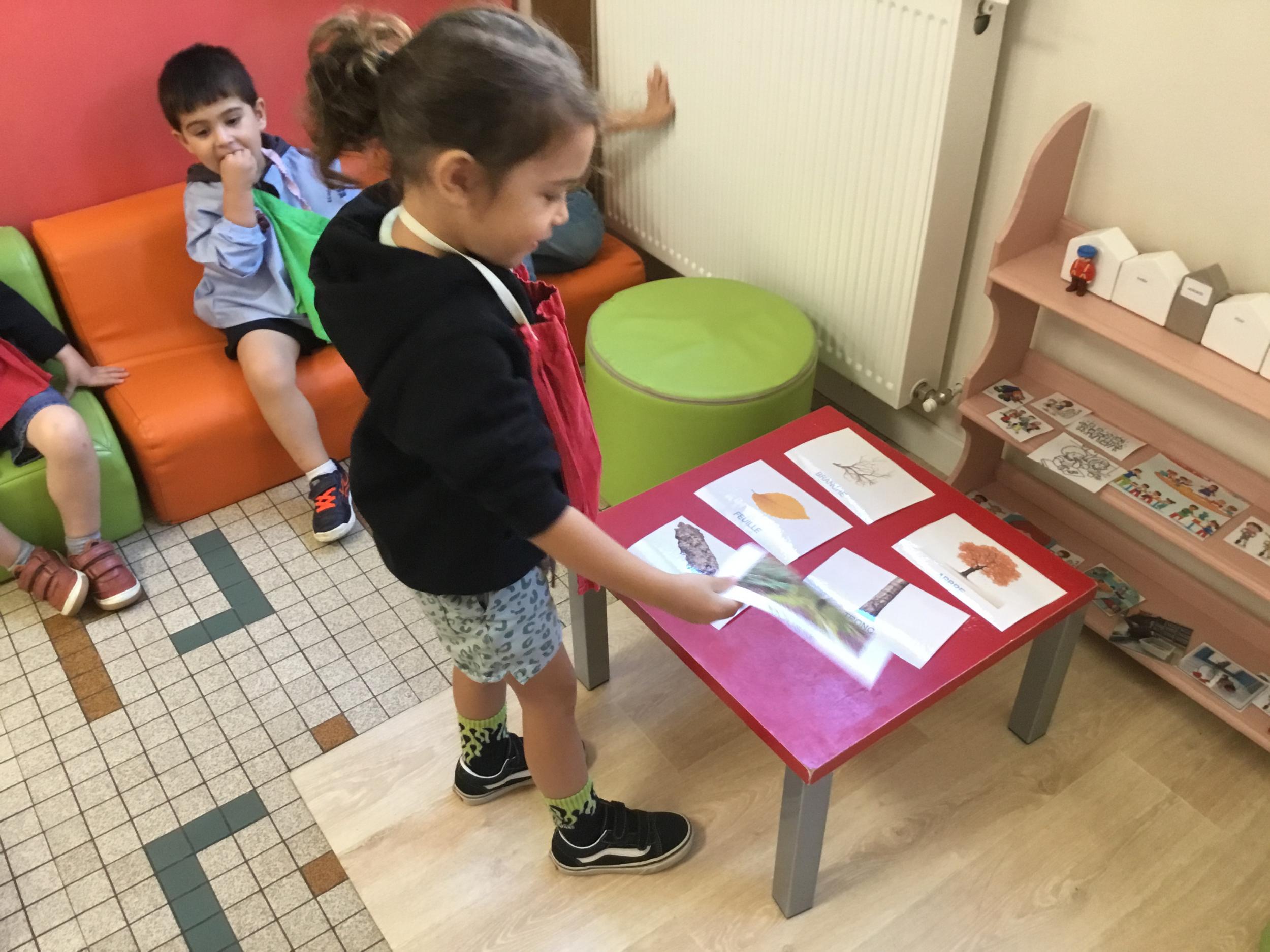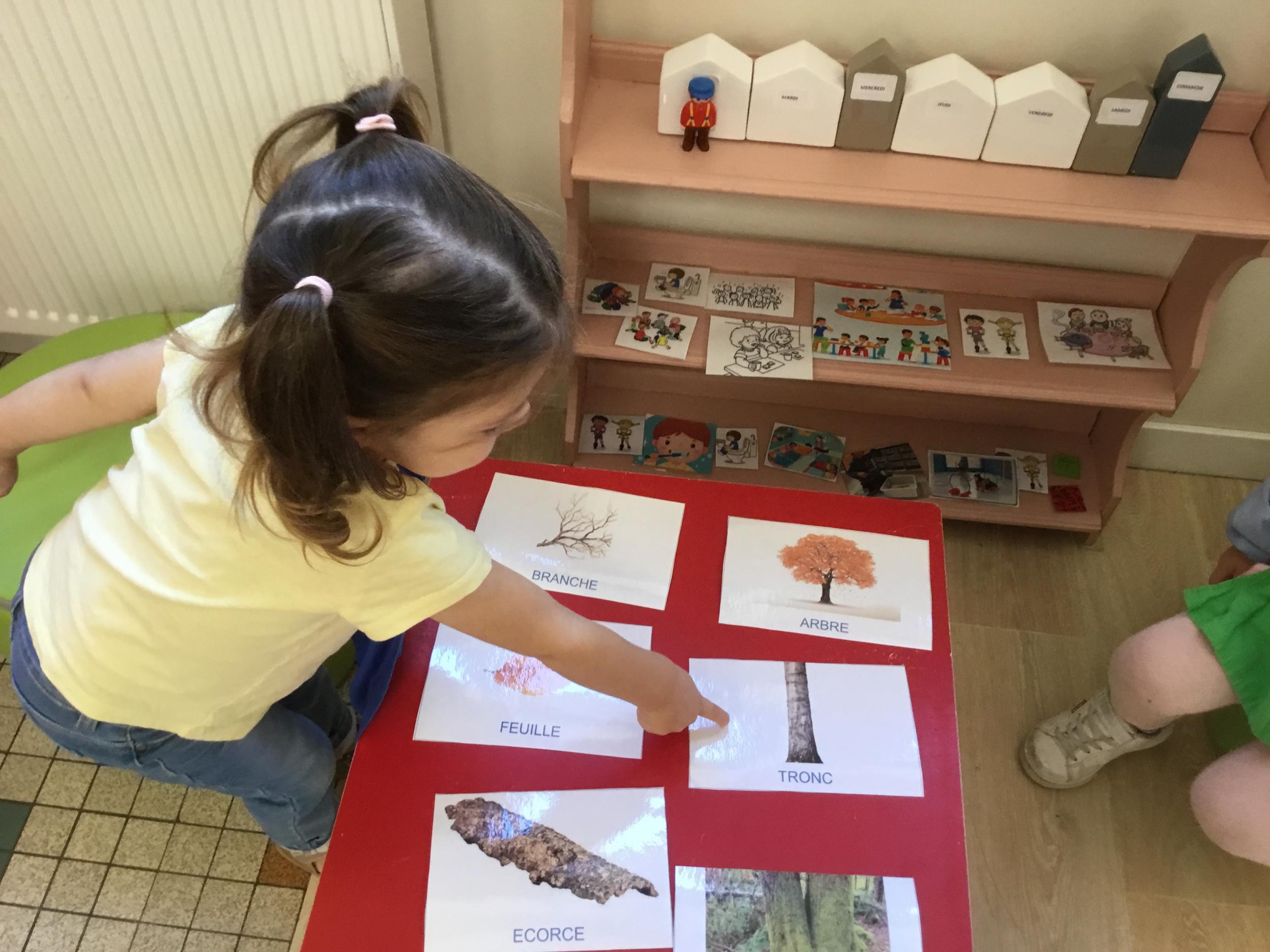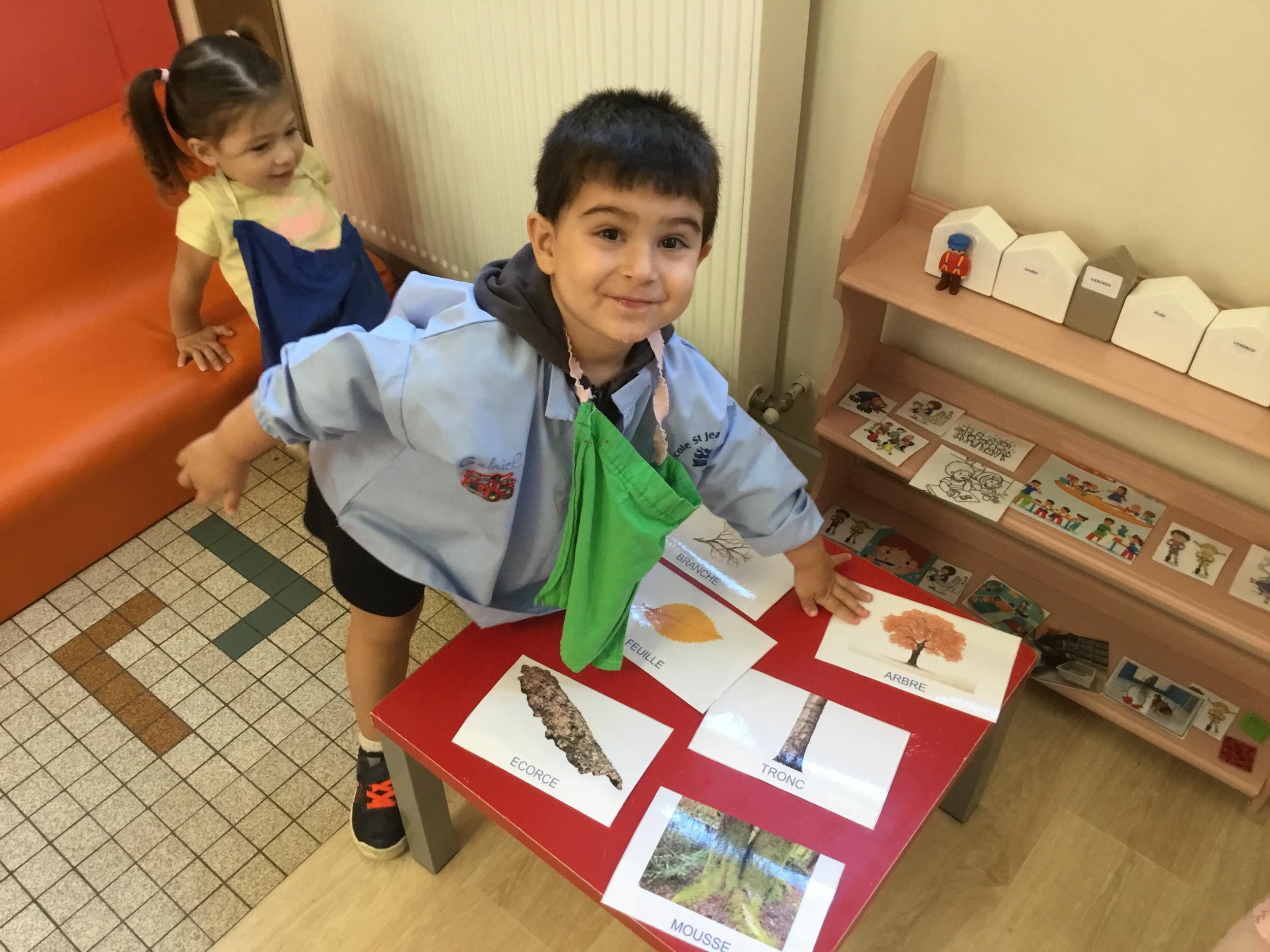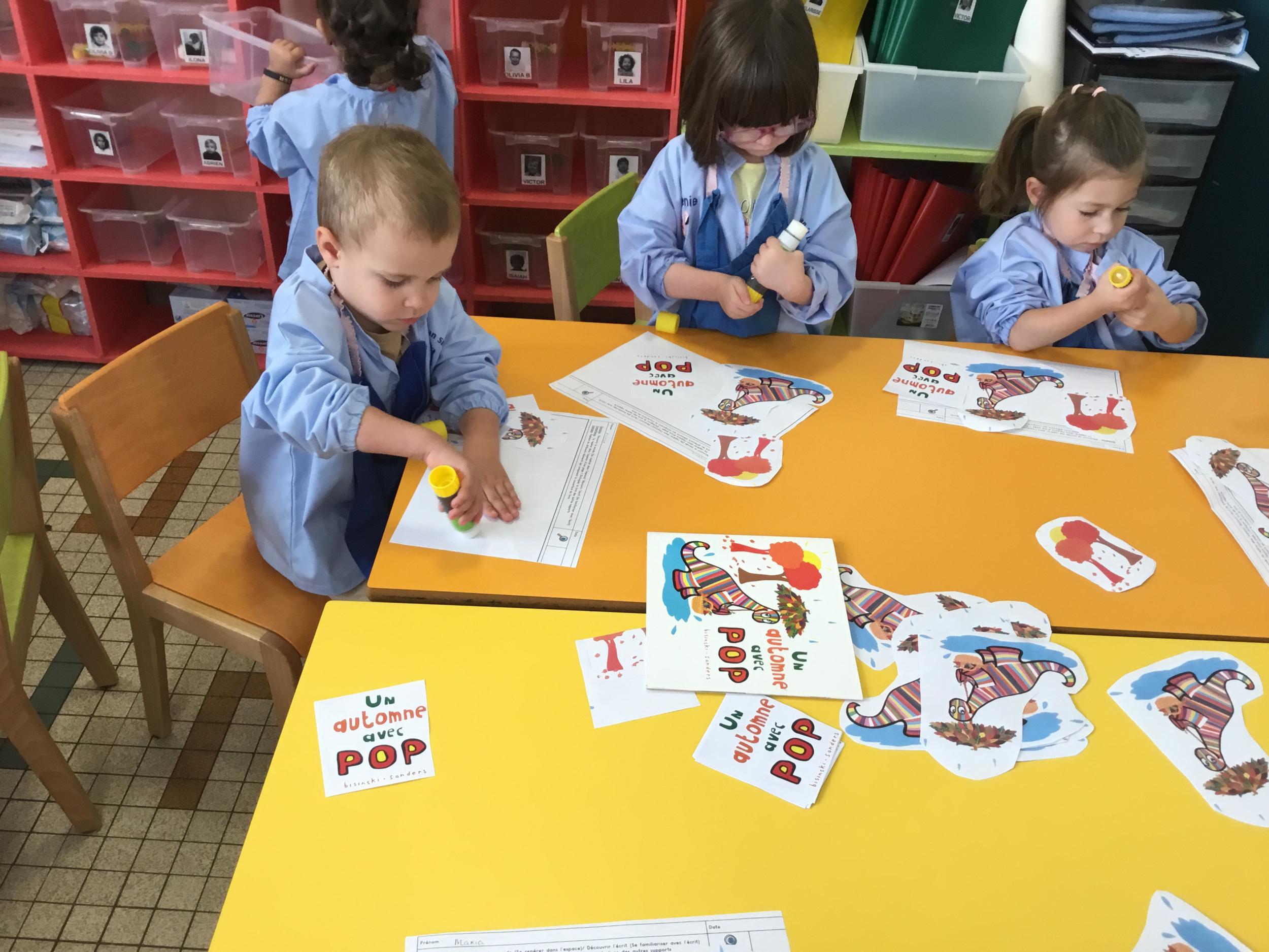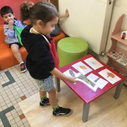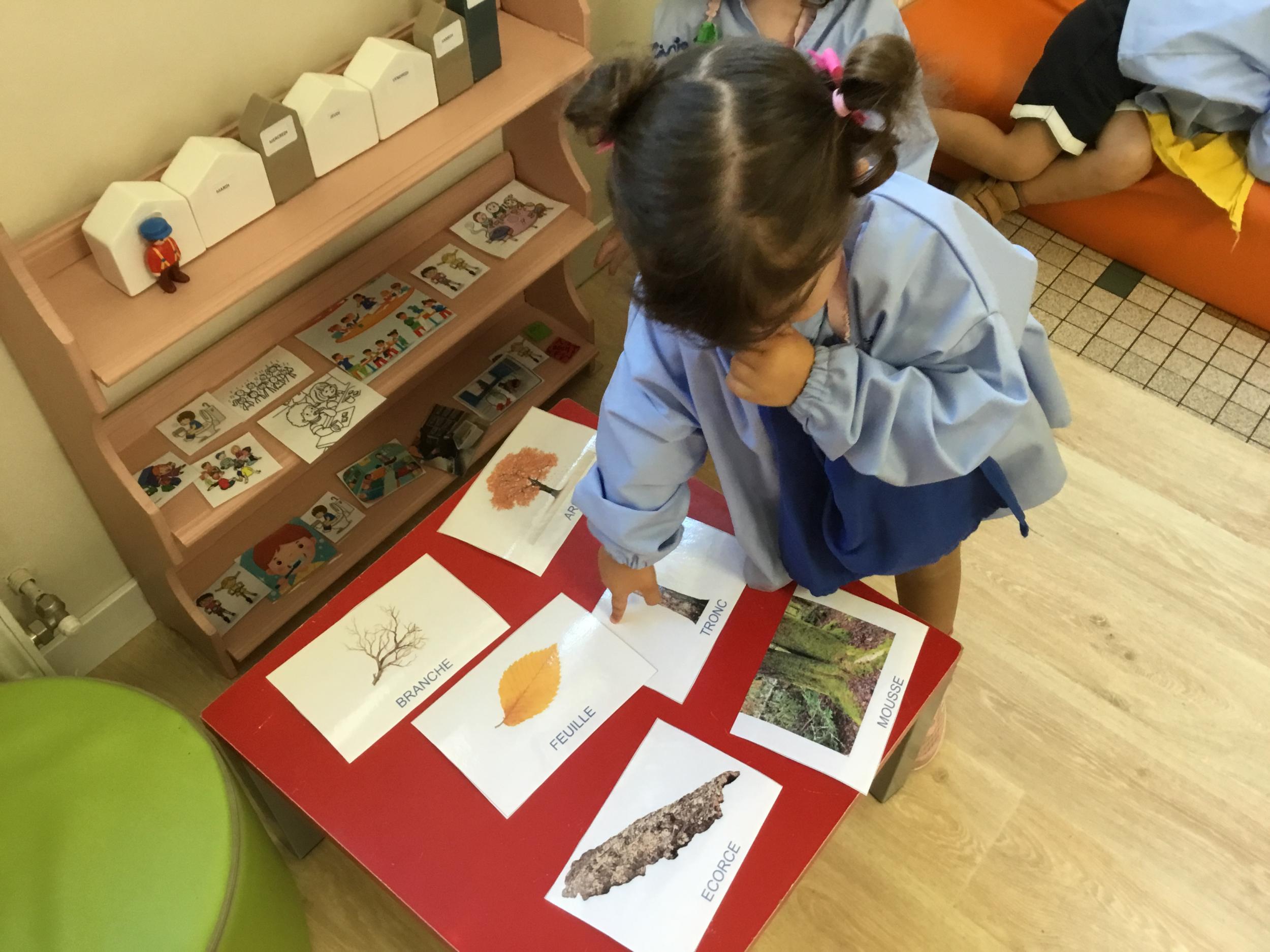 Les élèves de petite section vont travailler le vocabulaire tout au long de l’année sur le thème des saisons. L’automne pour cette période est traité à partir de l’album « Un automne avec Pop ». Puis le travail a été enrichi par un atelier de langage à partir d’images autour de l’arbre et des fruits de saison et par les différentes sorties scolaires: une au verger et dans quelques jours une autre en forêt. Au delà du vocabulaire, voilà une première approche du travail autour de l’exploration du monde et du vivant.