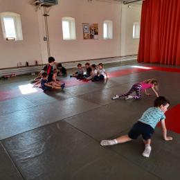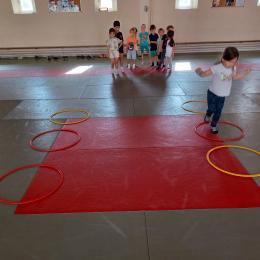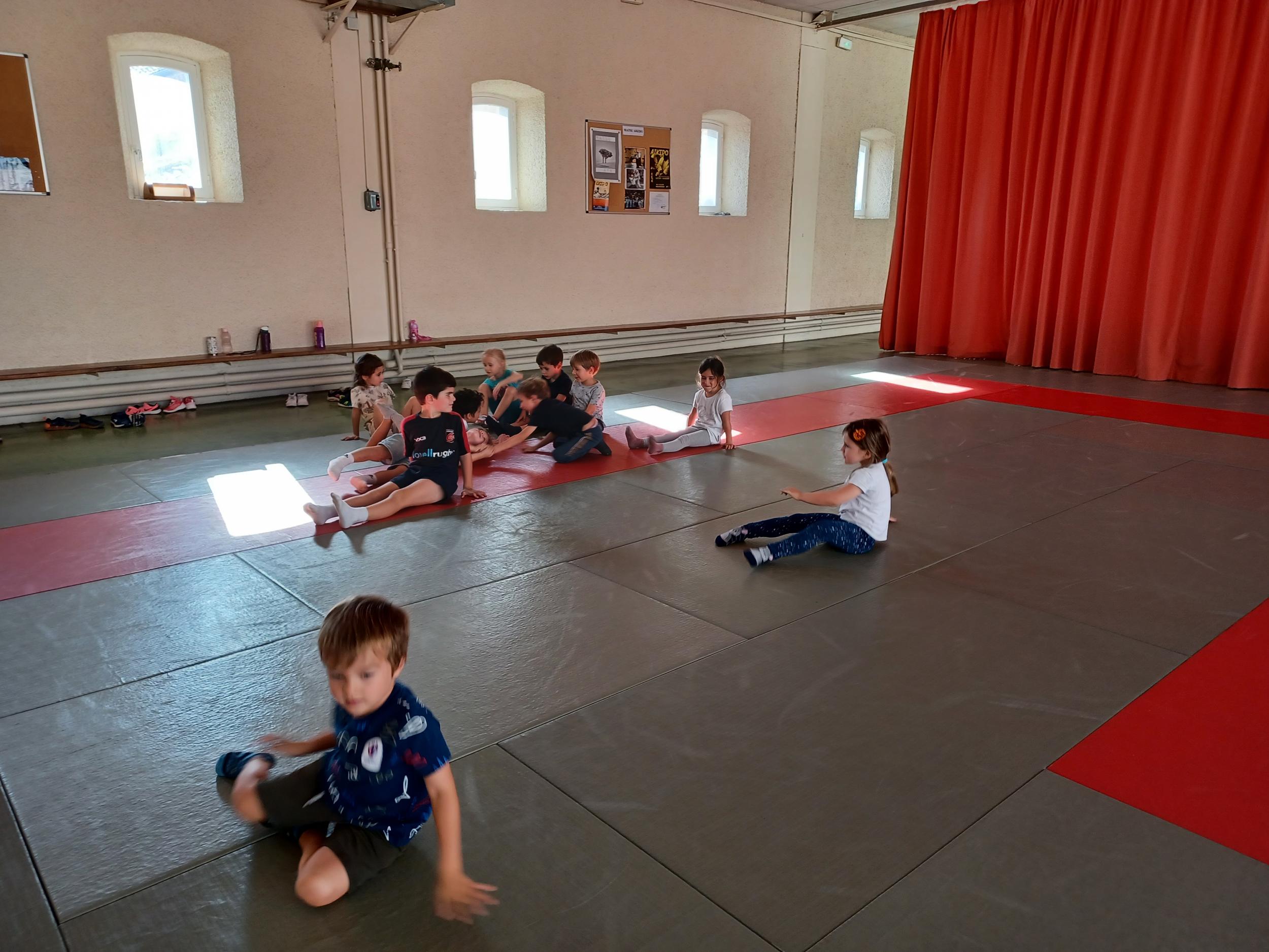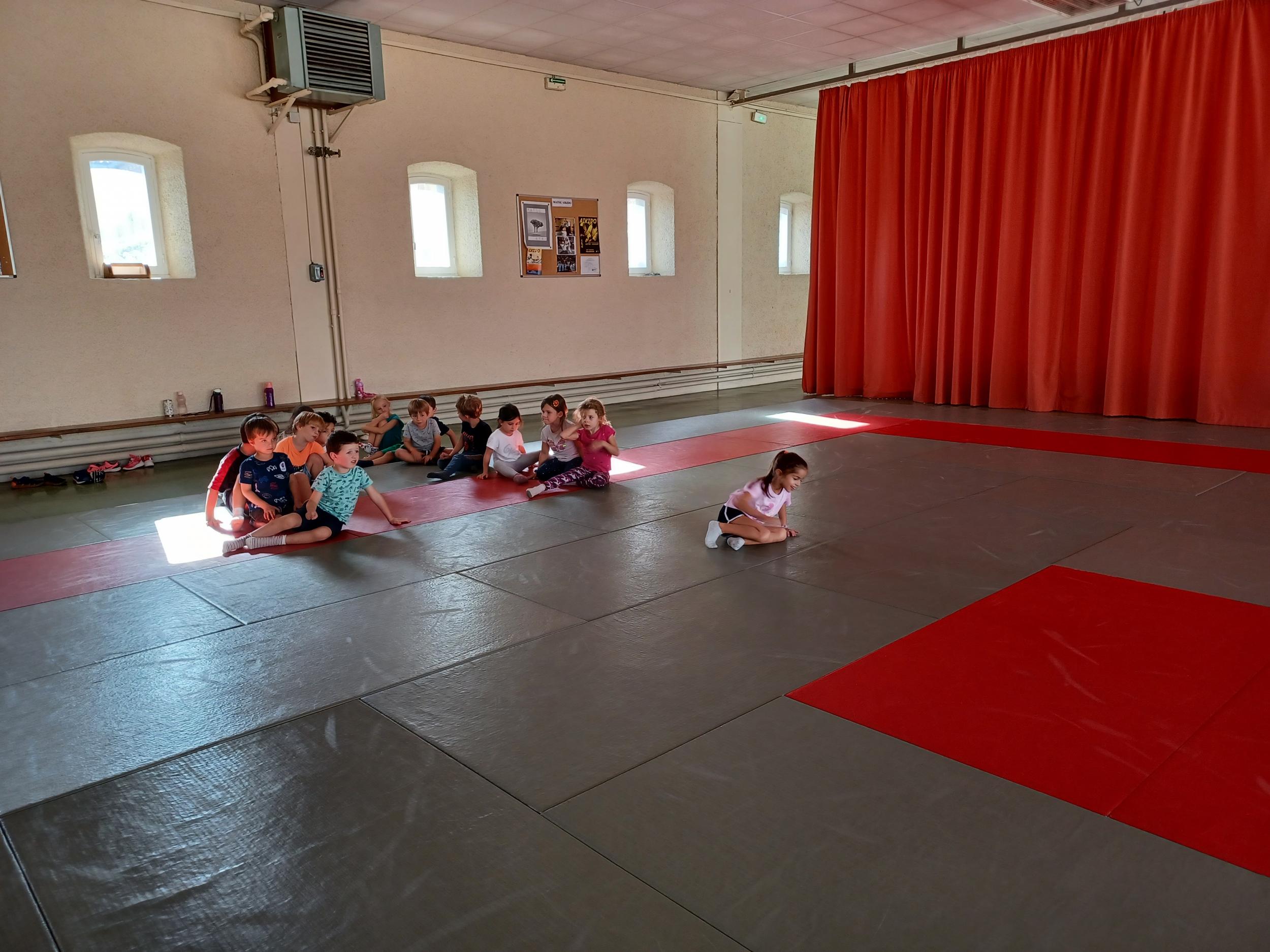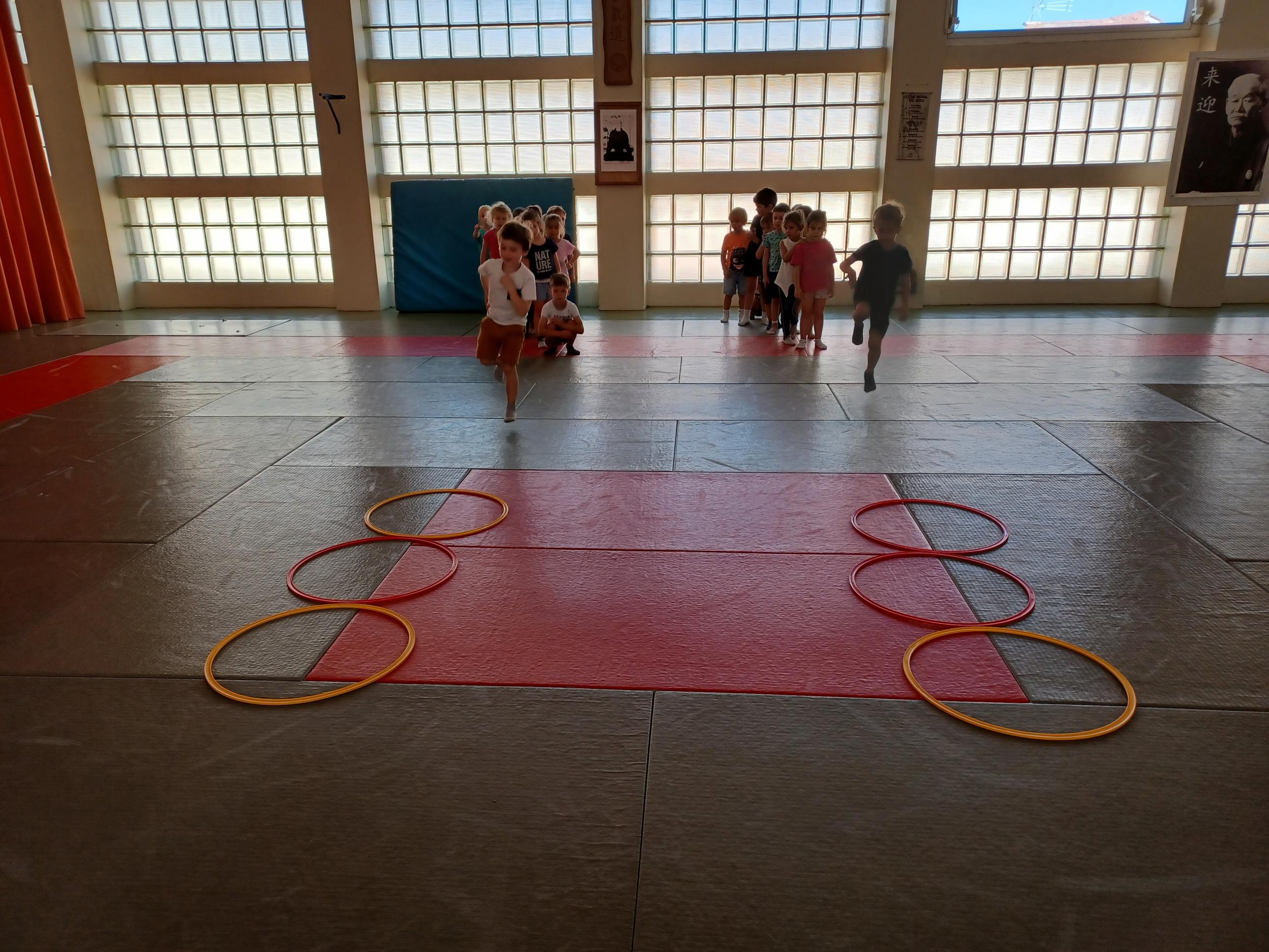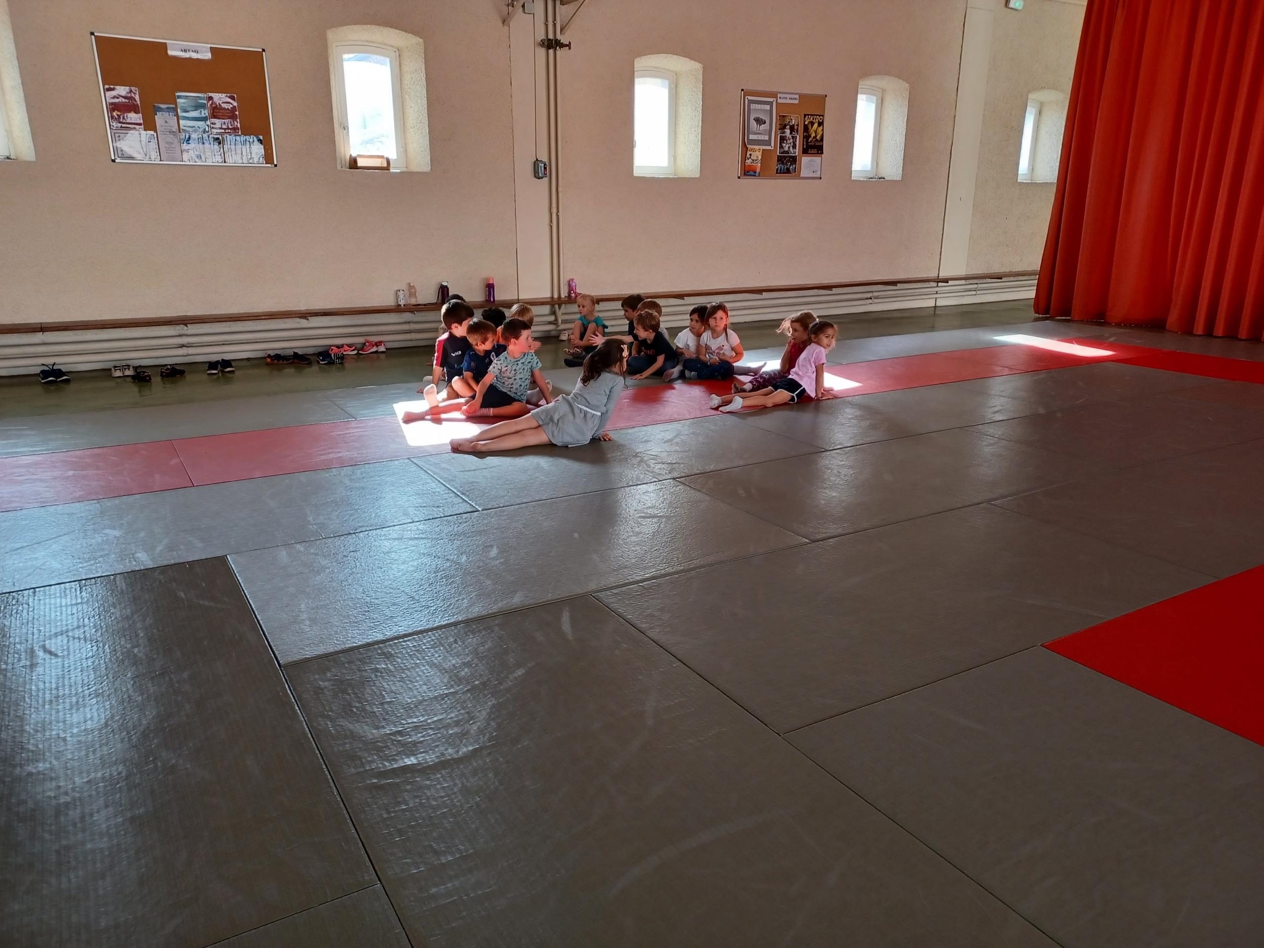 Tous les mardis après-midi, les grandes sections partent à la salle de sport. Nous avons travaillé, lors de ces premiers mois ,différentes façons de se déplacer, sur 3 niveaux : allongé, assis , et debout.