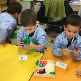 27/11/2020 Nous avons travaillé à reconnaître et nommer des petites quantités représentées par des points sur un dé où les doigts de la main. Nous en avons profité pour réviser les couleurs Nous avons également travaillé les algorithmes et avec Lightbot les élèves en ont profité pour réviser les couleurs en anglais