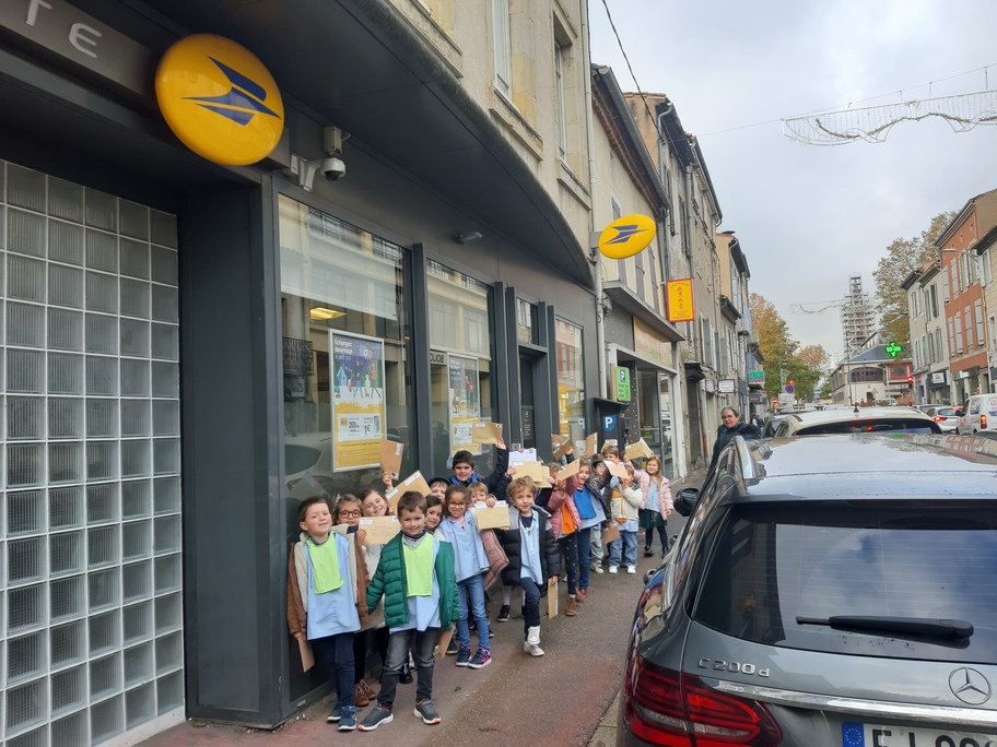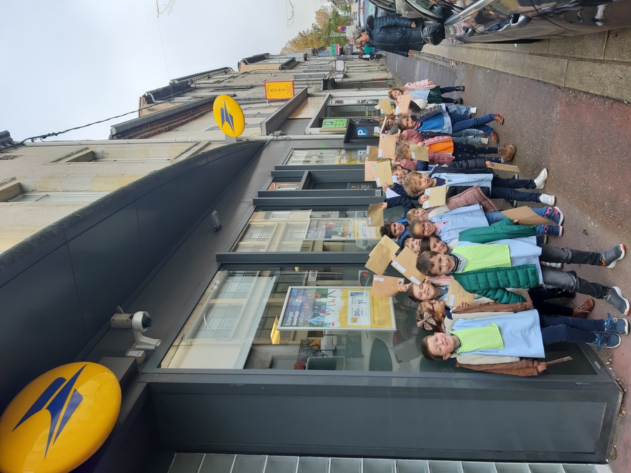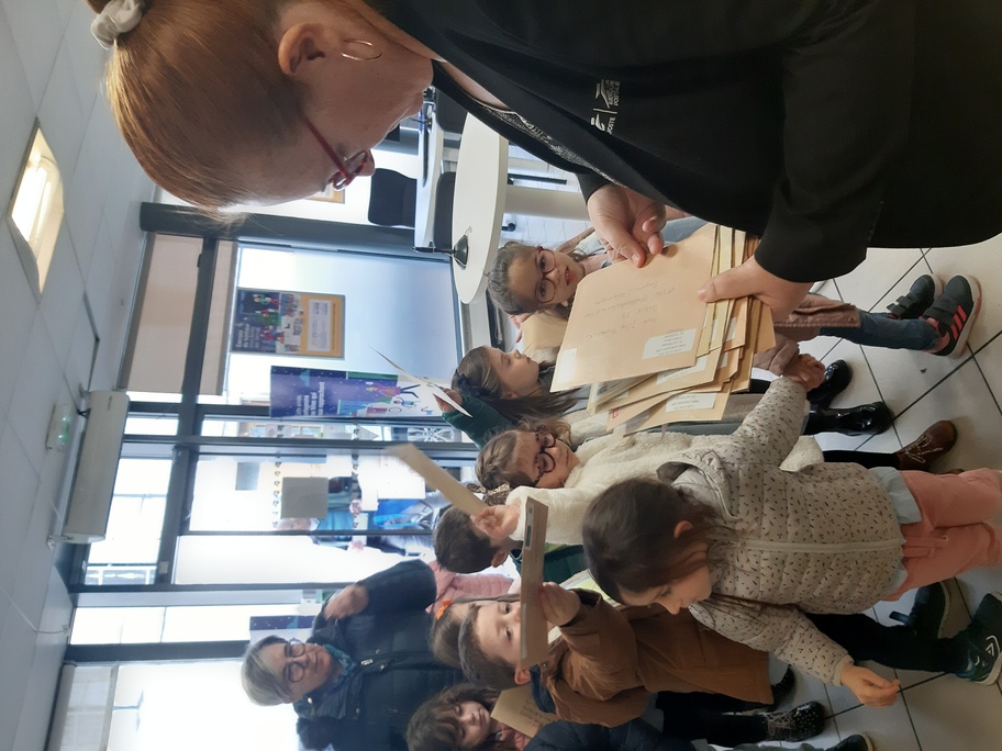 Nous avons récupéré de nombreuses adresses à travers le monde entier pour envoyer nos lettres de loup aplati et demander aux gens de le prendre en photo dans le pays où ils le reçoivent. Les élèves étaient fiers d'aller tous ensemble à la poste pour envoyer toutes ces lettres.