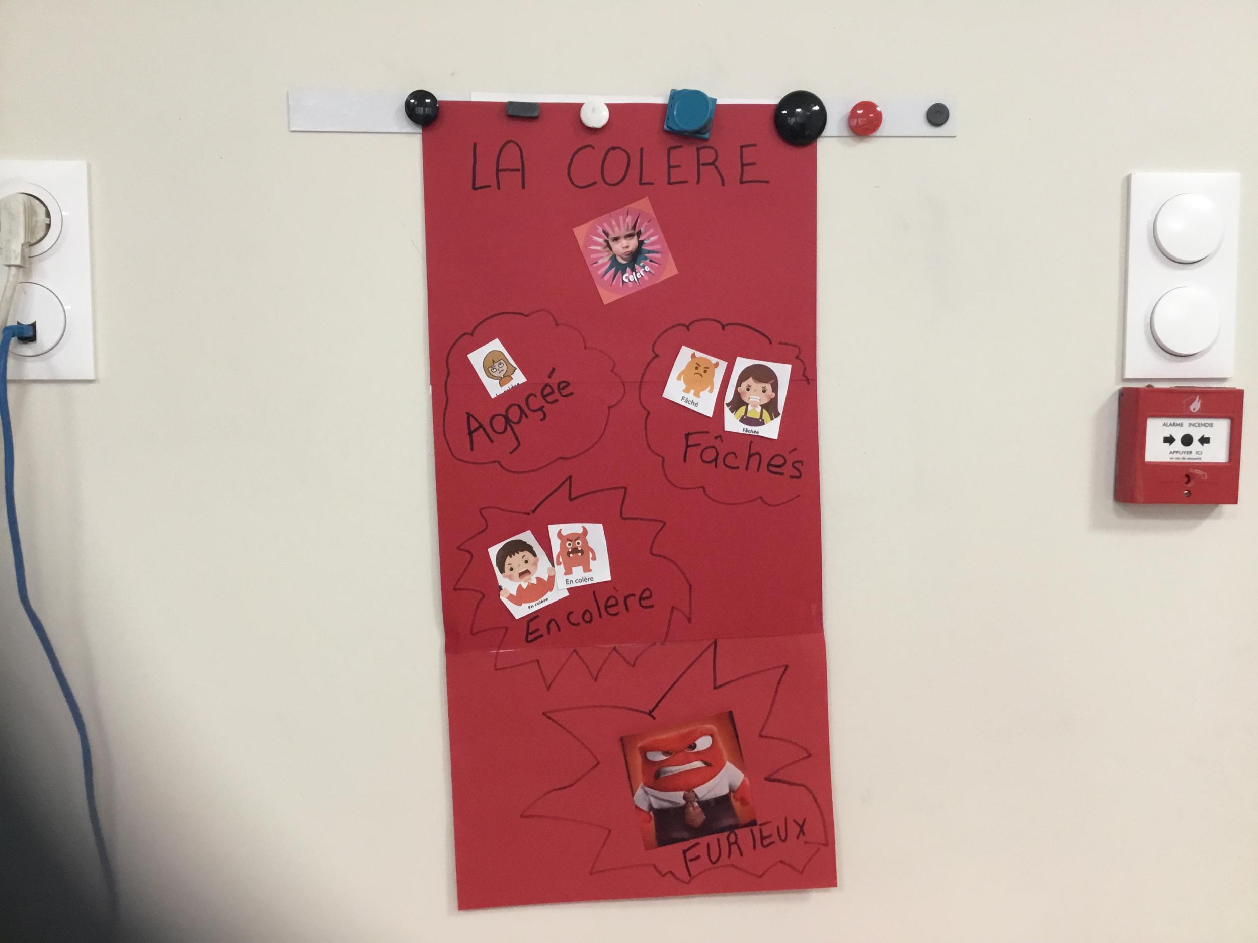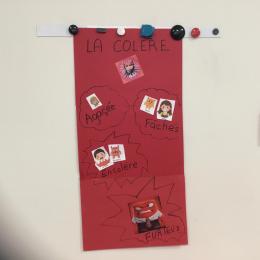 A l’atelier de Gigi et Loulou , nous avons travaillé les émotions et le vocabulaire des émotions. Puis nous avons collé des images qui représentent des situations de calme, de tranquillité ou de colère…