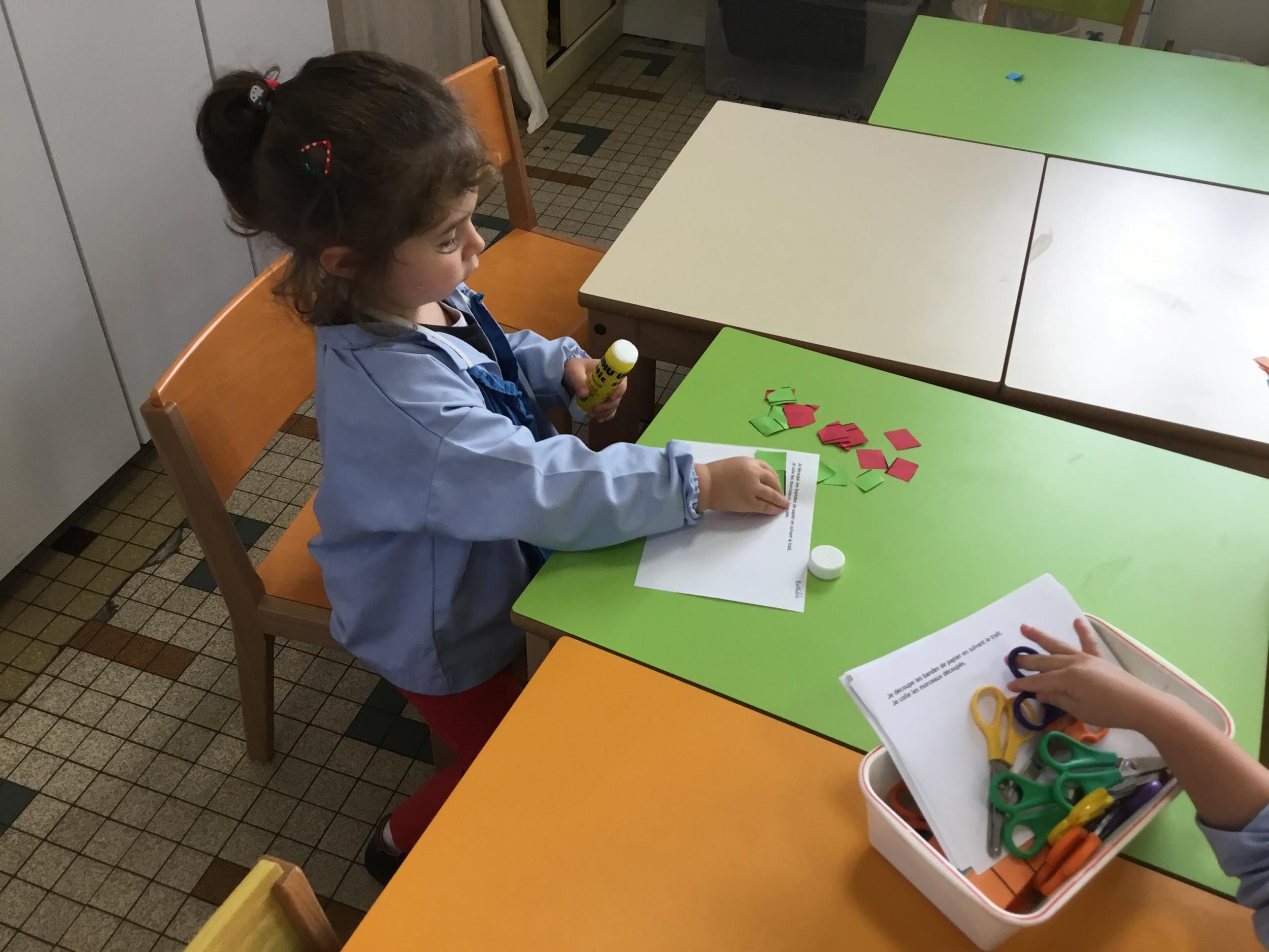 Atelier découpage: découper des bandes de papier en suivant le trait