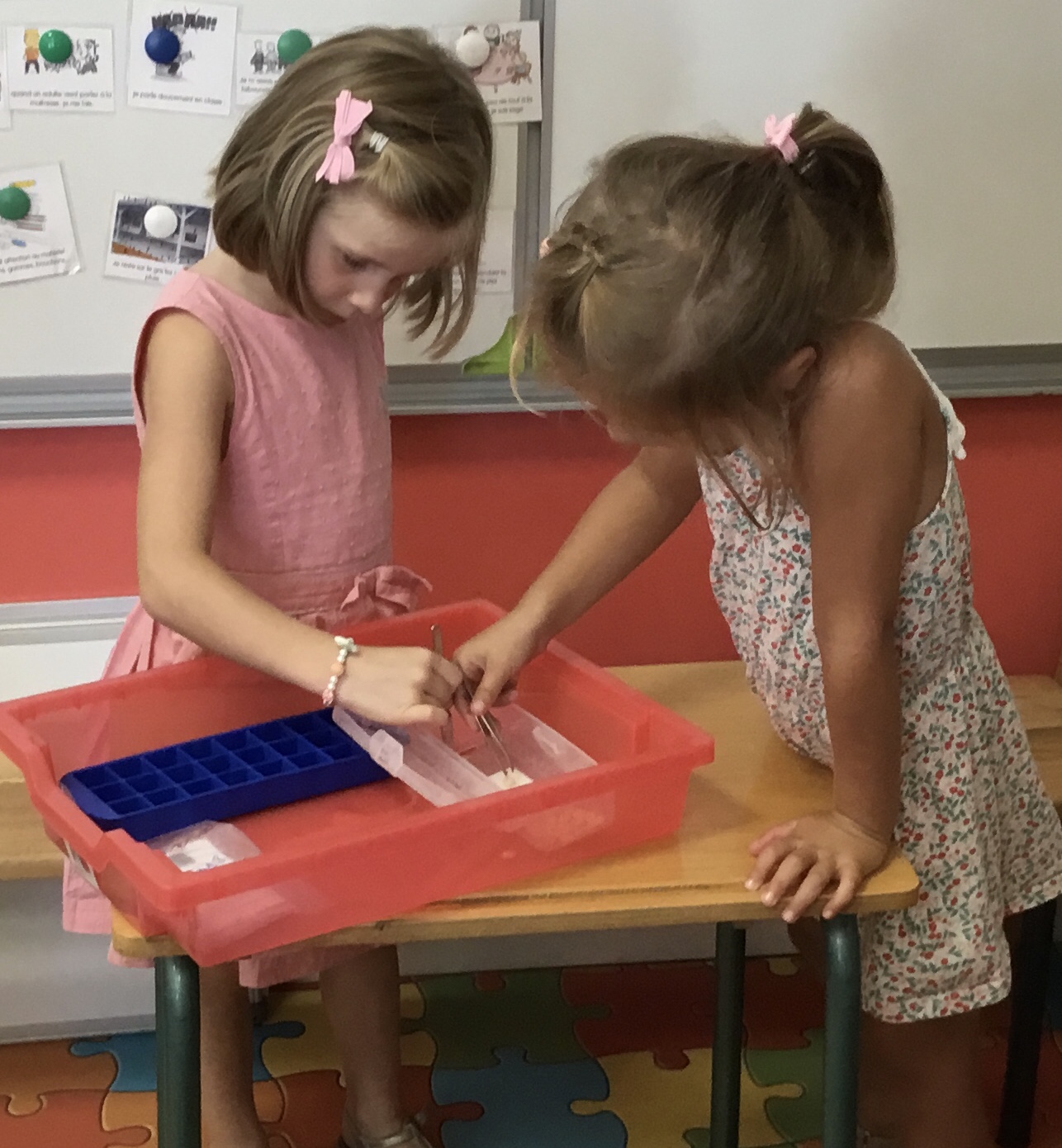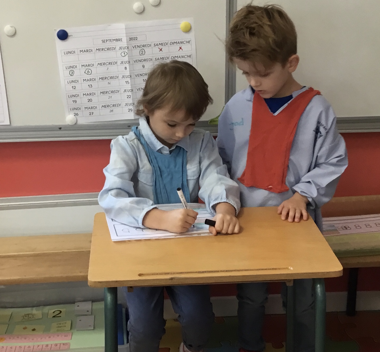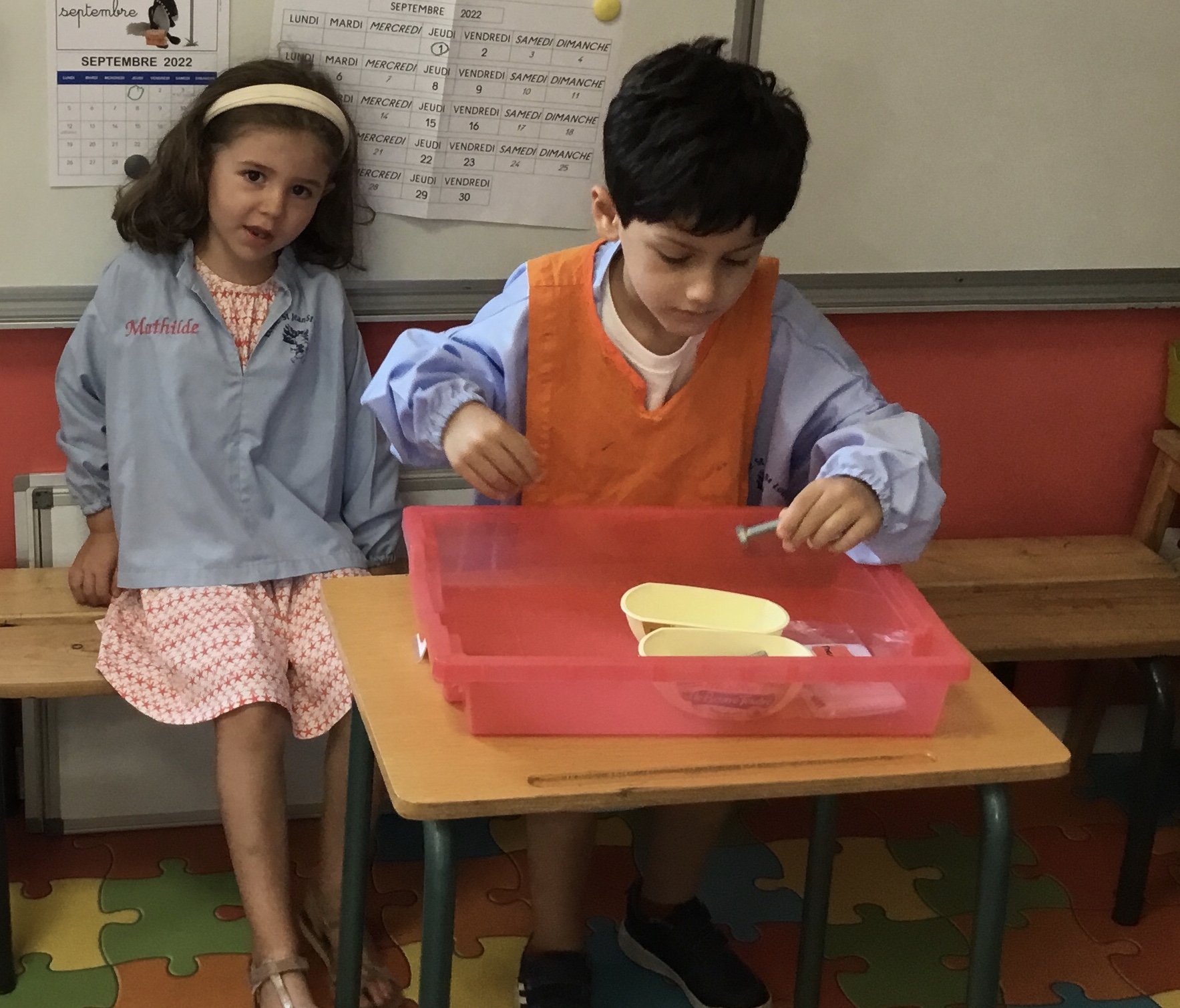 Tous les matins en grande section, nous travaillons sur différents domaines d’apprentissage, grâce aux ateliers d’inspiration Montessori.
